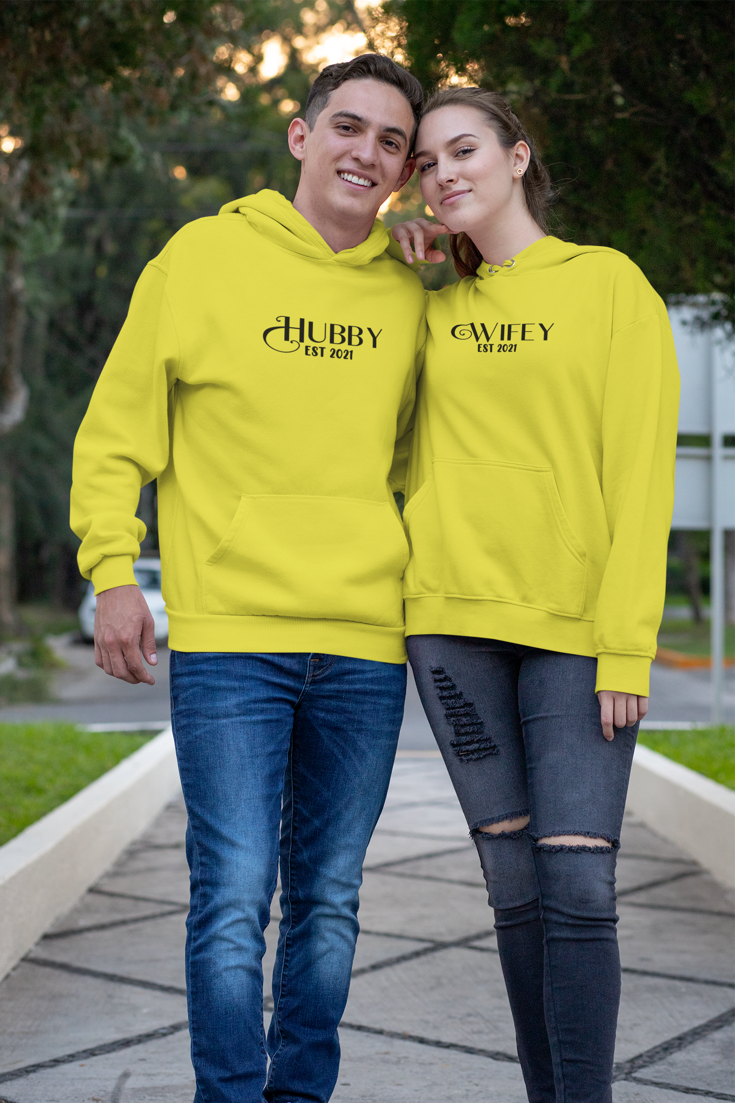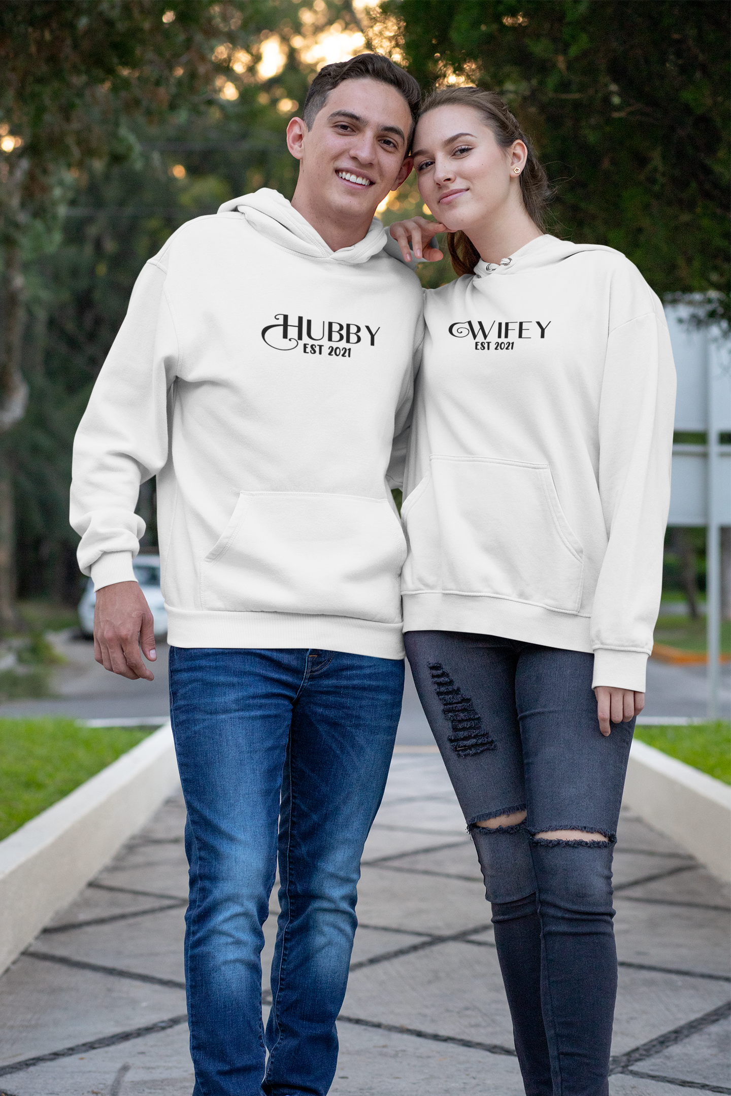 Hubby Wifey Est 2021 Couple Hoodie-FashionRazor