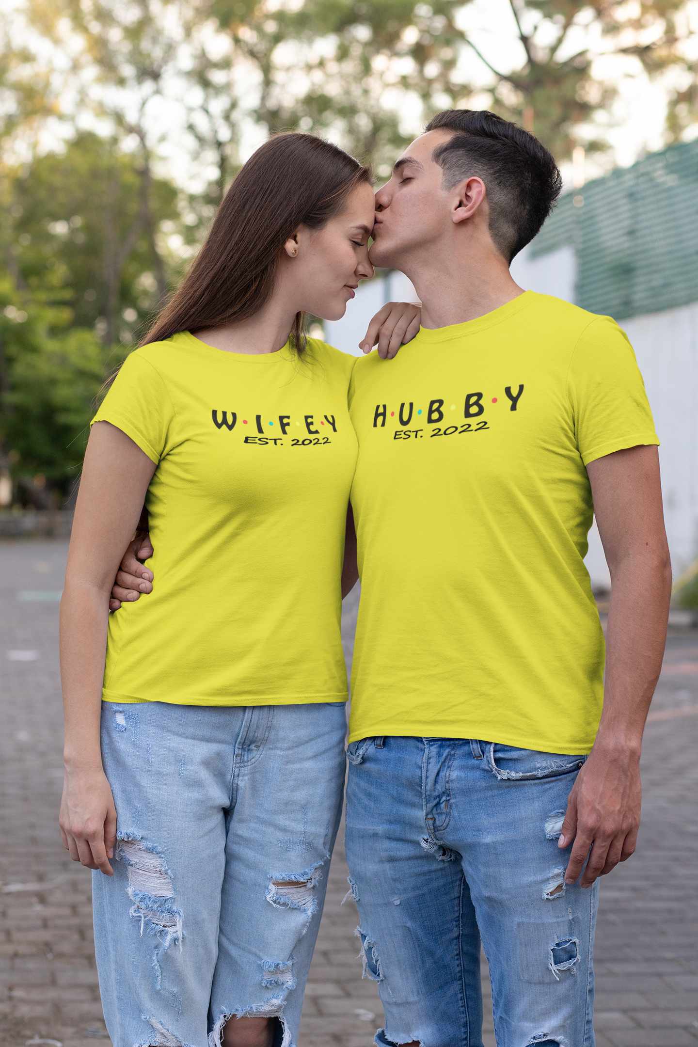 Hubby Wifey Est 2022 Couple Half Sleeves T-Shirts -FashionRazor