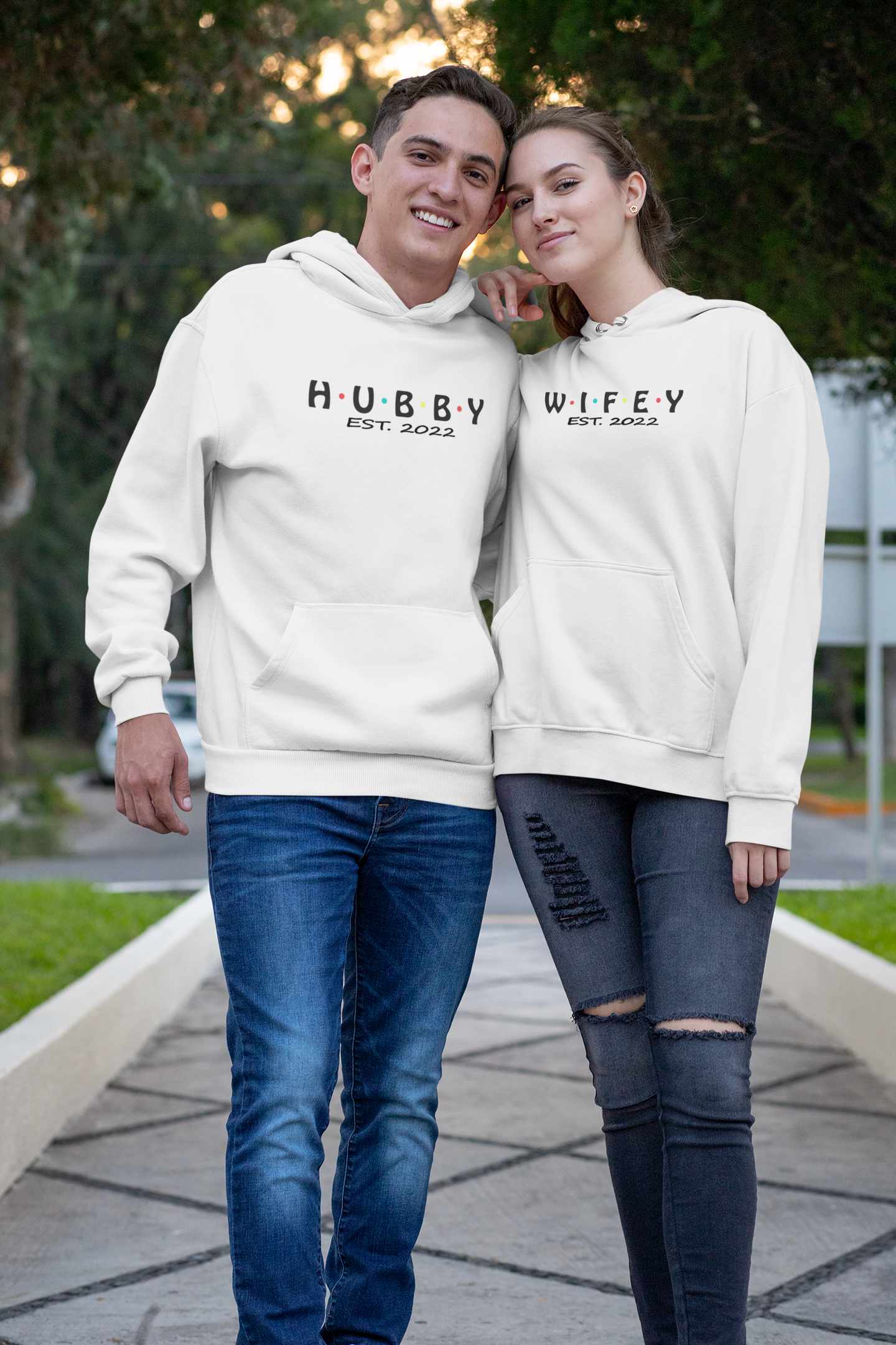 Hubby Wifey Est 2022 Couple Hoodie-FashionRazor