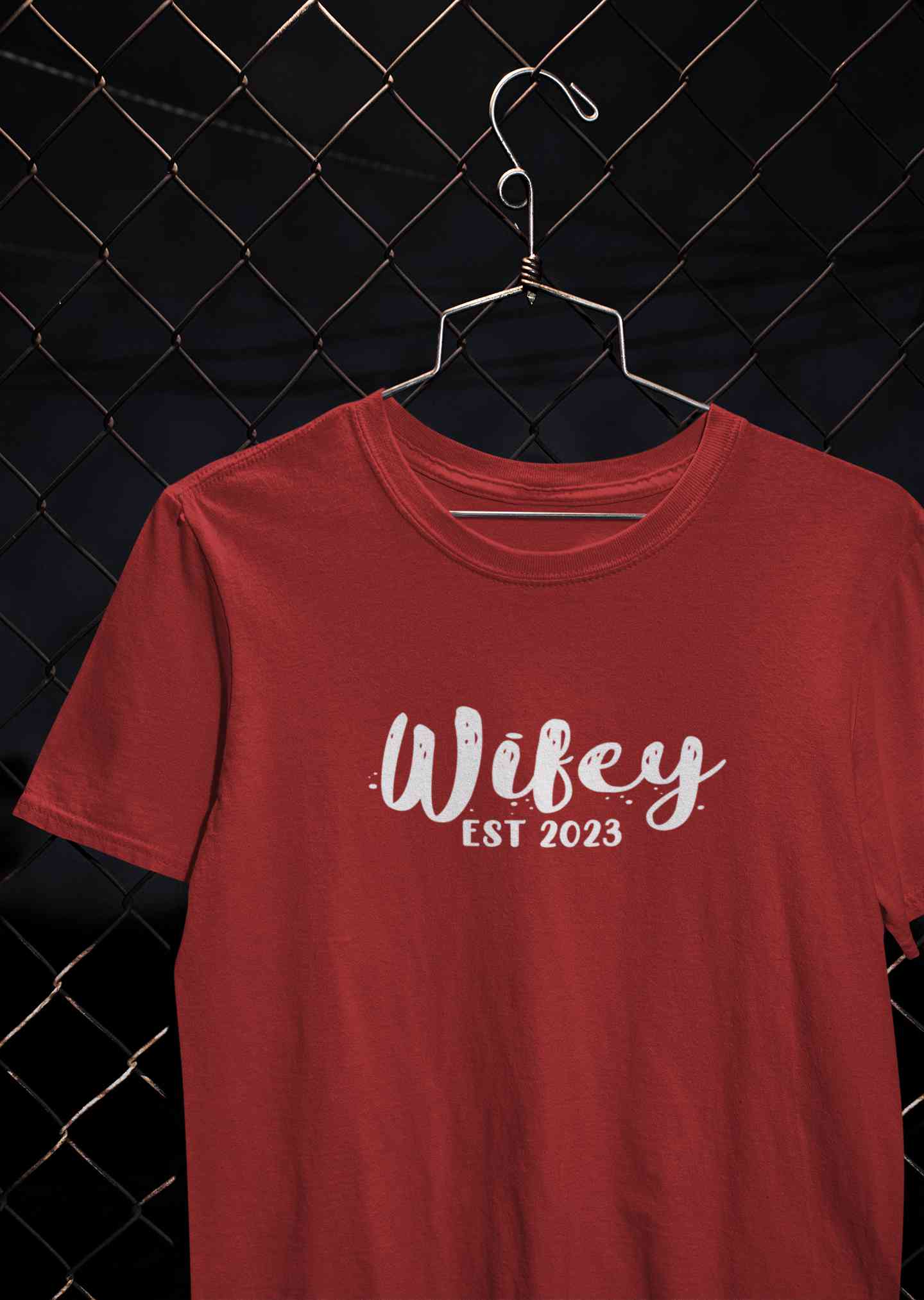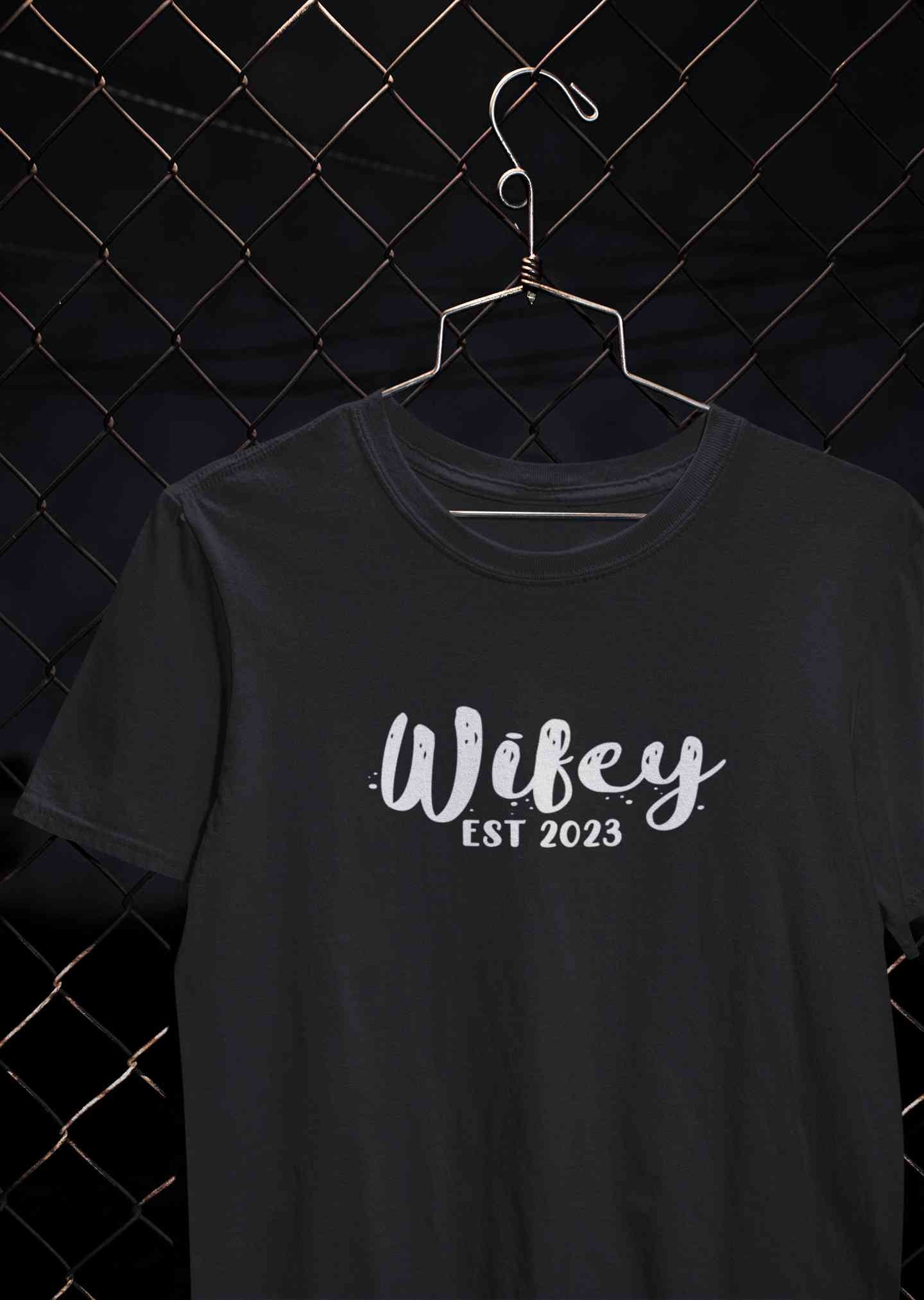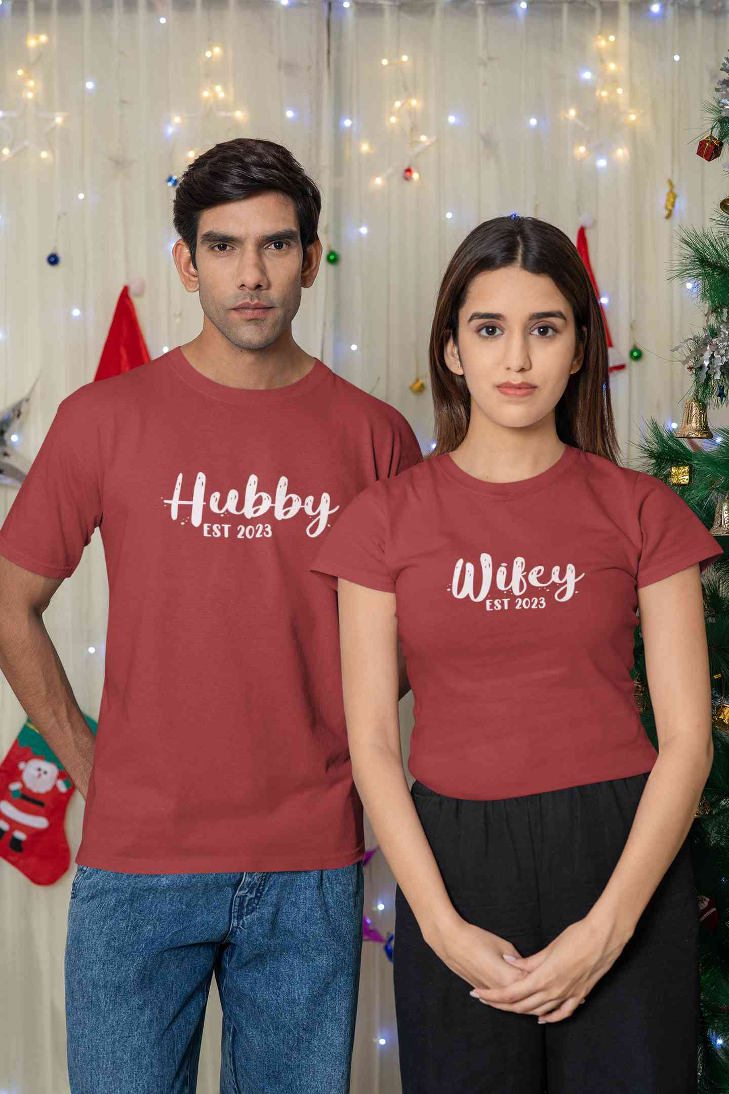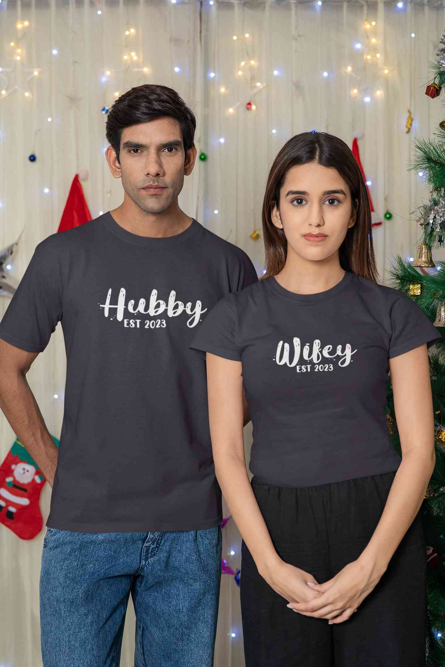 Hubby Wifey Est 2023 Couple Half Sleeves T-Shirts -FashionRazor