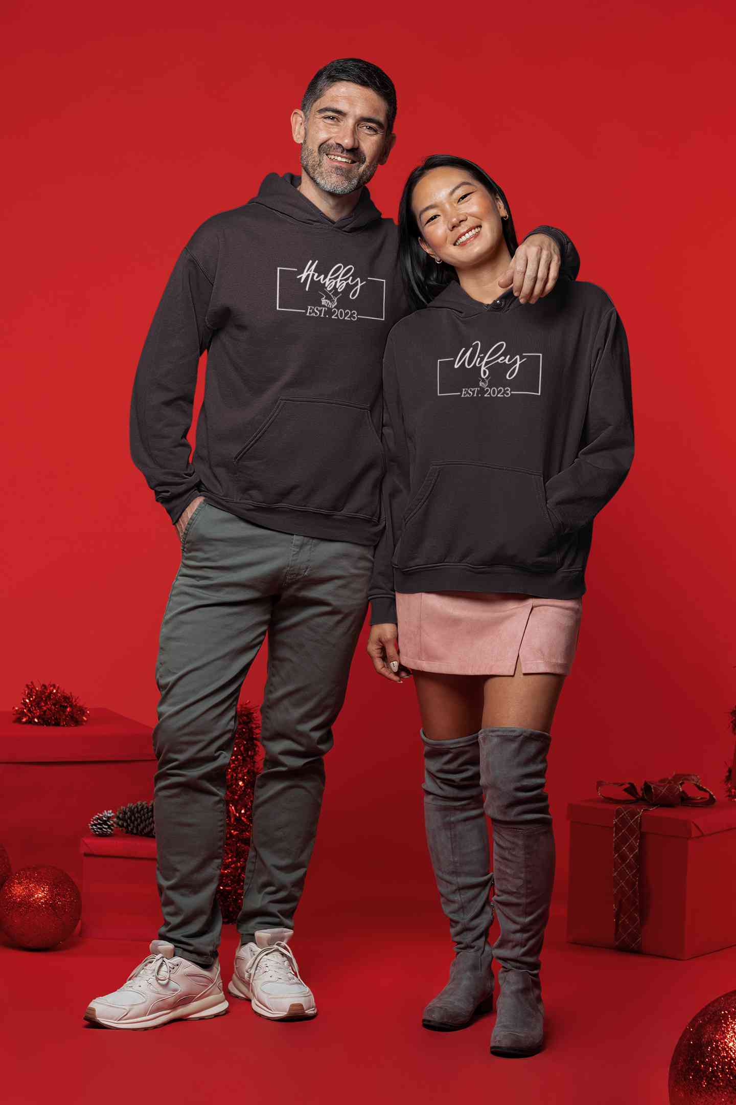 Hubby Wifey Est 2023 Couple Hoodie-FashionRazor
