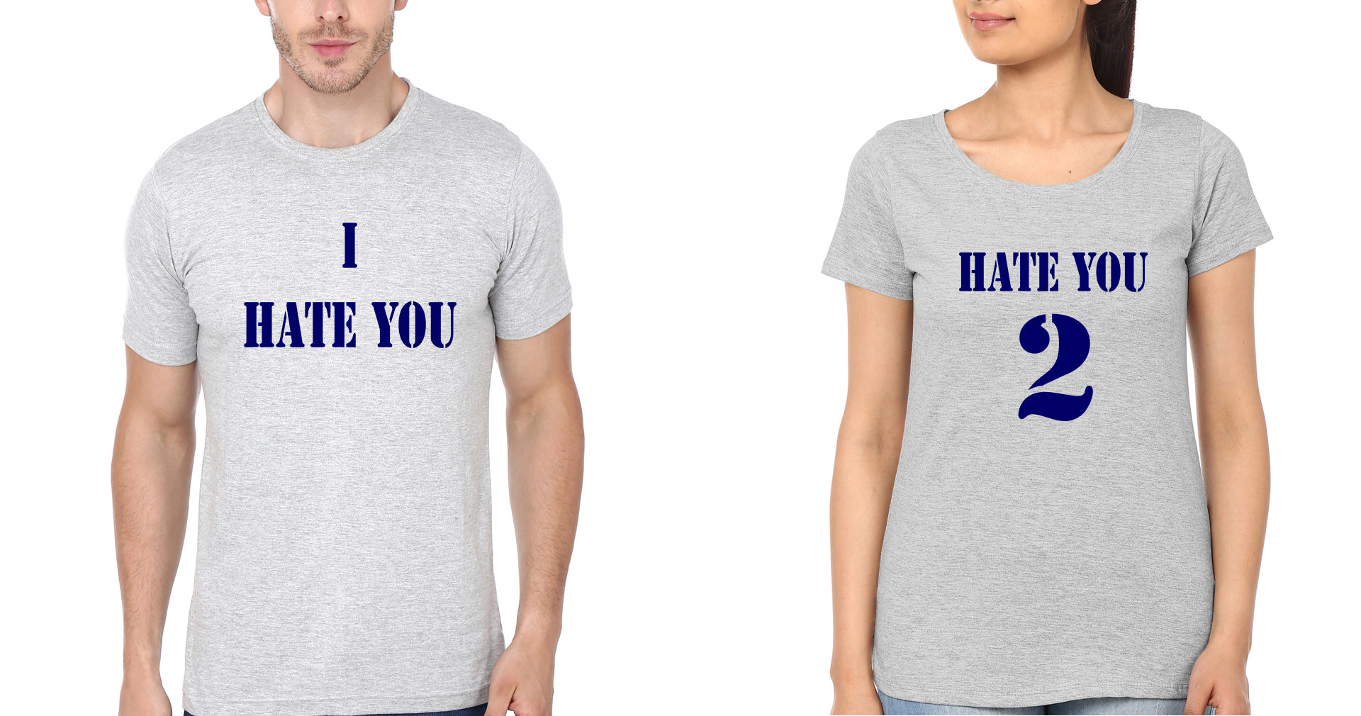 I Hate You Hate You 2 Couple Half Sleeves T-Shirts -FashionRazor