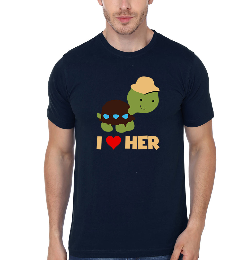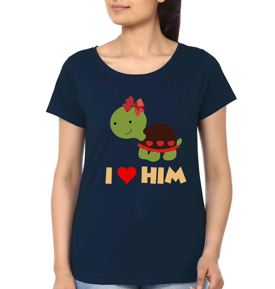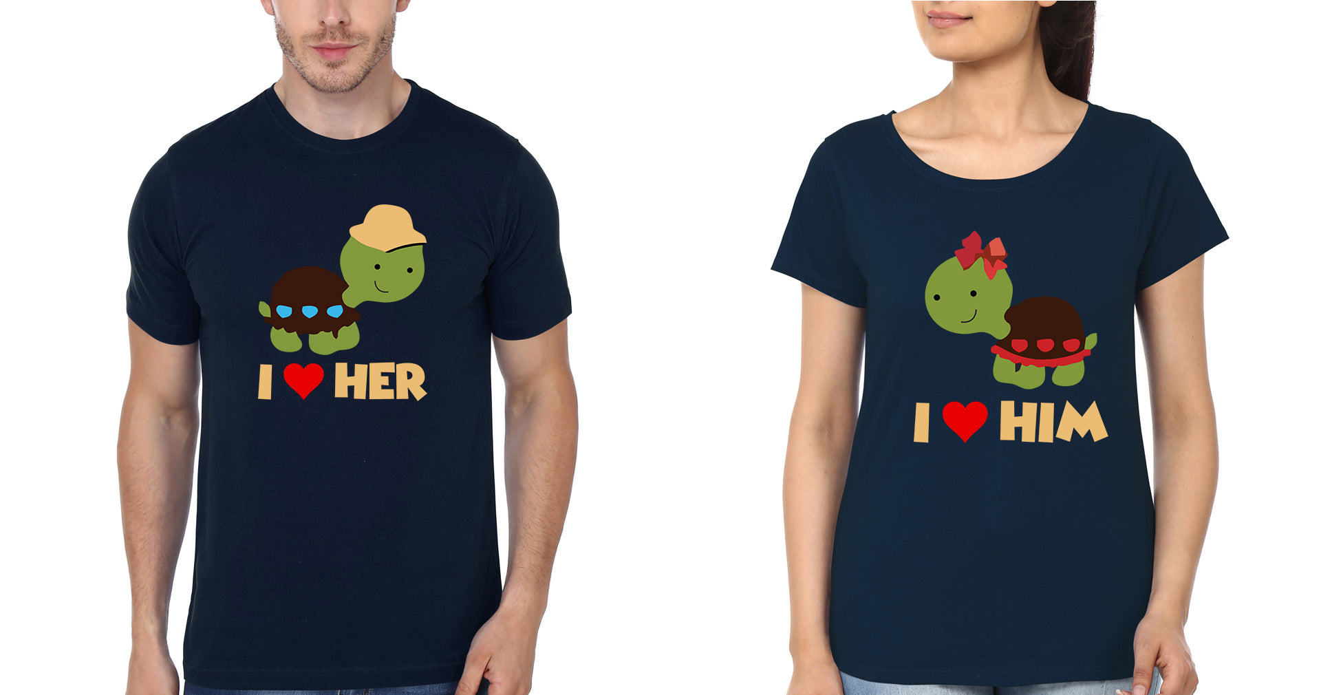 I Love Him I Love Her Couple Half Sleeves T-Shirts -FashionRazor