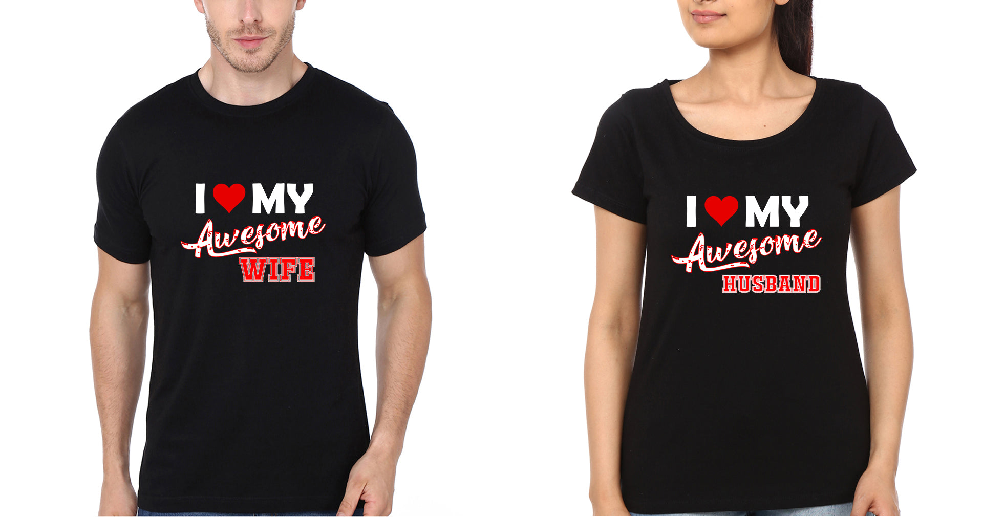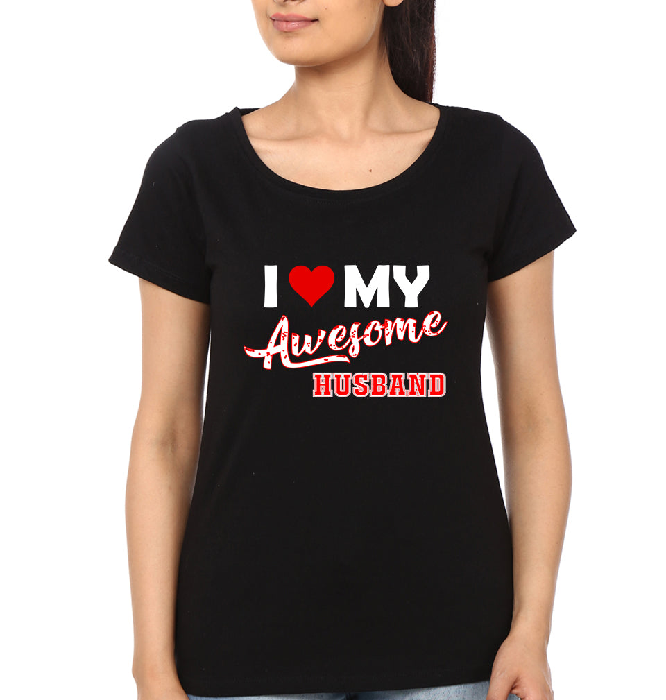 I Love My Awesome Husband Wife Couple Half Sleeves T-Shirts -FashionRazor