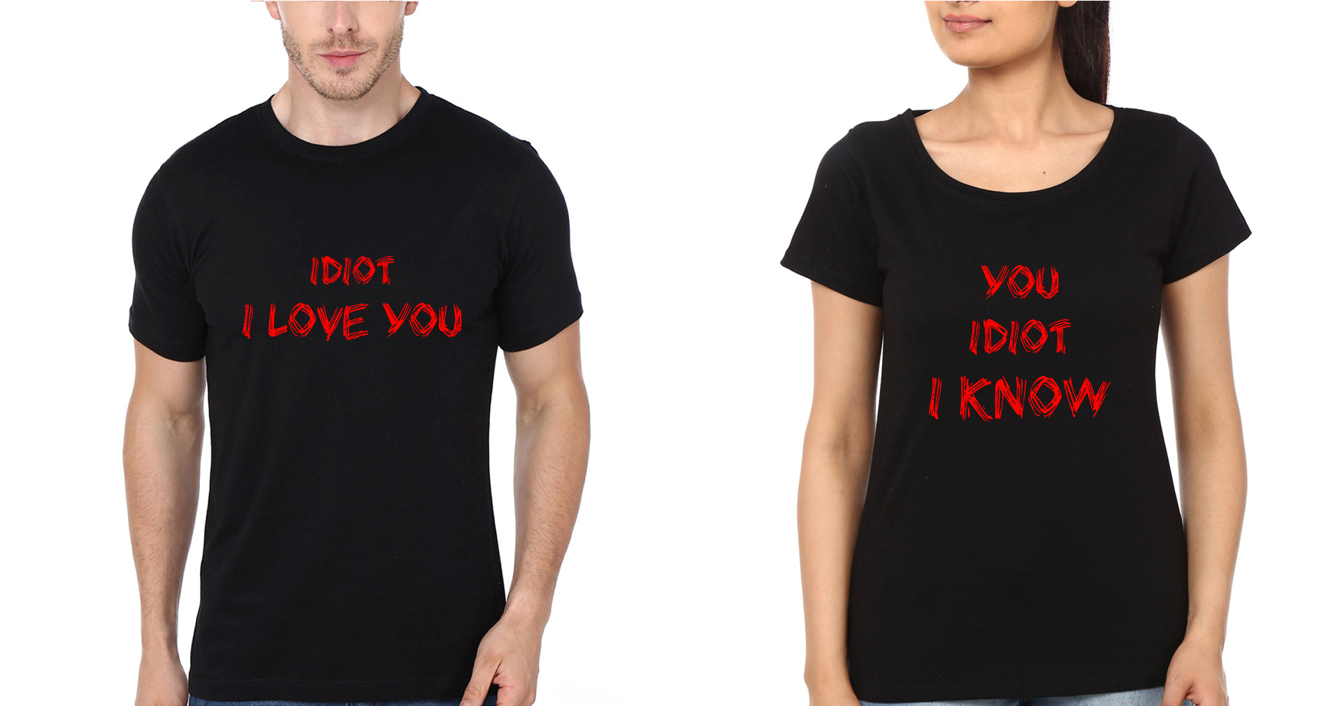Idiot I Love You Couple Half Sleeves T-Shirts -FashionRazor