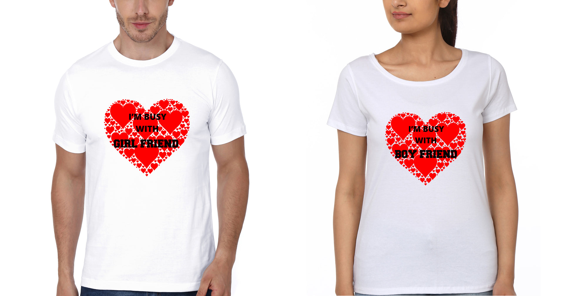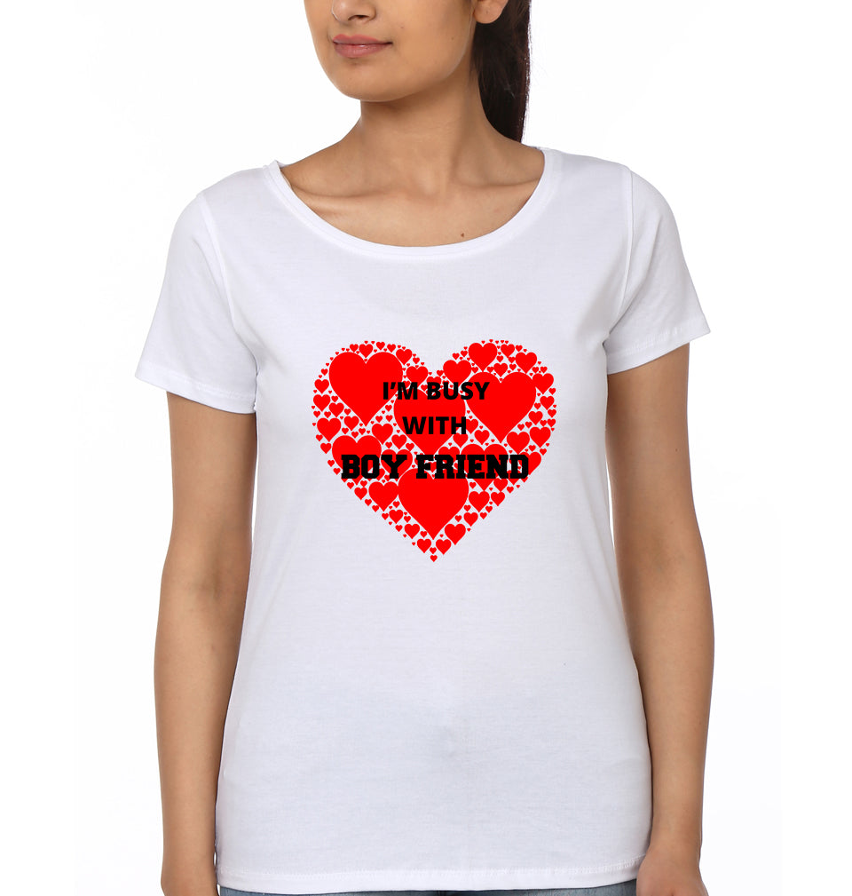 I'M Busy With BF I'M Bust with GF Couple Half Sleeves T-Shirts -FashionRazor