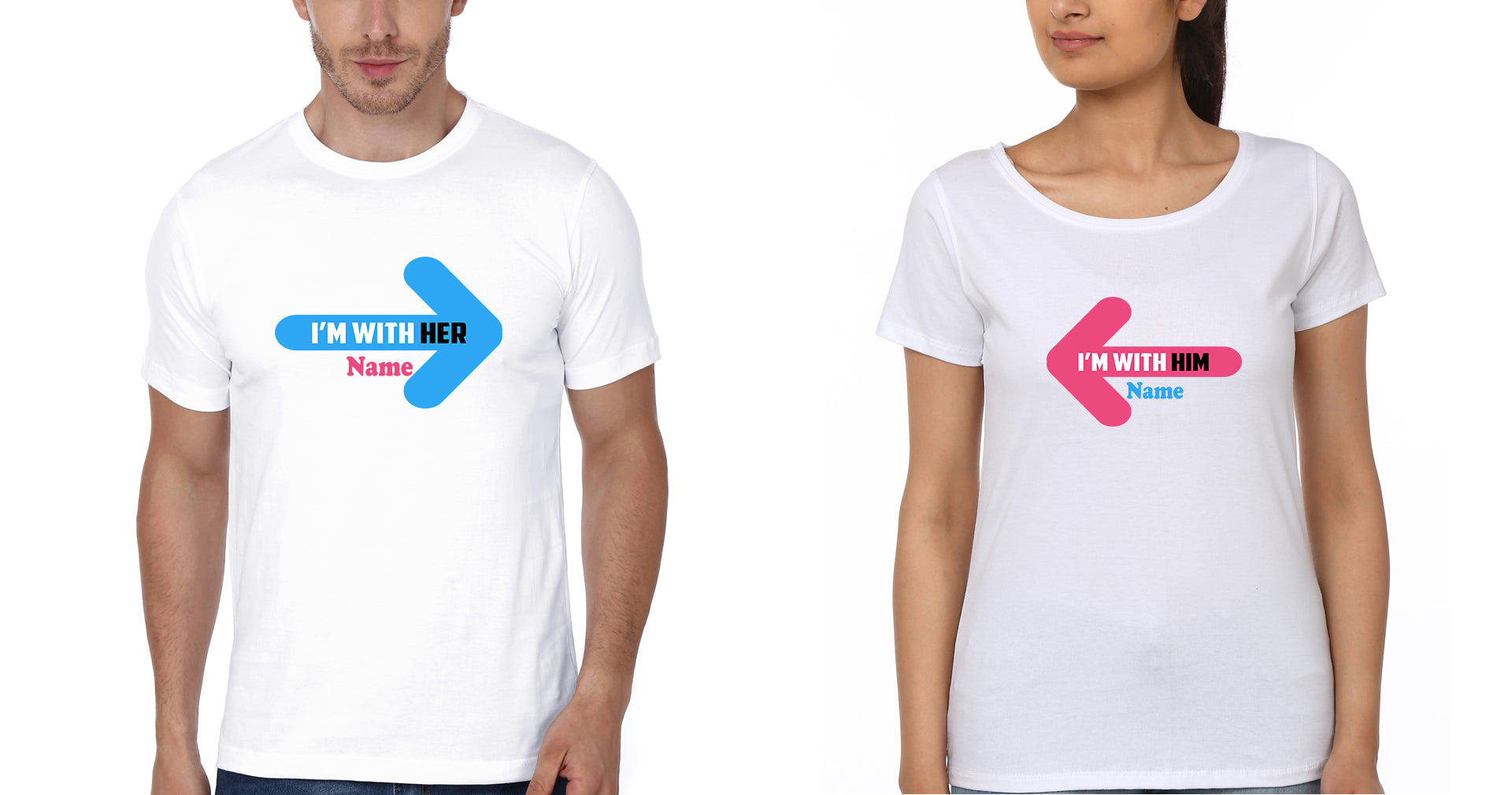 I'M With Her Him Couple Half Sleeves T-Shirts -FashionRazor