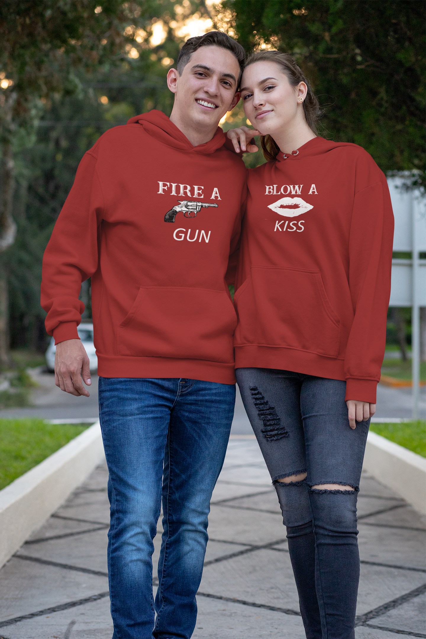Kiss And Gun Couple Hoodie-FashionRazor