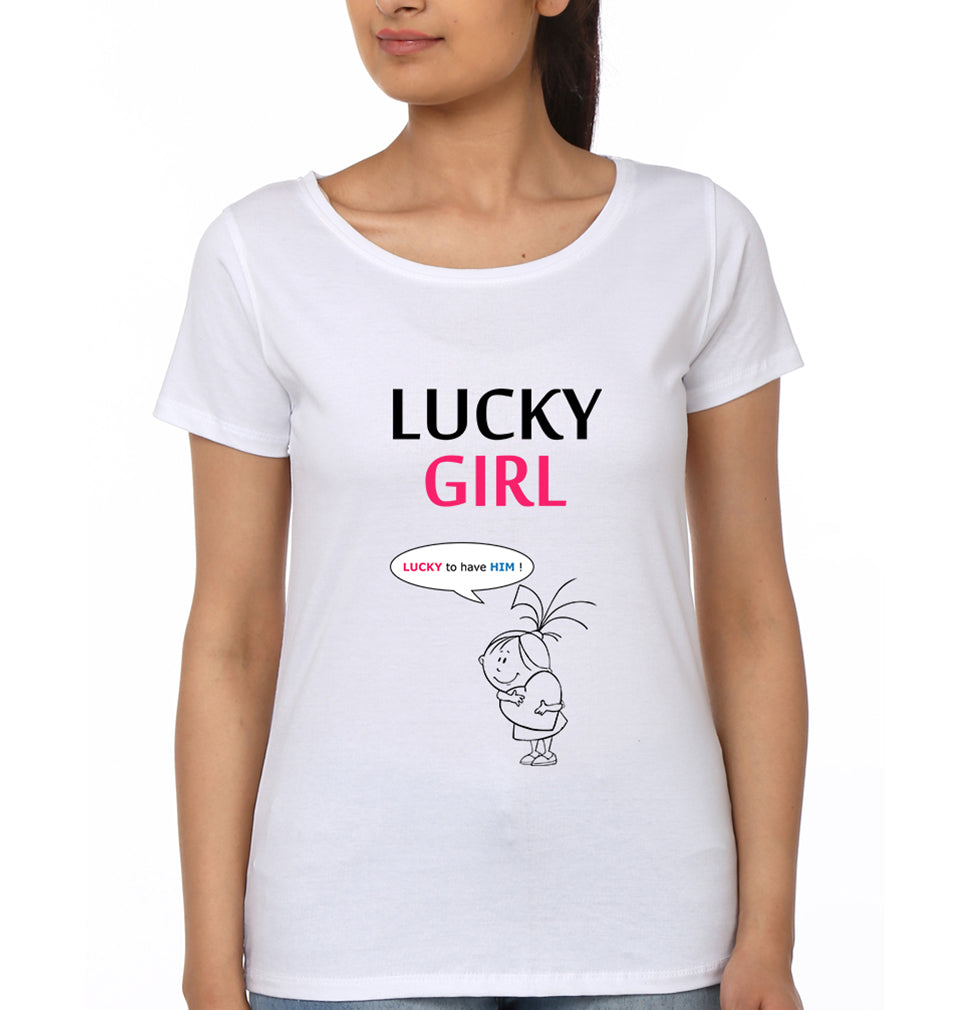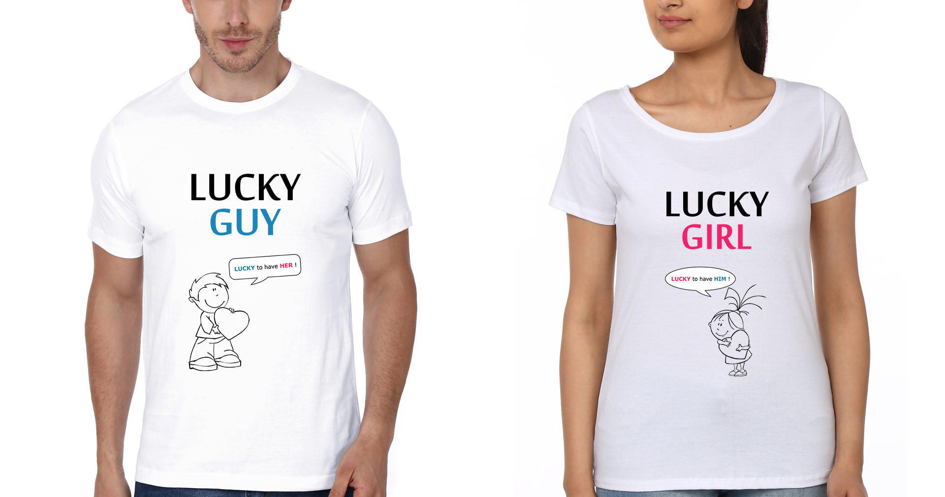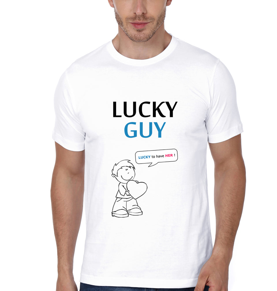 Lucky Guy Couple Half Sleeves T-Shirts -FashionRazor