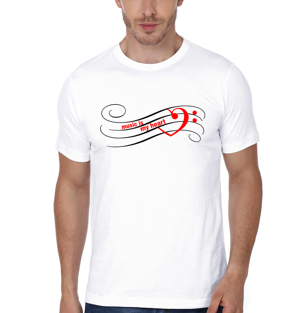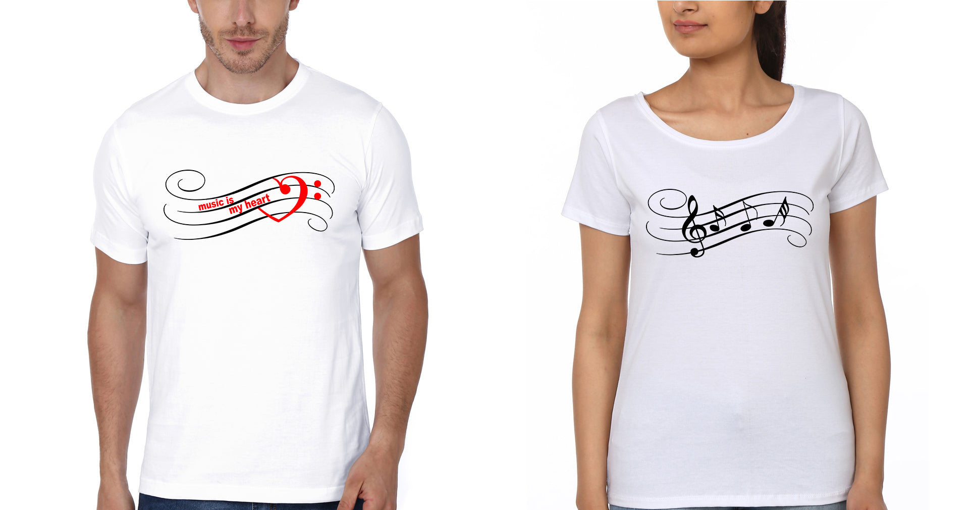 Misic Is My Heart Couple Half Sleeves T-Shirts -FashionRazor