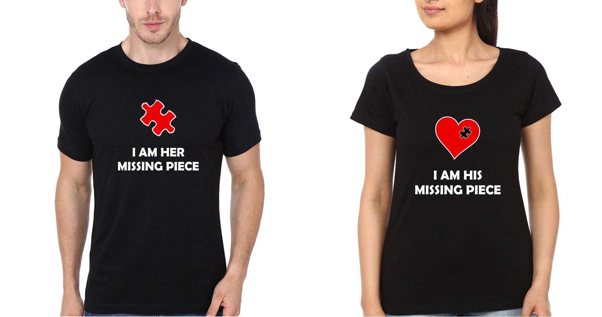 Missing Piece Couple Half Sleeves T-Shirts -FashionRazor