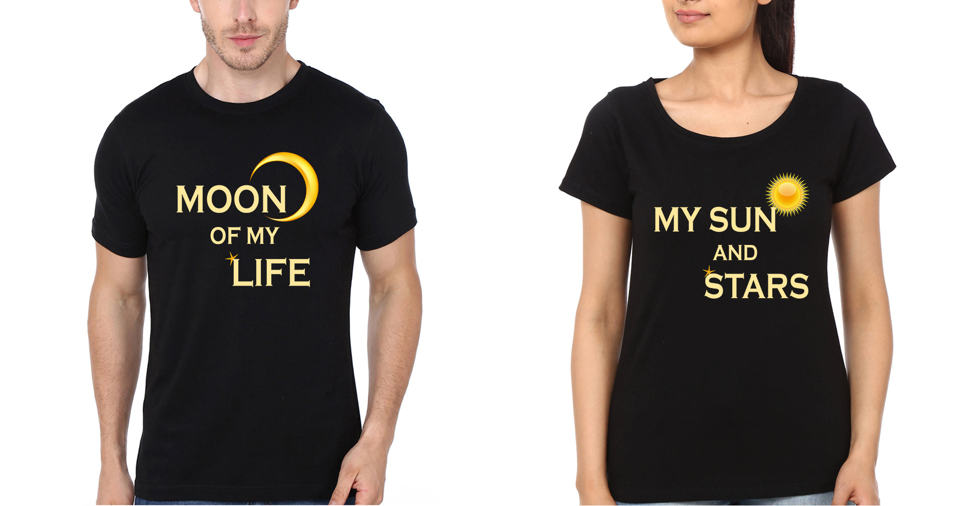 Moon Of My Life My Sun And stars Couple Half Sleeves T-Shirts -FashionRazor
