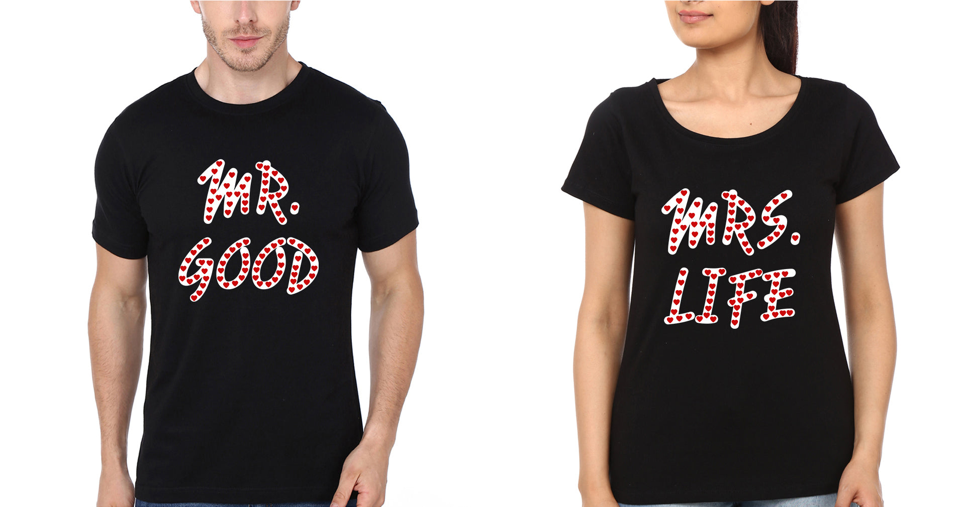 Mr. Good Mrs. Life Couple Half Sleeves T-Shirts -FashionRazor