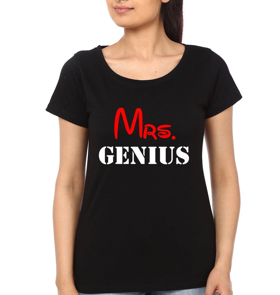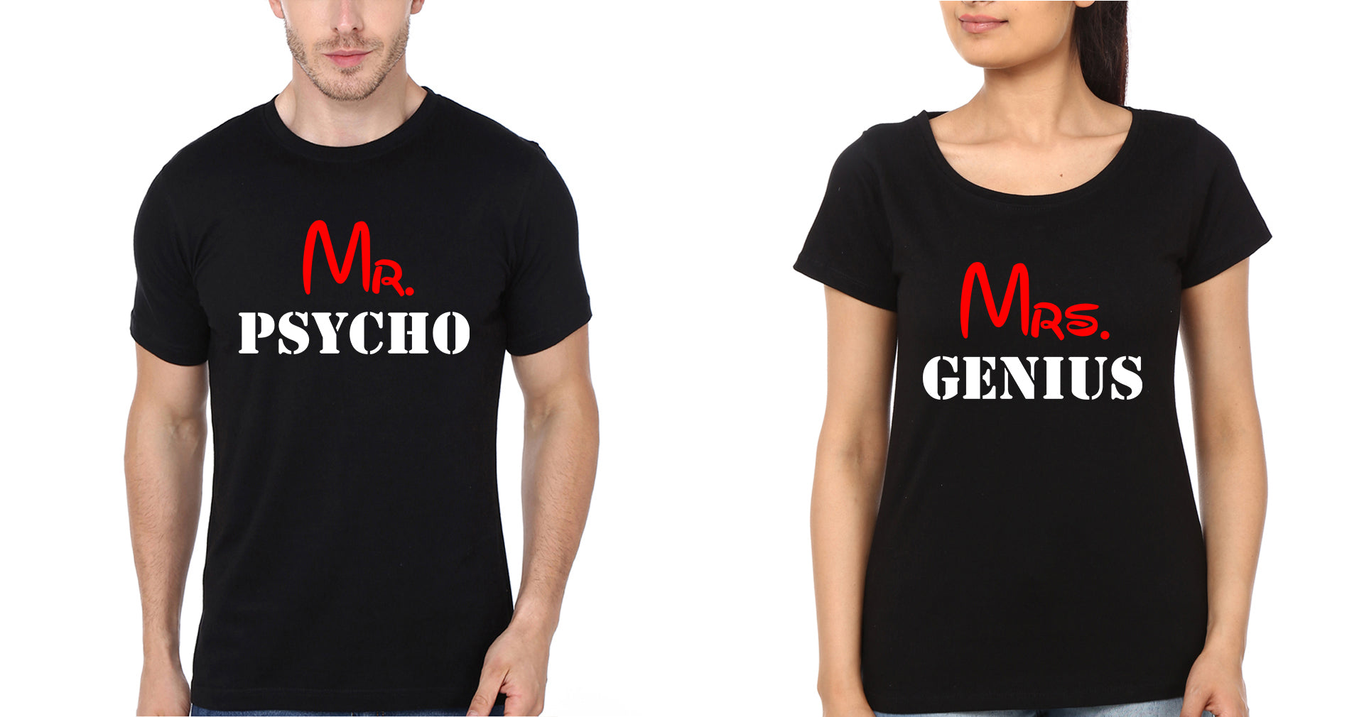 Mr. Psycho And Mrs. Genius Couple Half Sleeves T-Shirts -FashionRazor