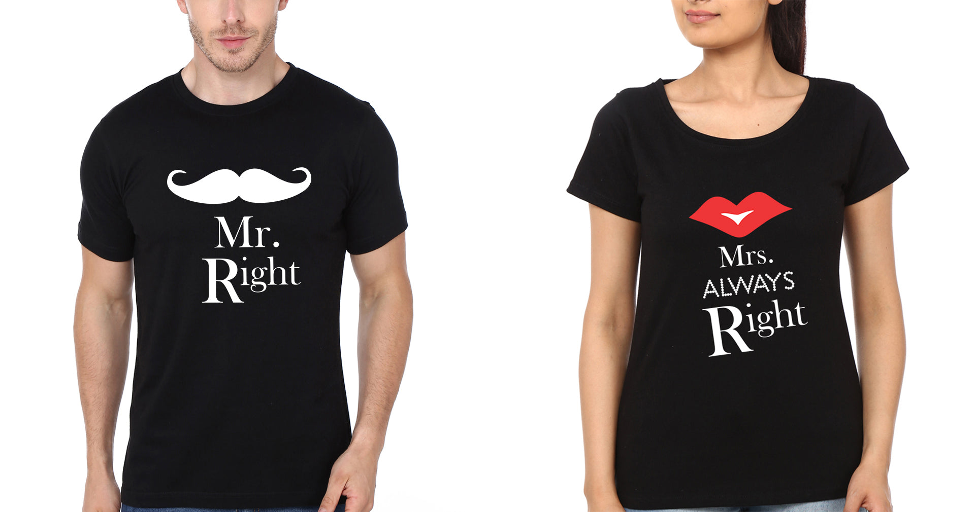 Mr.Right & Mrs. Always Right Couple Half Sleeves T-Shirts -FashionRazor