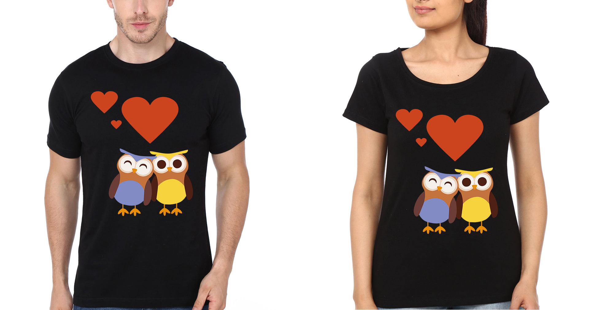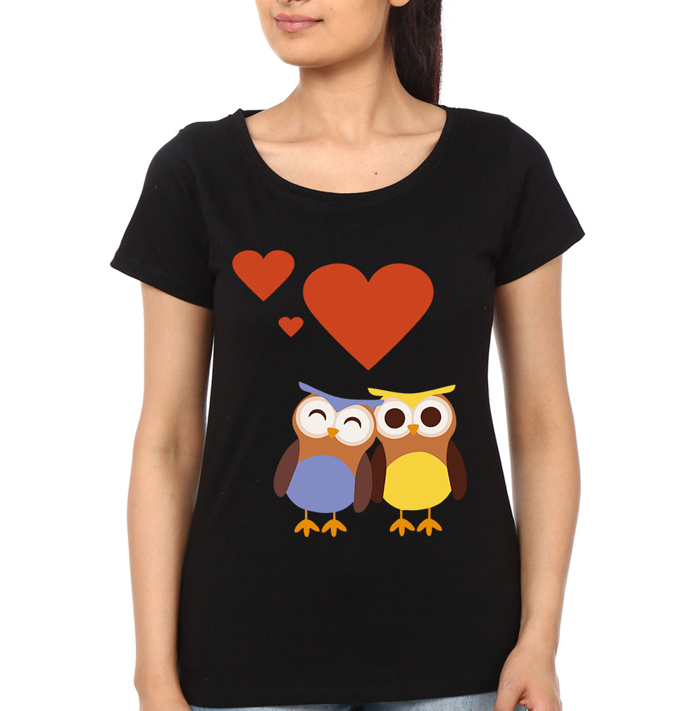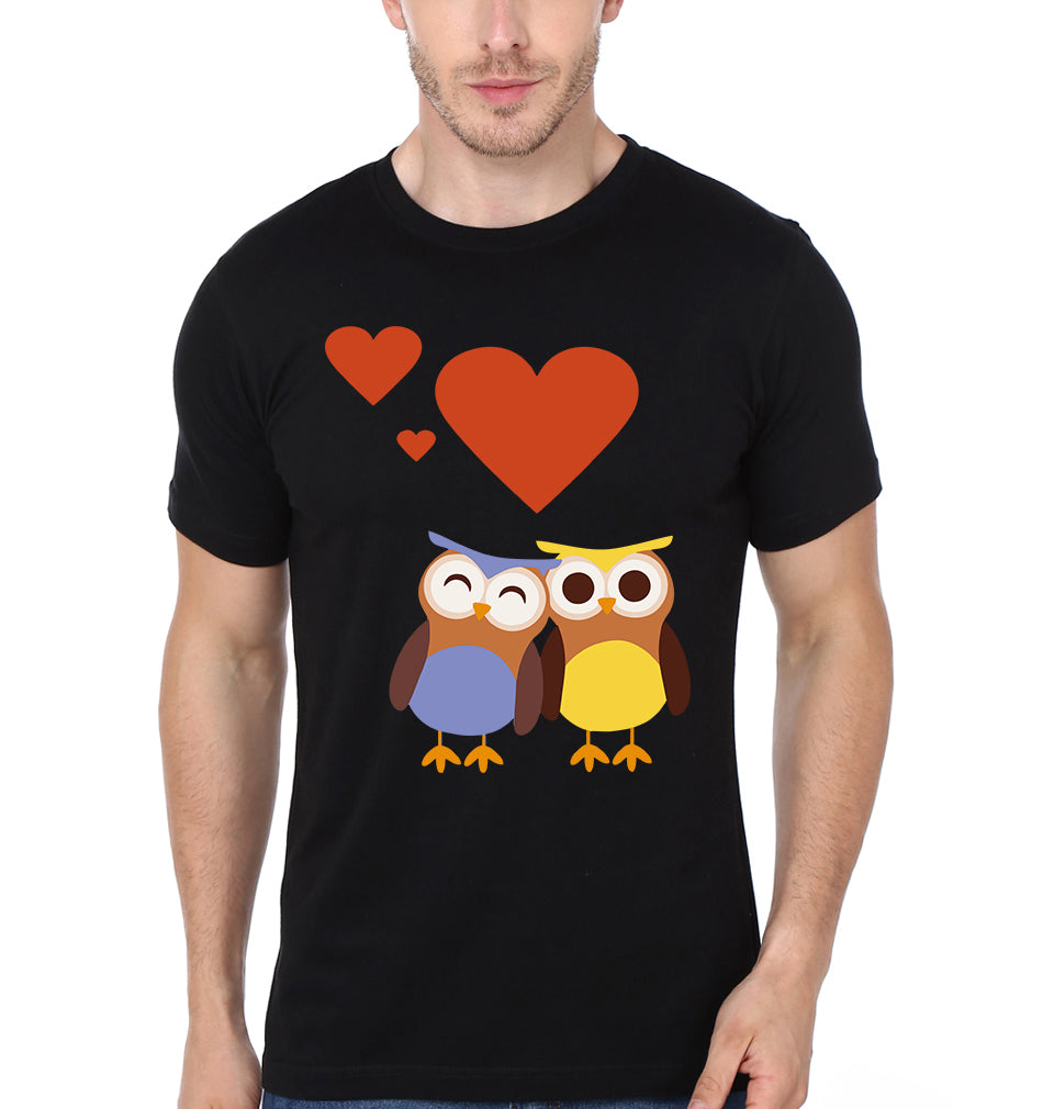 Owl Couple Half Sleeves T-Shirts -FashionRazor