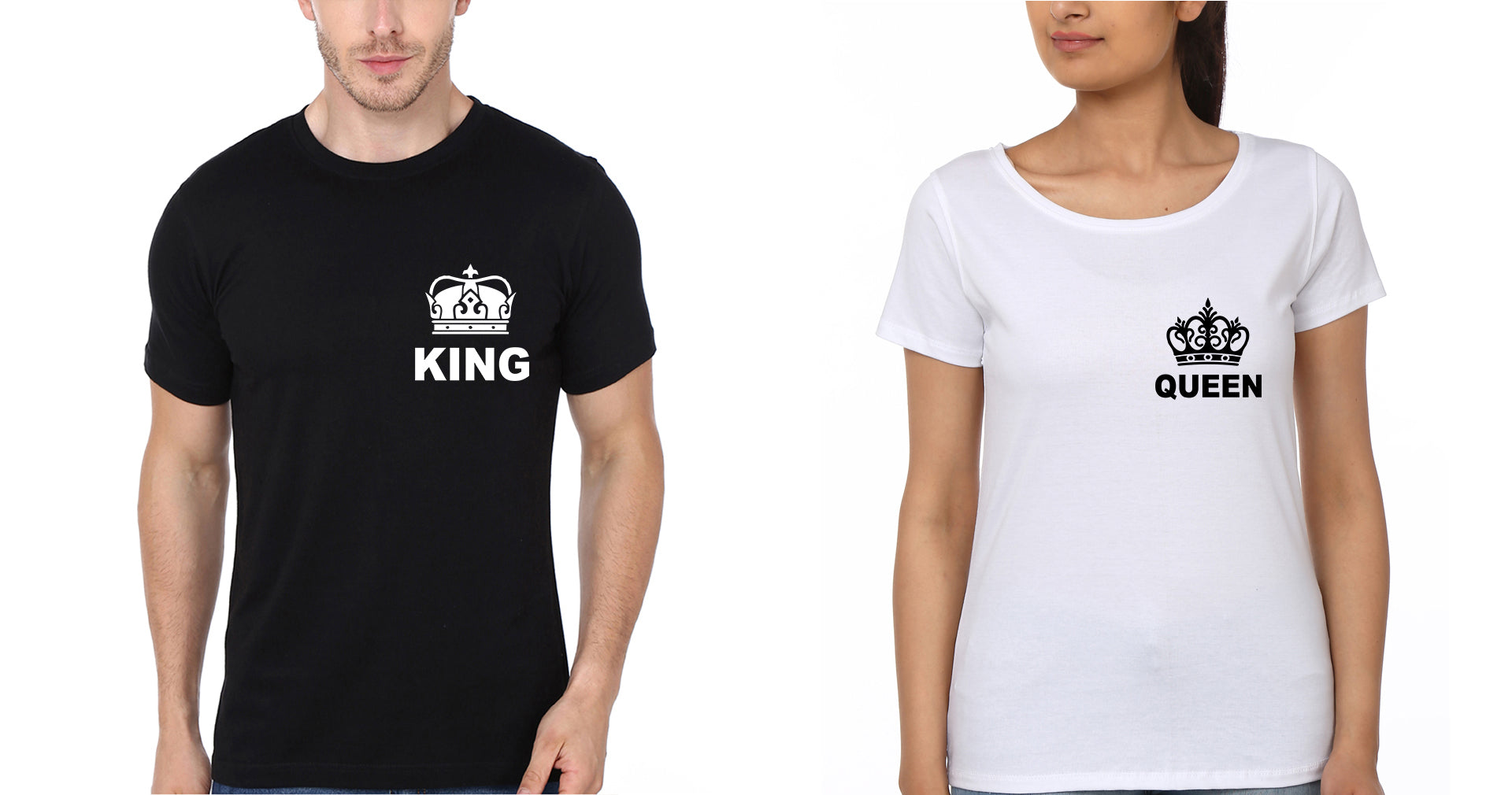 Pocket King Queen Couple Half Sleeves T-Shirts -FashionRazor