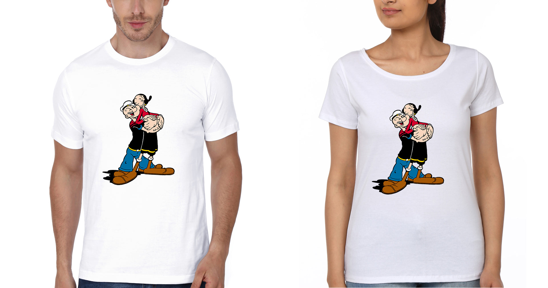 Popeye And Olive Couple Half Sleeves T-Shirts -FashionRazor