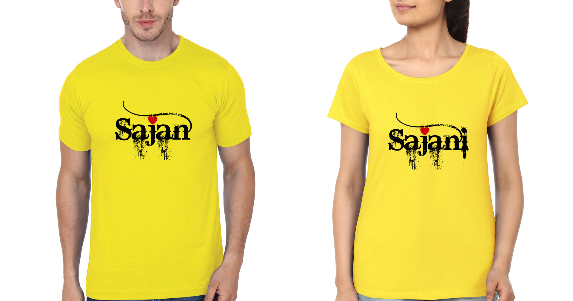 Sajan Aur Sajni Couple Half Sleeves T-Shirts -FashionRazor