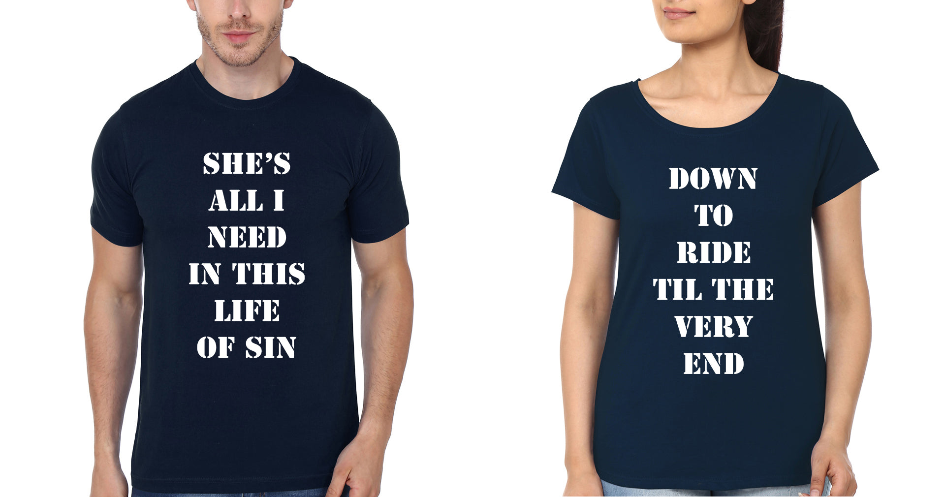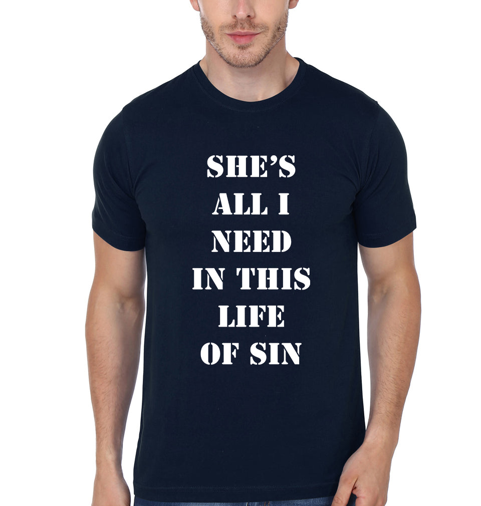 She All I Need In This Life Of Sin Couple Half Sleeves T-Shirts -FashionRazor