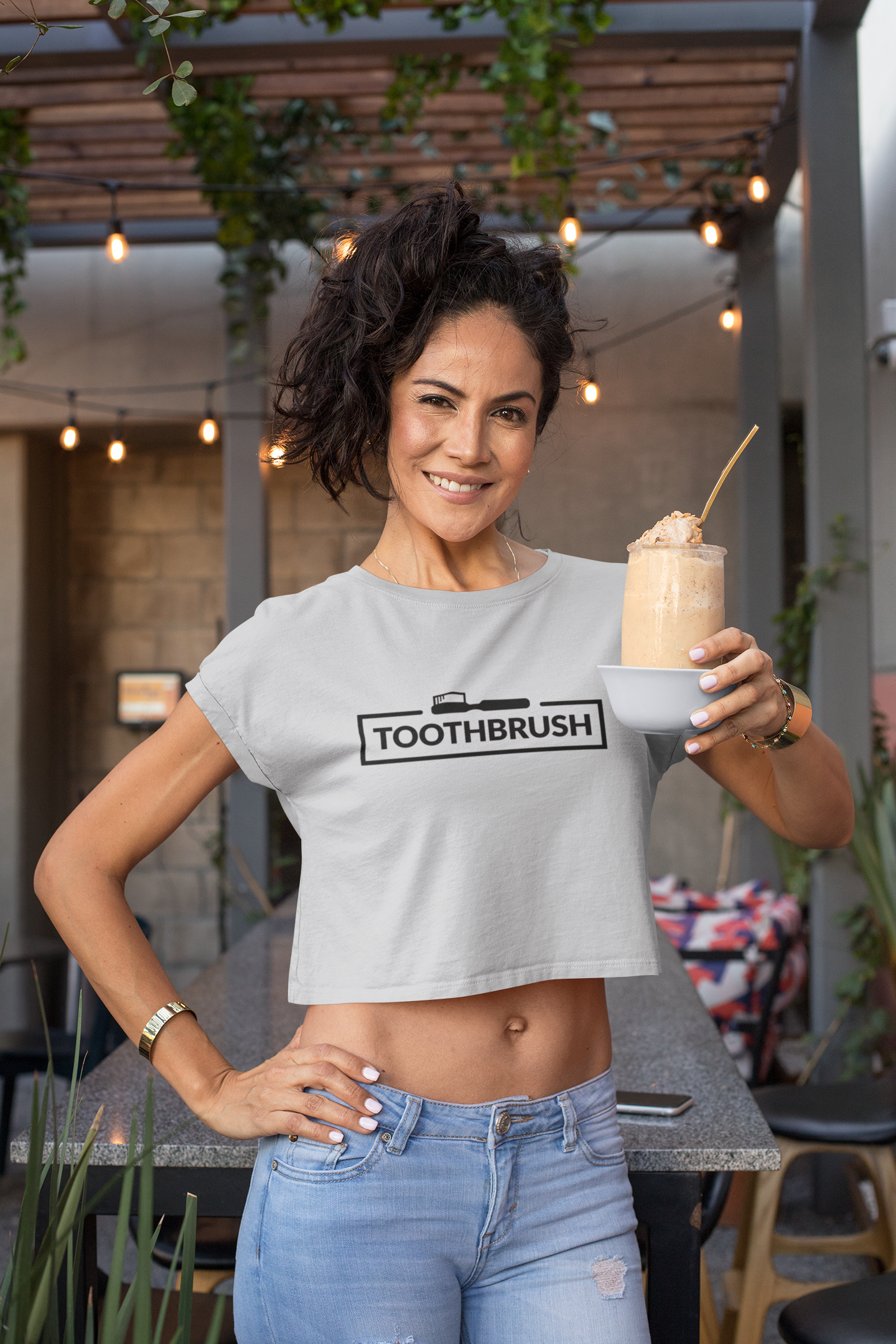 Bathroom label toothbrush icon Women Crop Top- FashionRazor