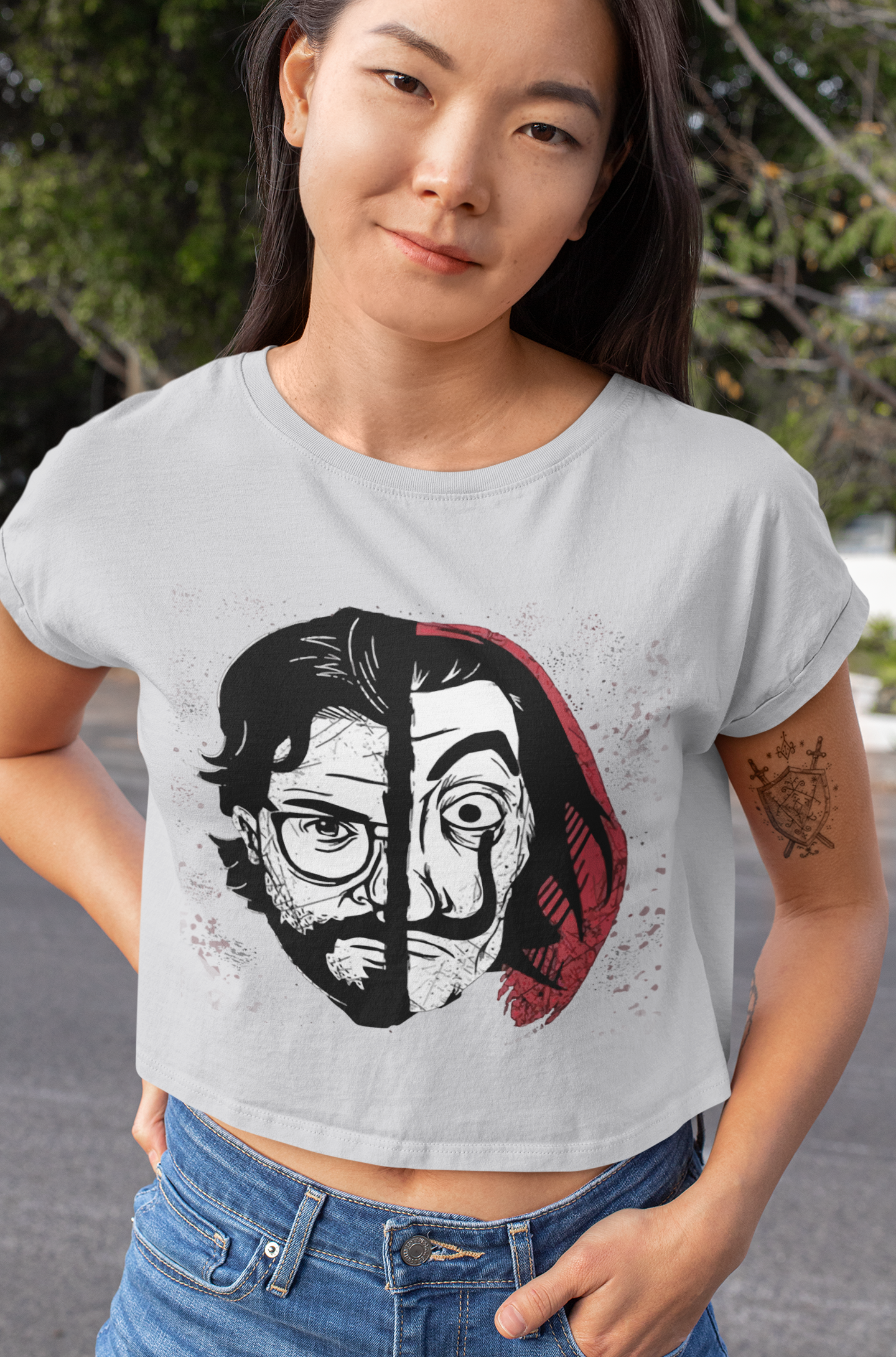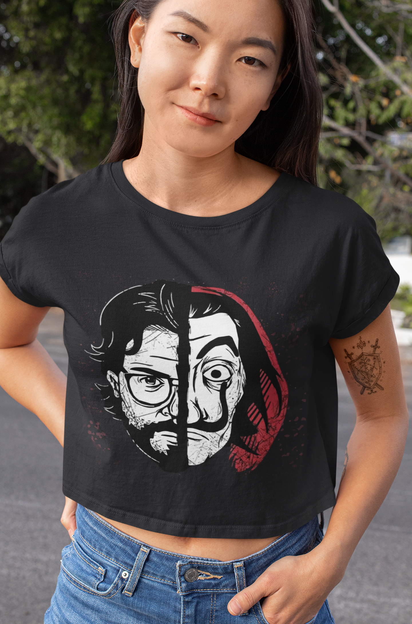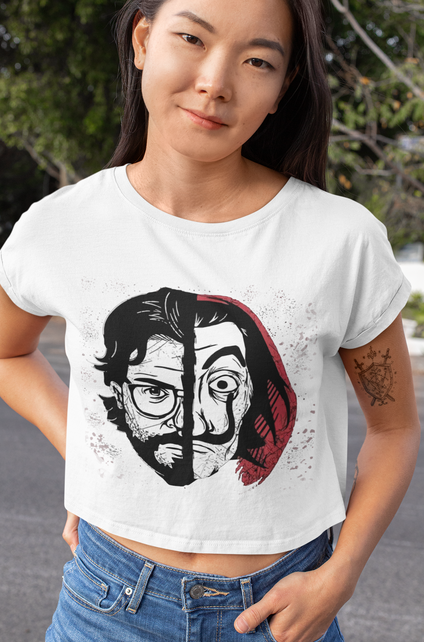 Tags- Money Heist  t-shirt online, Money Heist printed tee, Money Heist  tees, Money Heist Crop Top, printed half sleeves Crop Top online, Money Heist printed Crop Top, attractive Crop Top, buy a Crop Top online, buy half sleeves Crop Top online