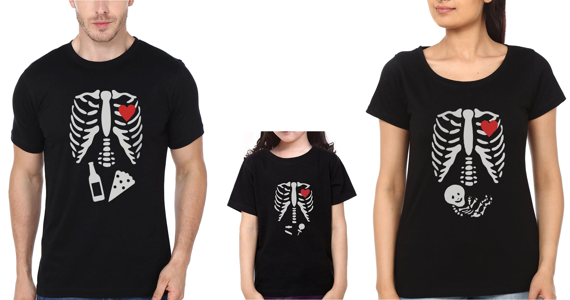 skeleton Family Half Sleeves T-Shirts-FashionRazor