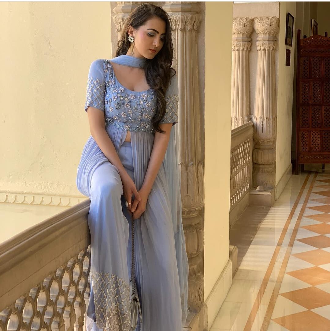Impressive Designer Embroidered And Handwork Front Cut Designer Wear Outfit Along With Plazzo And Dupatta-FashionRazor