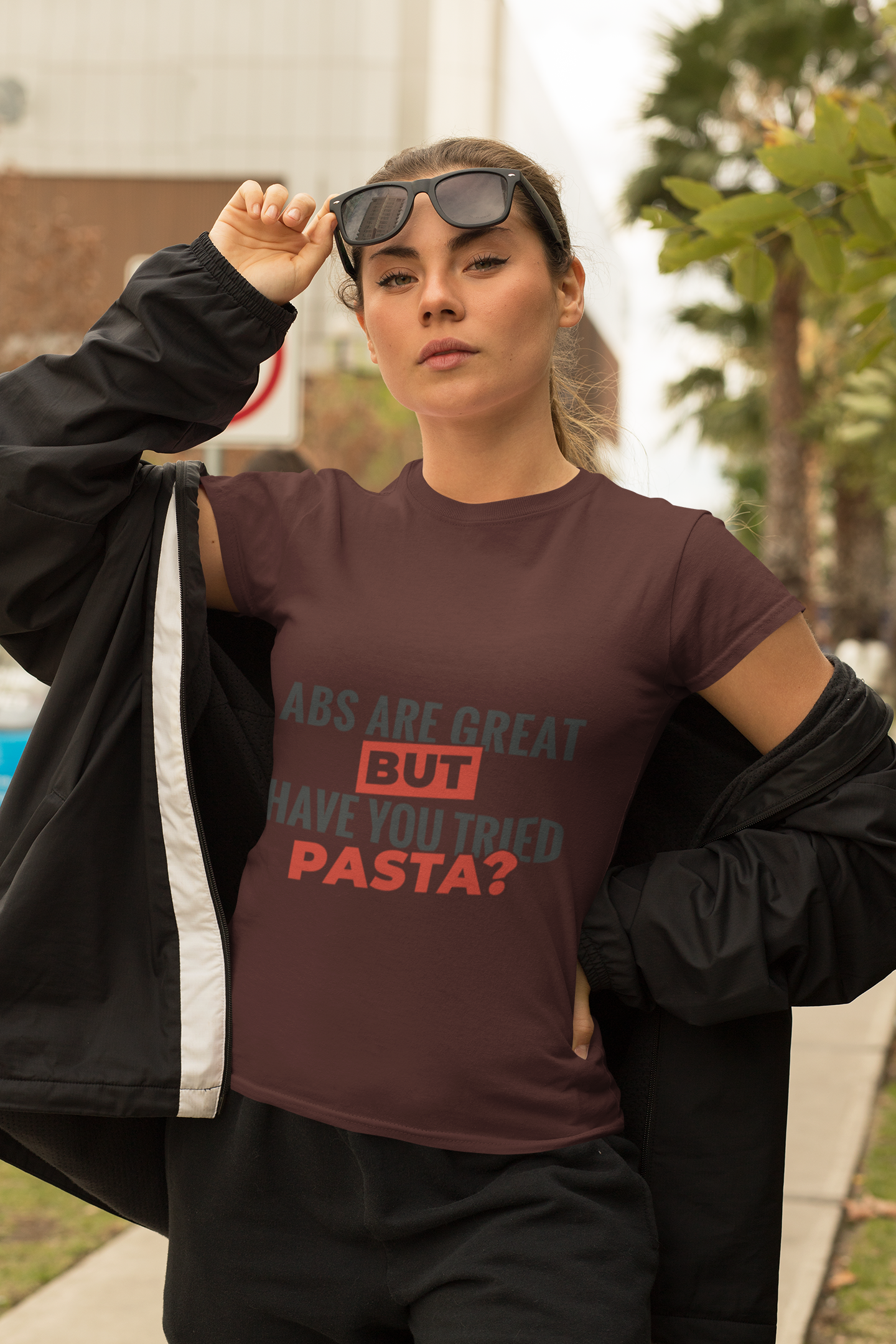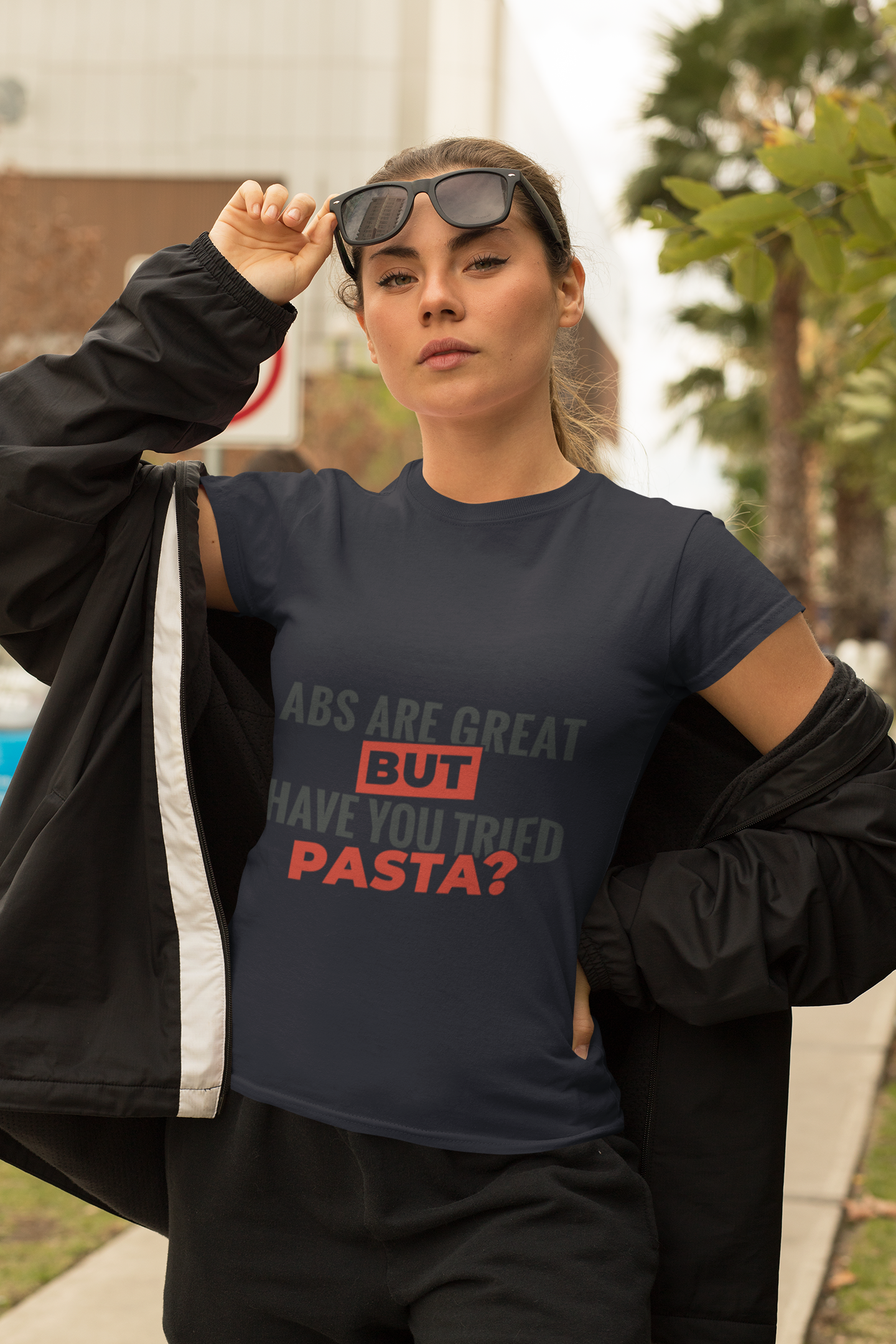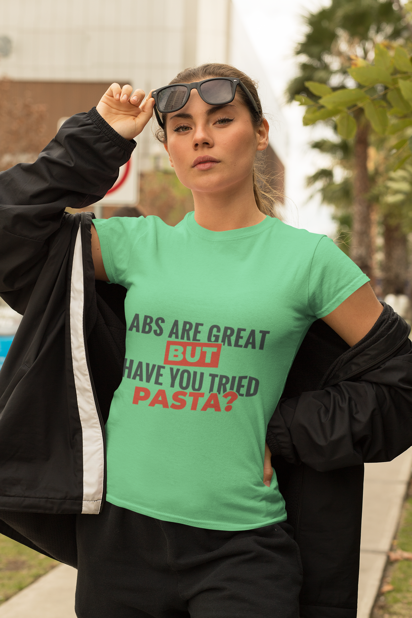 Buy Now Abs are great but pasta Women Half Sleeves T-Shirt- FashionRazor