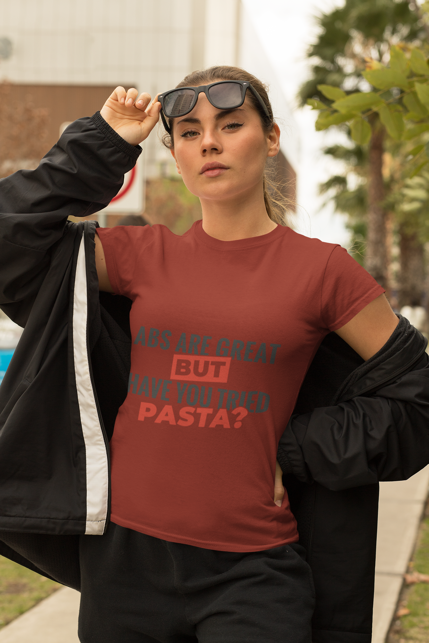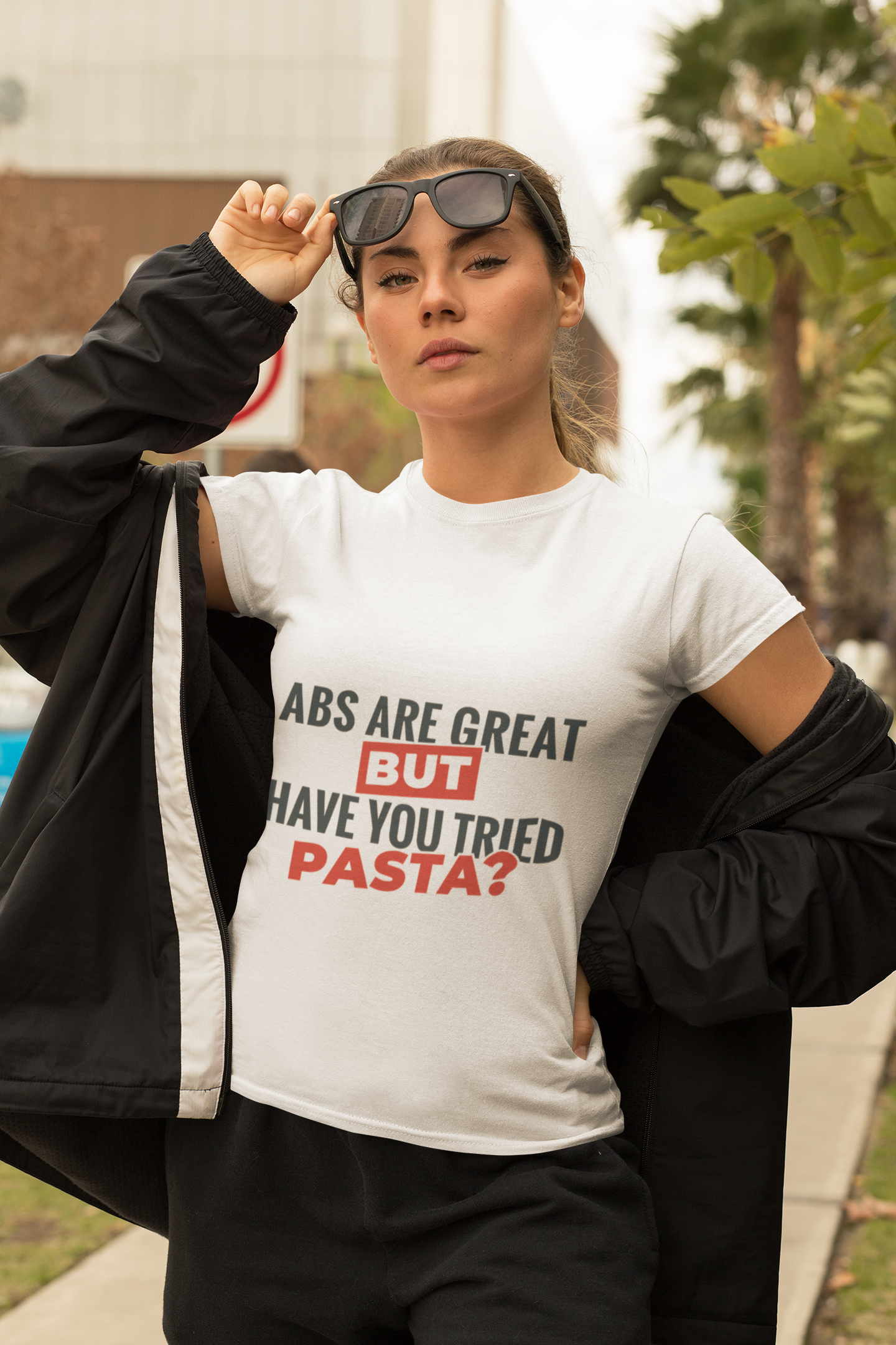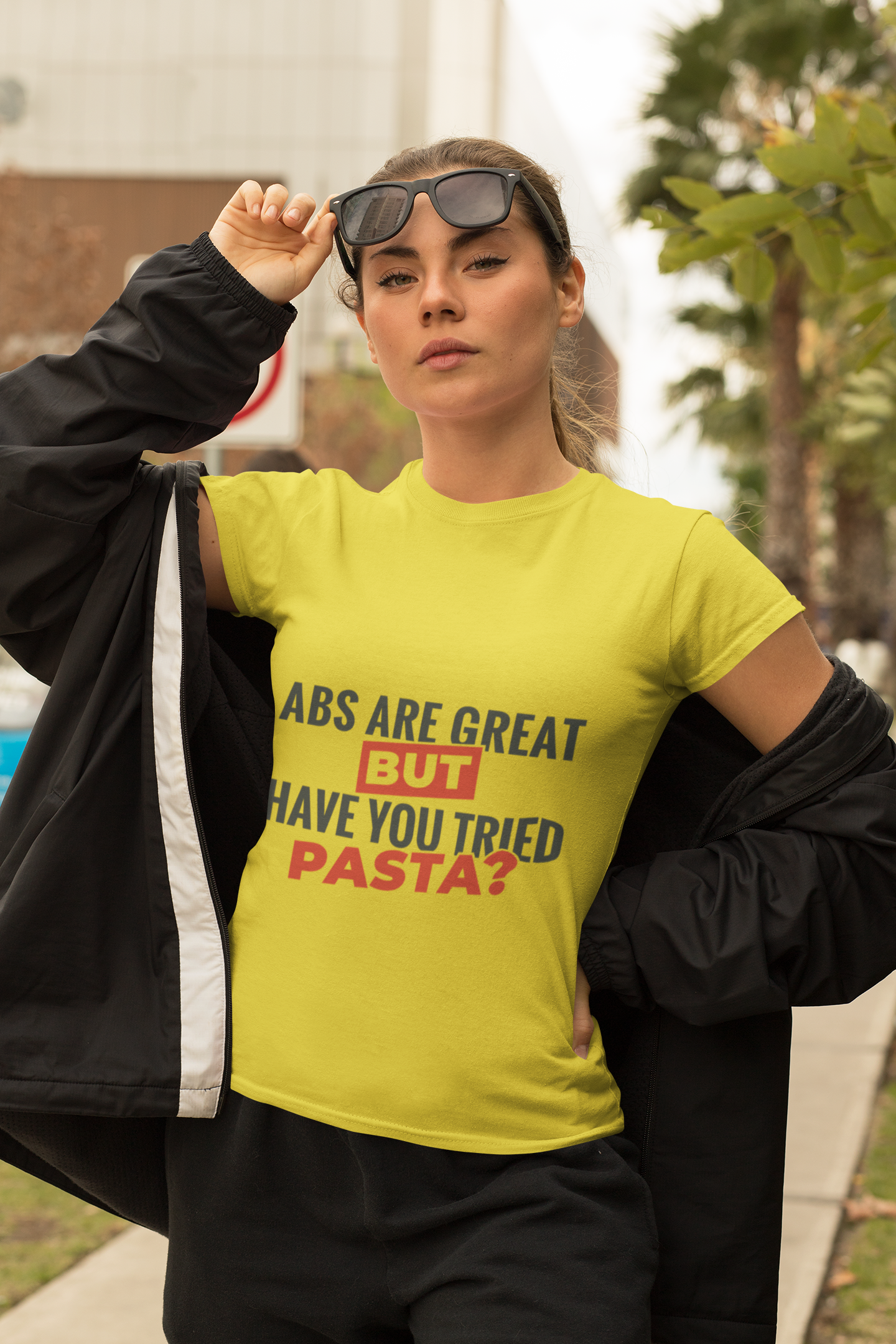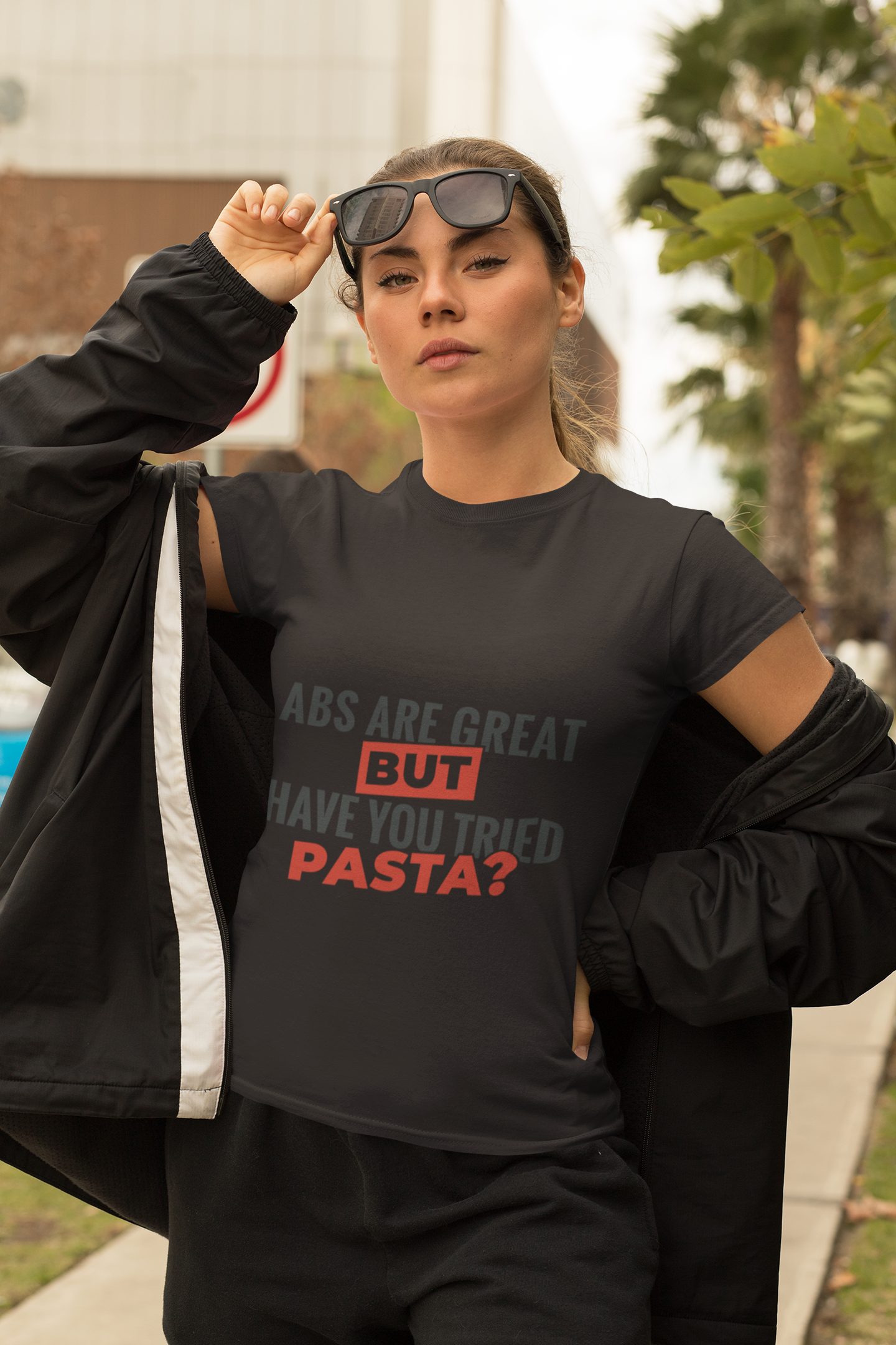 Buy Now Abs are great but pasta Women Half Sleeves T-Shirt- FashionRazor