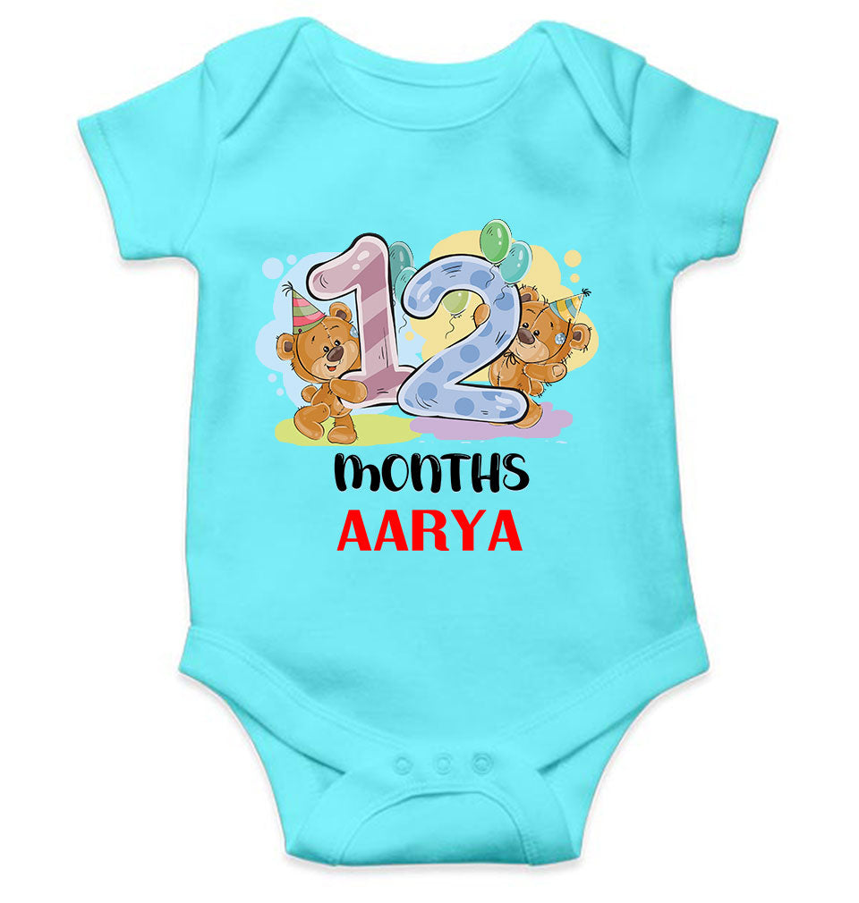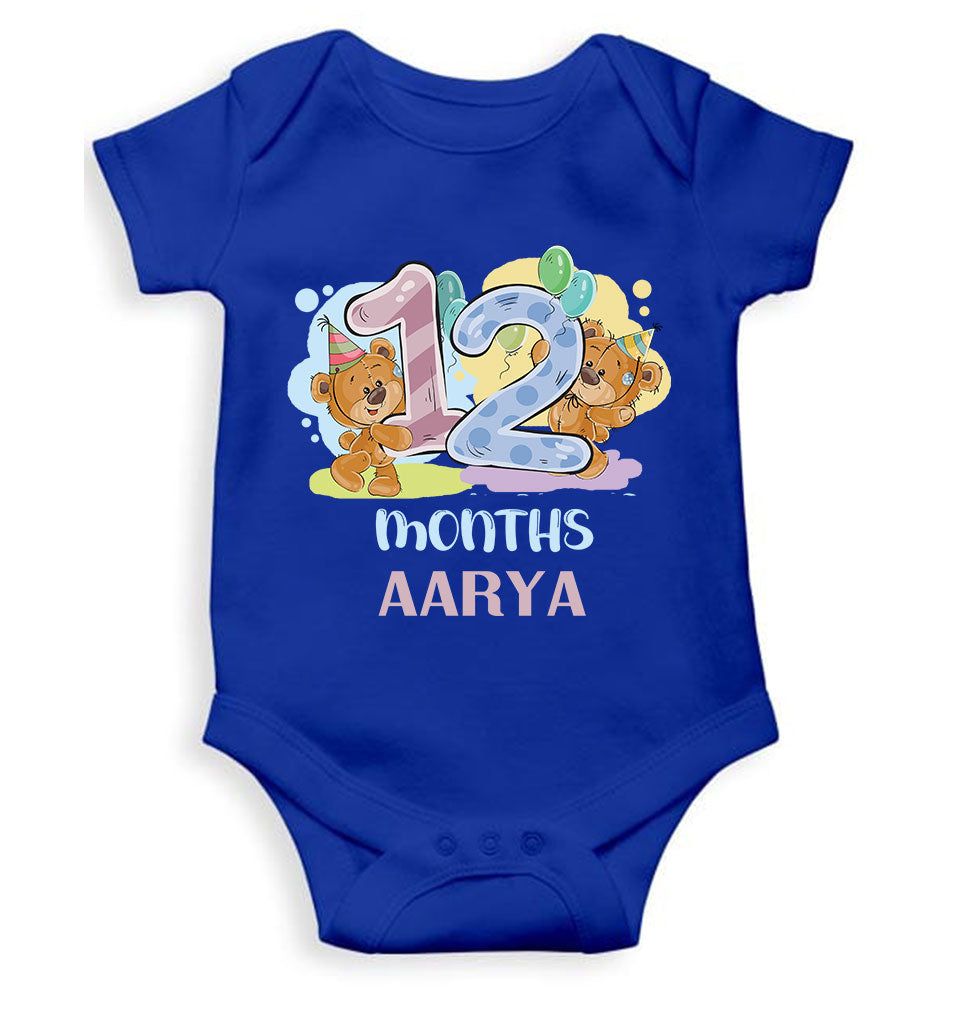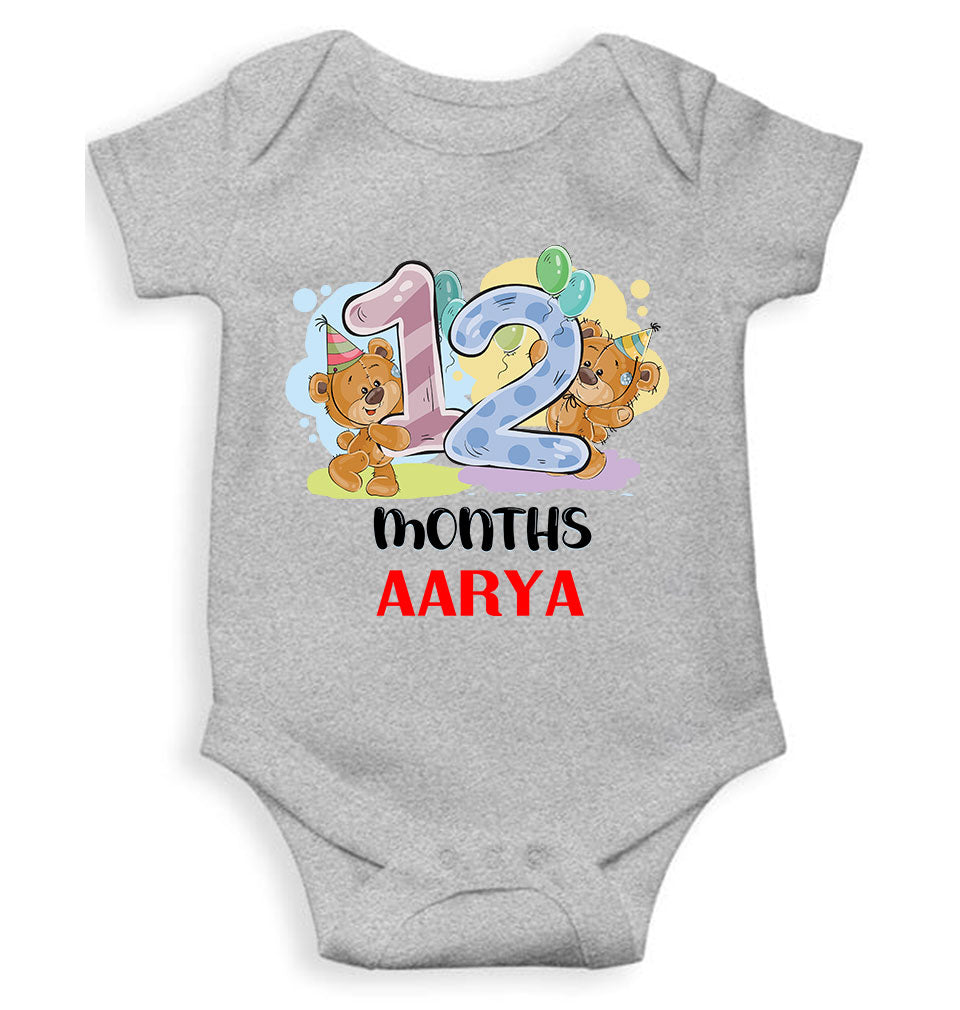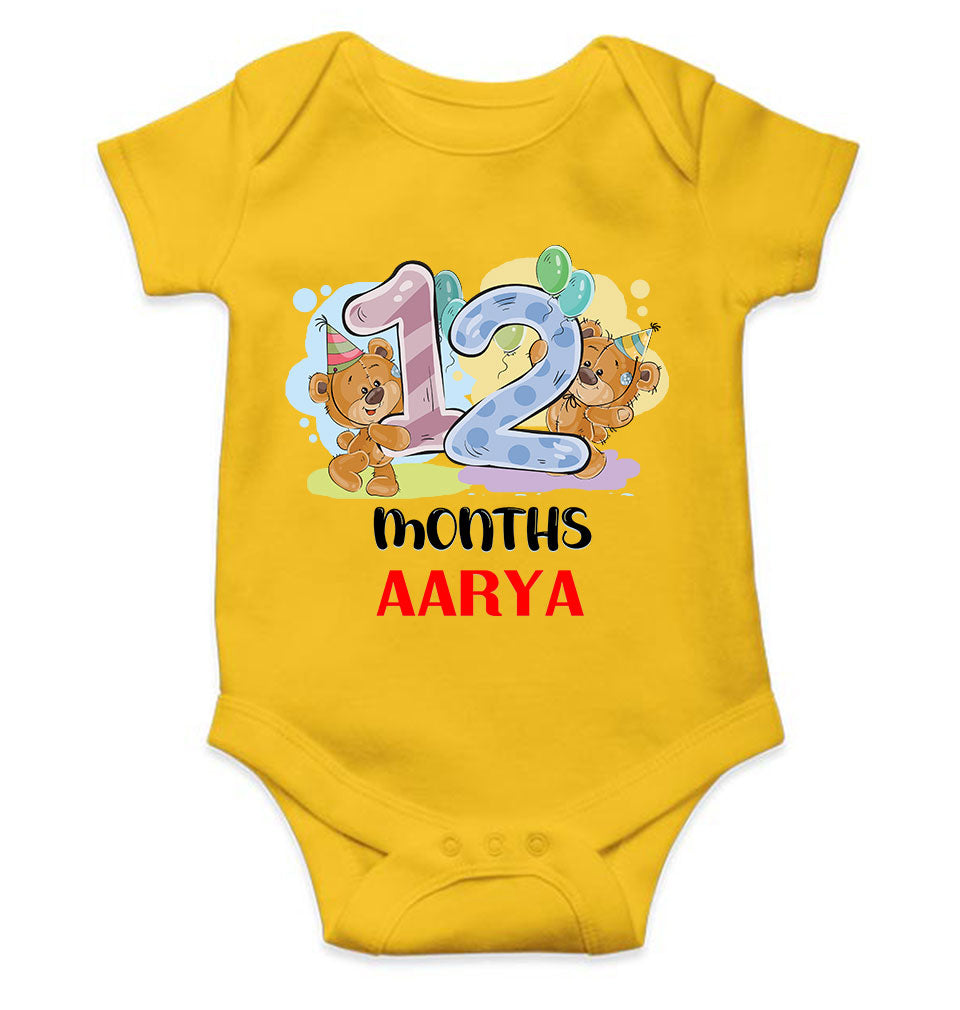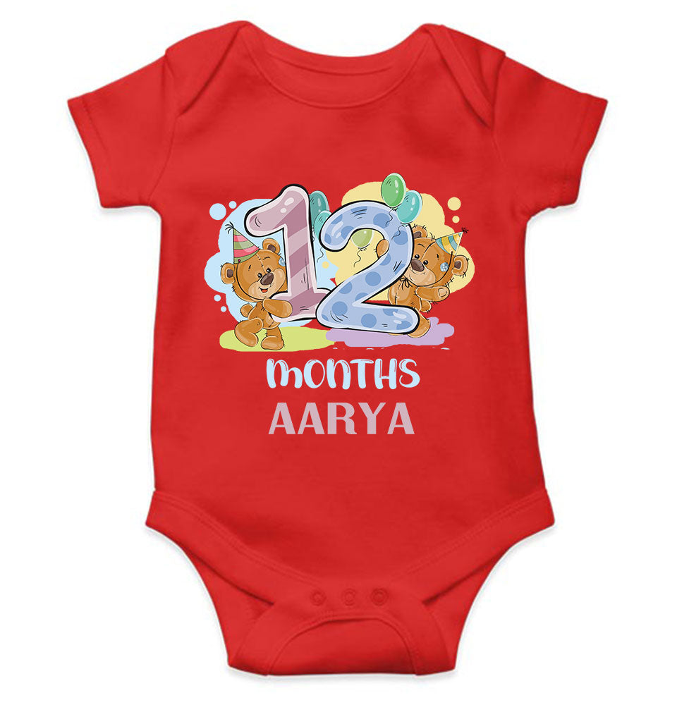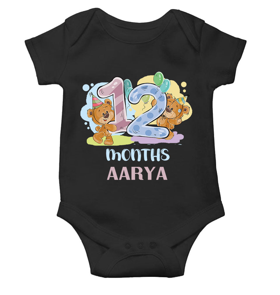 Custom Name 12 Month Birthday Teddy Design Rompers for Baby Girl- FashionRazor