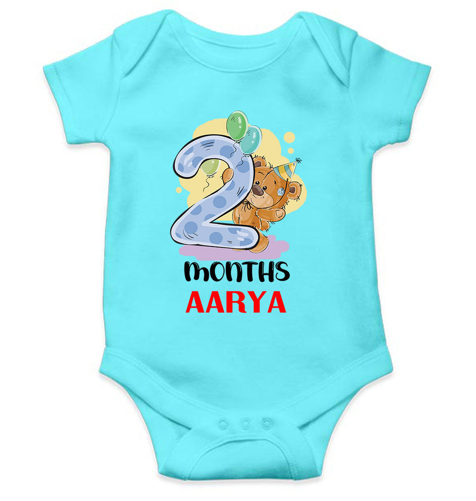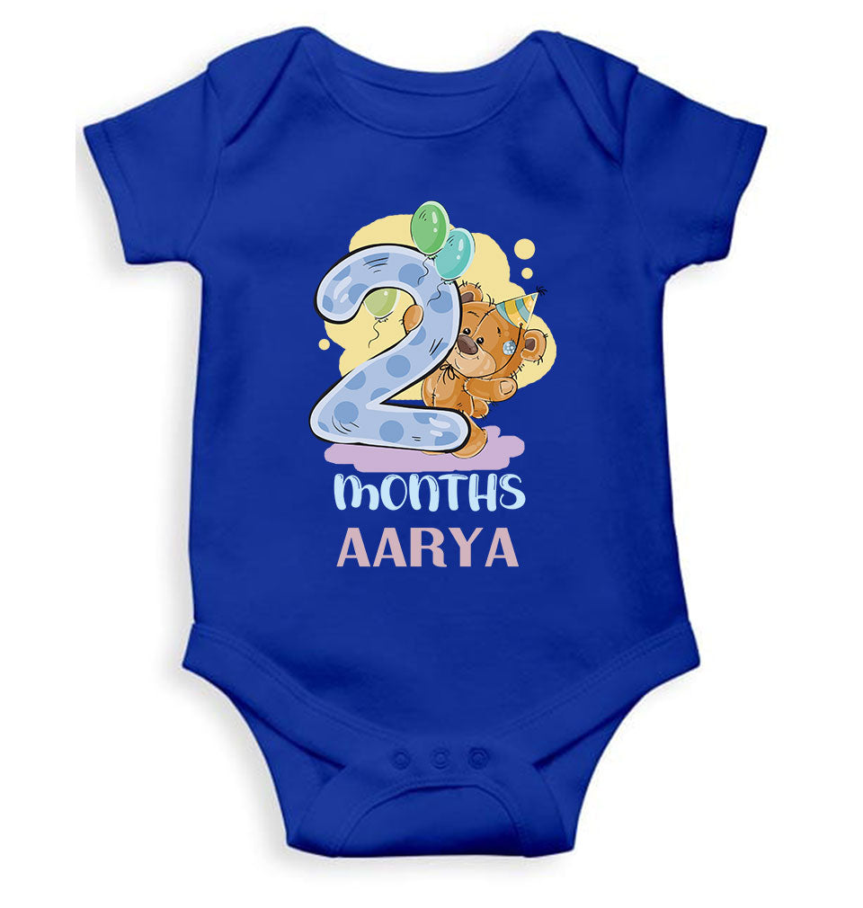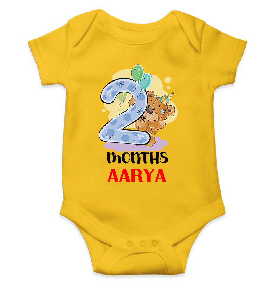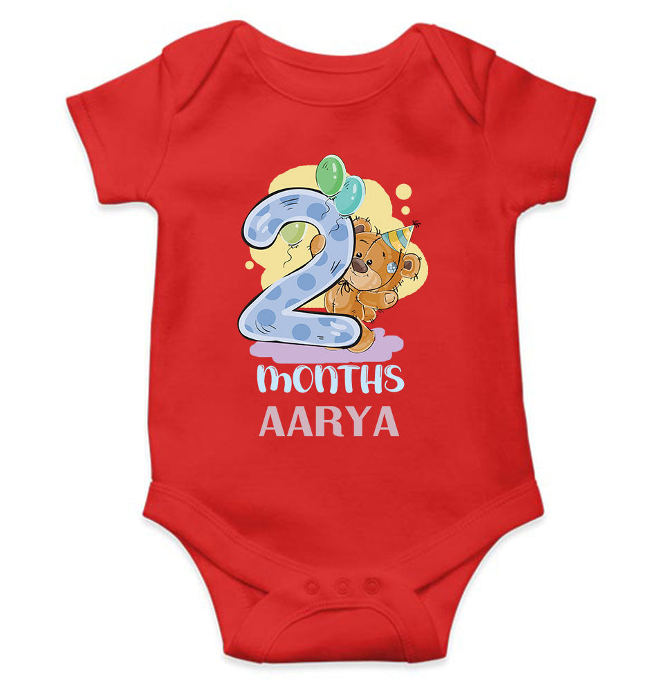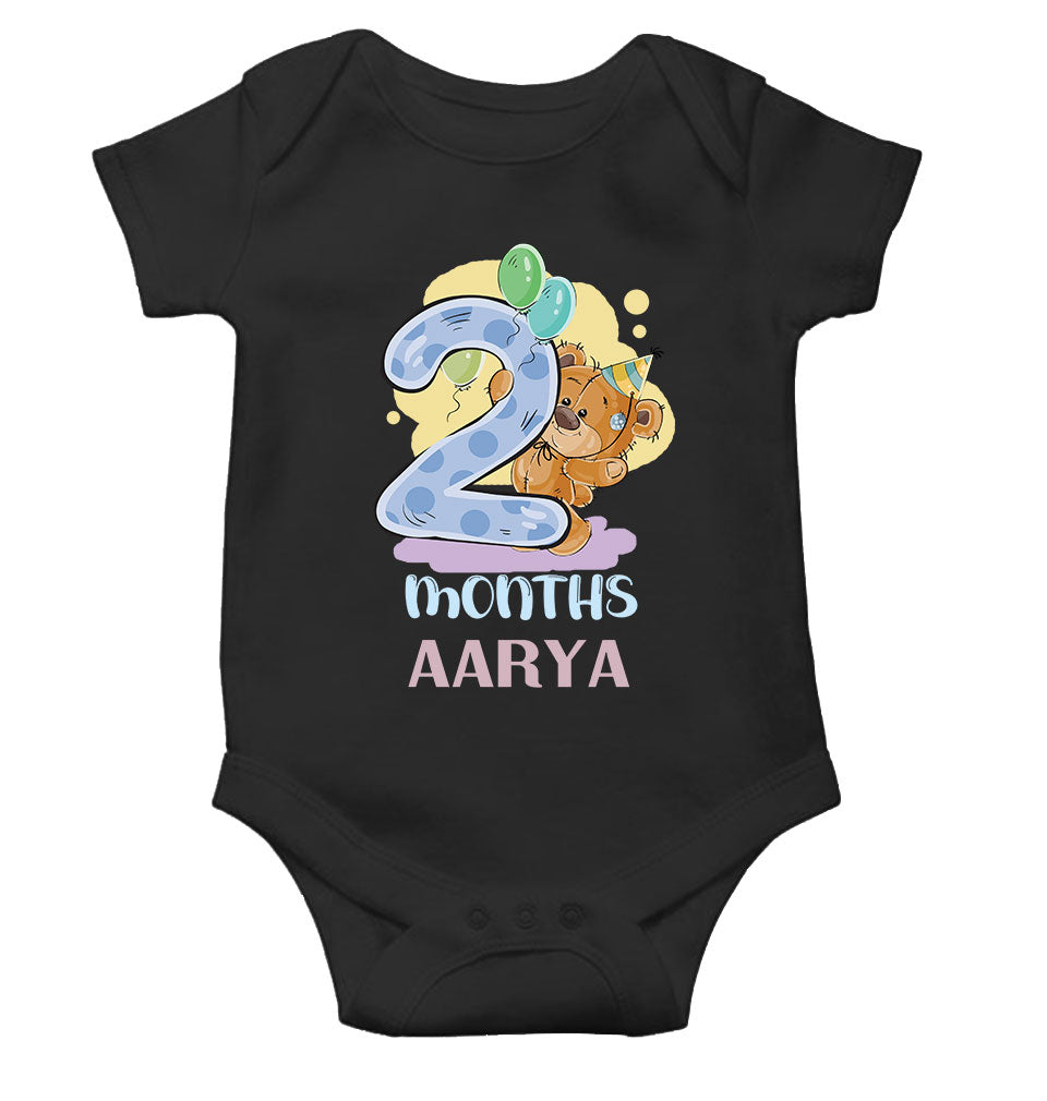 Custom Name 2 Month Birthday Teddy Design Rompers for Baby Girl- FashionRazor