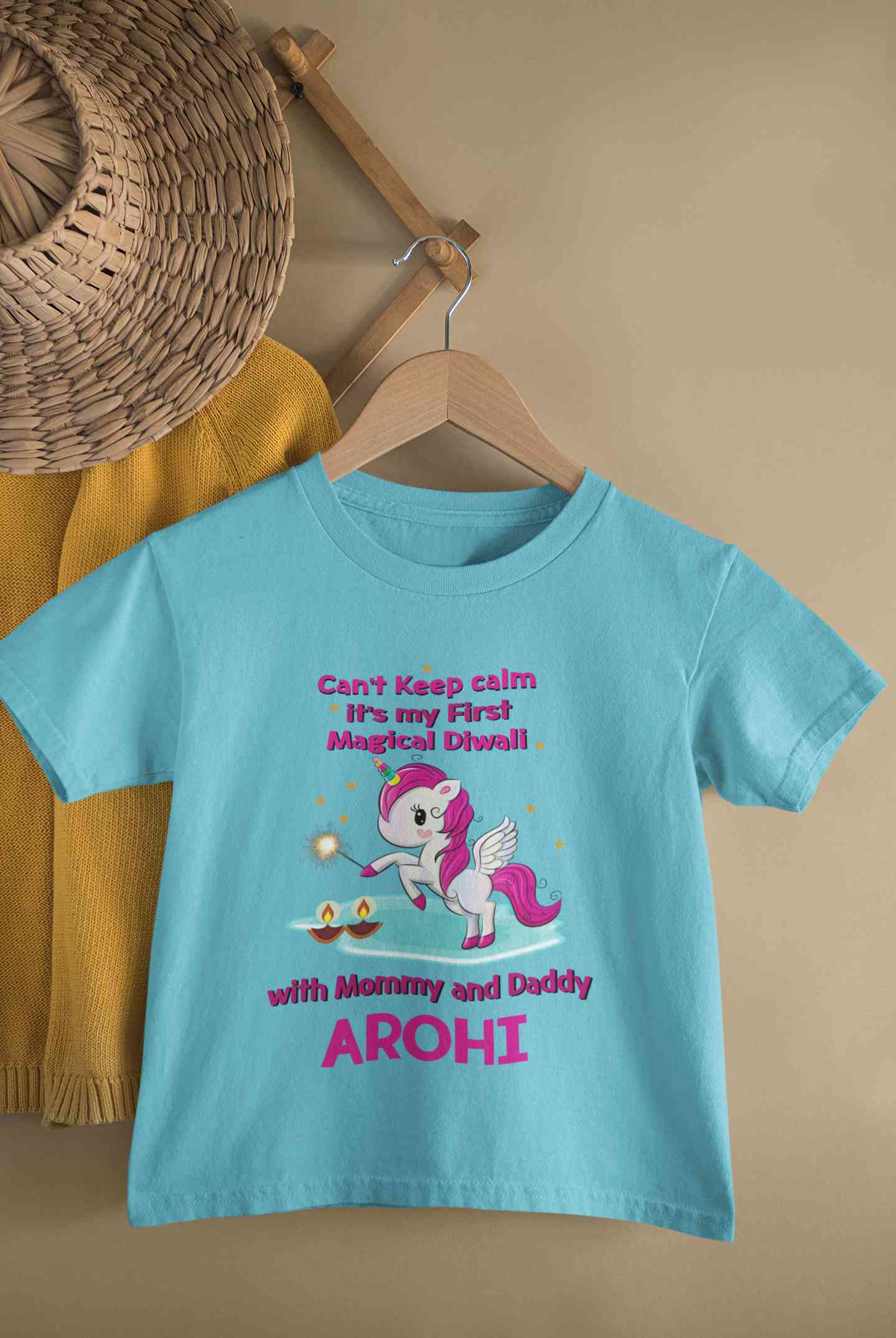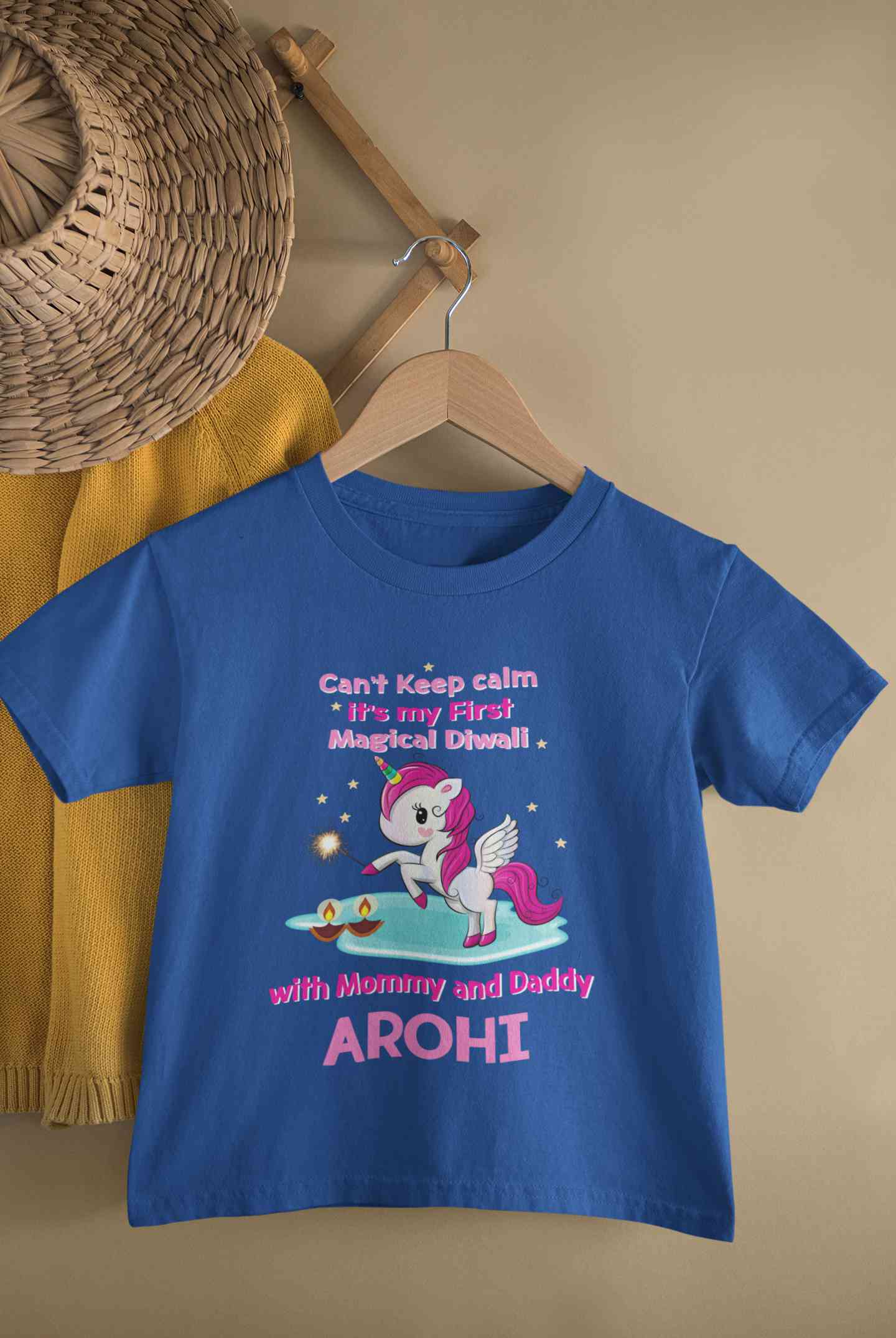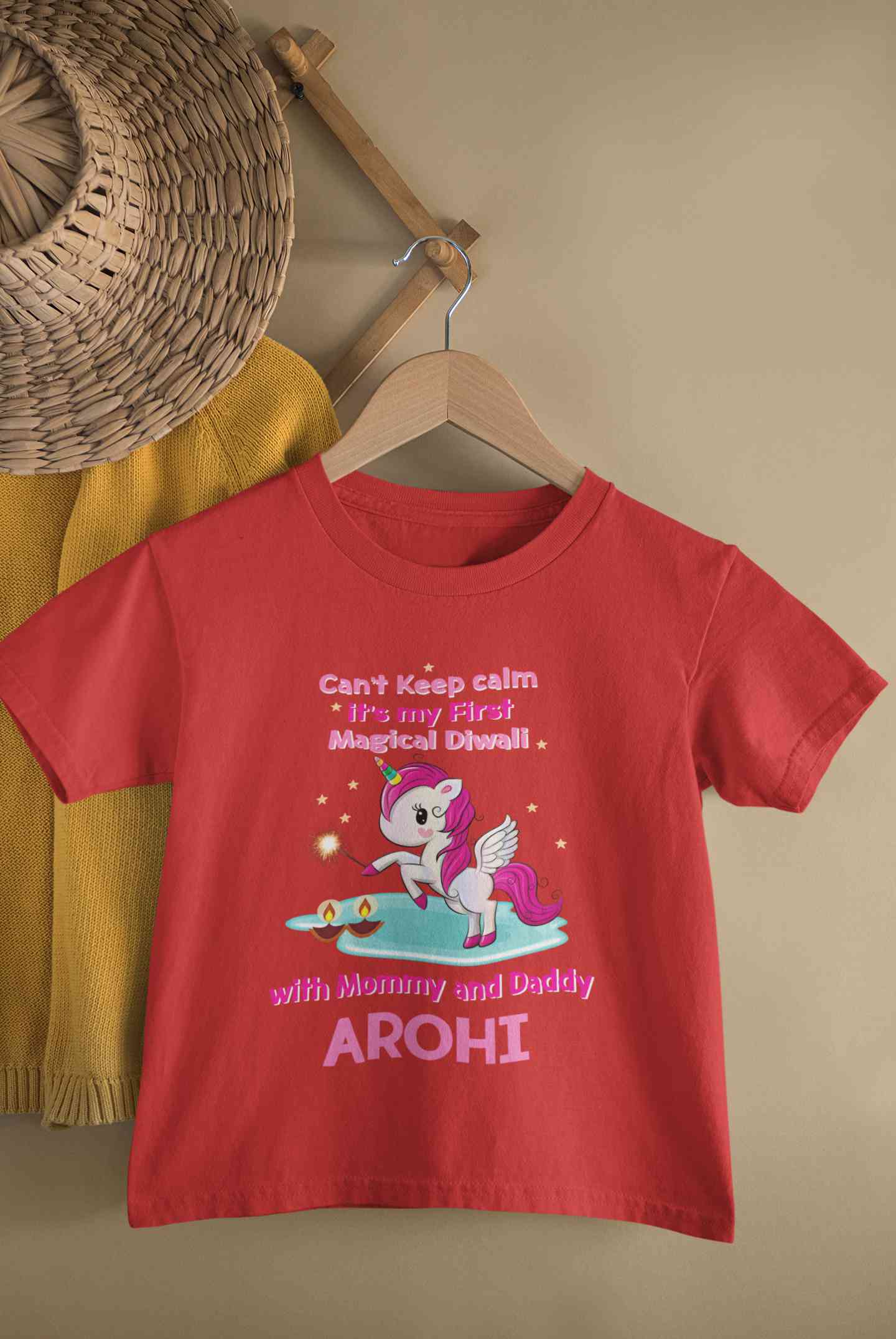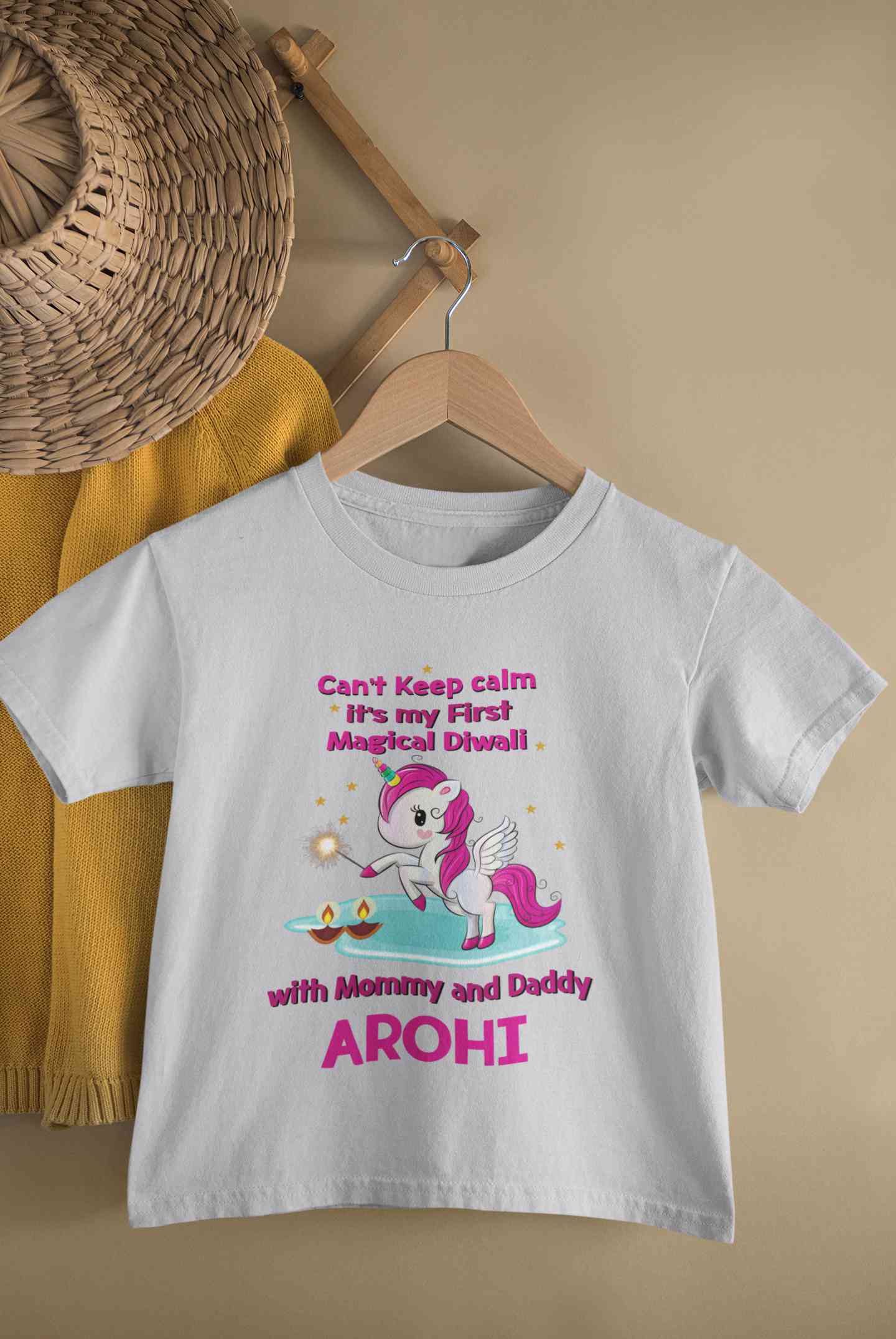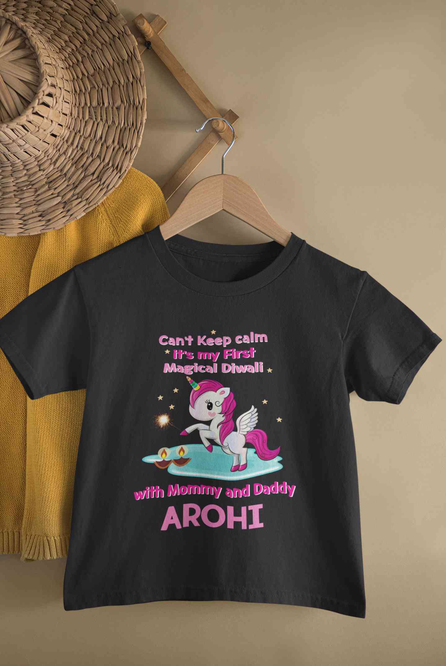 Custom Name Cant Keep Calm Its My First Diwali With Mummy Daddy Half Sleeves T-Shirt For Girls -FashionRazor