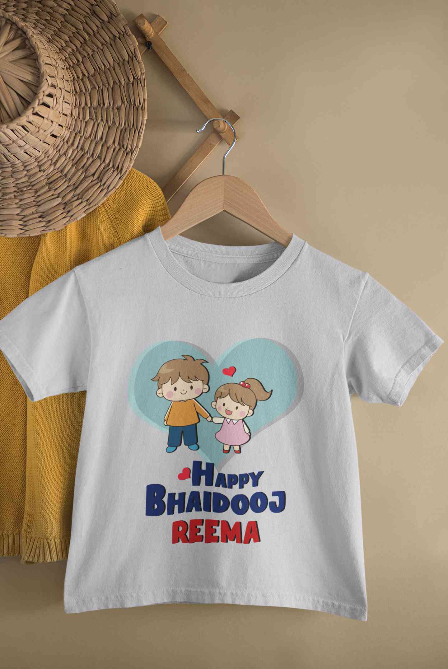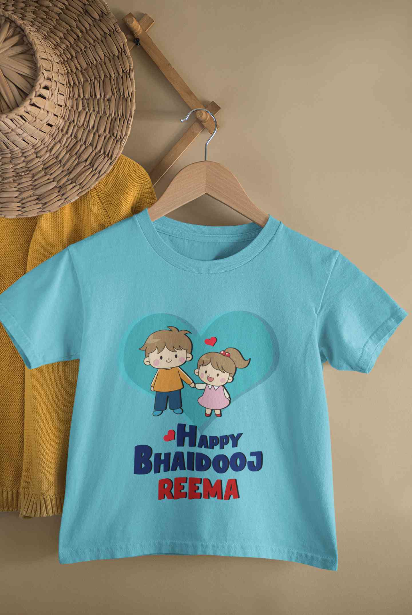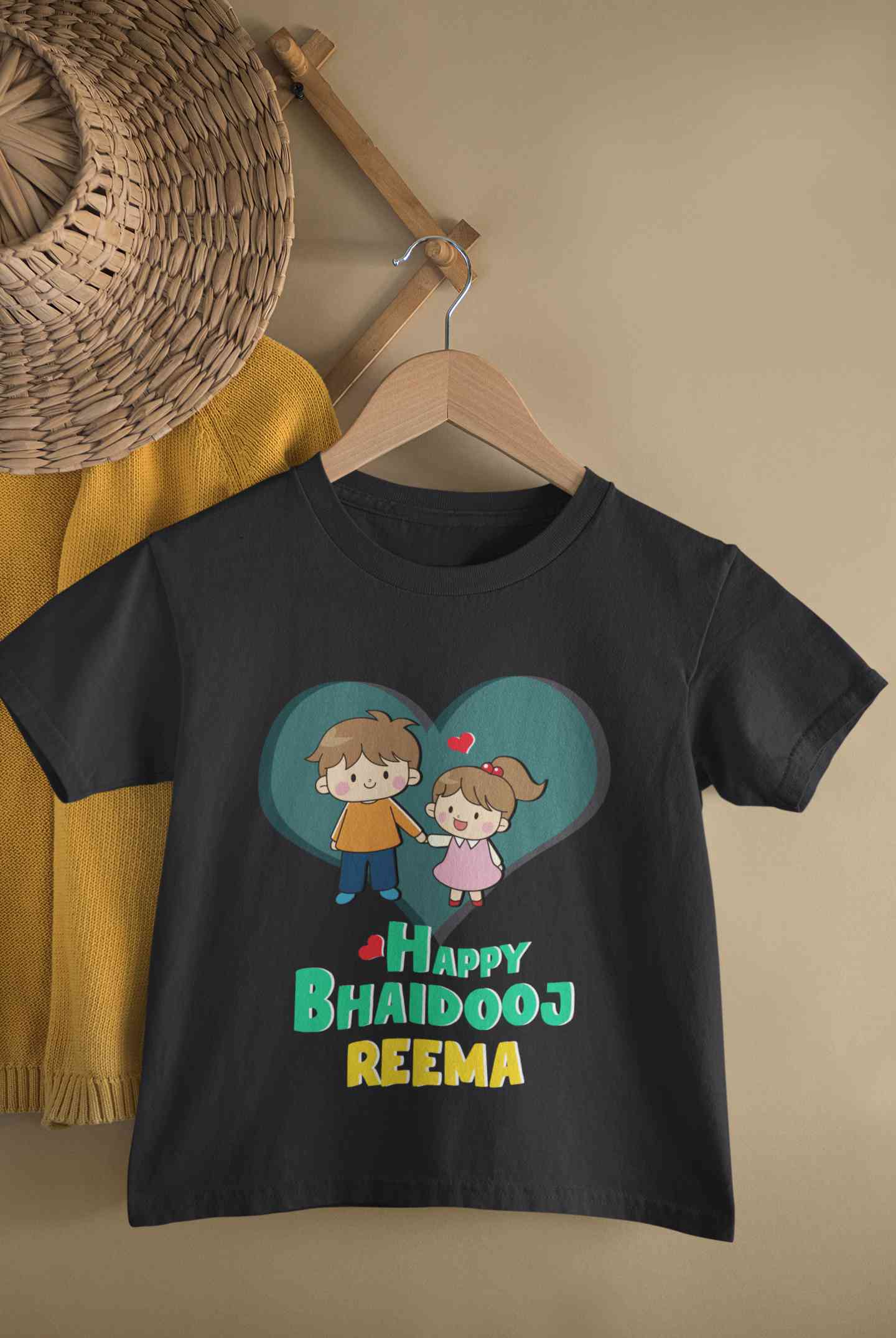 Custom Name Happy Bhai Dooj Half Sleeves T-Shirt For Girls -FashionRazor