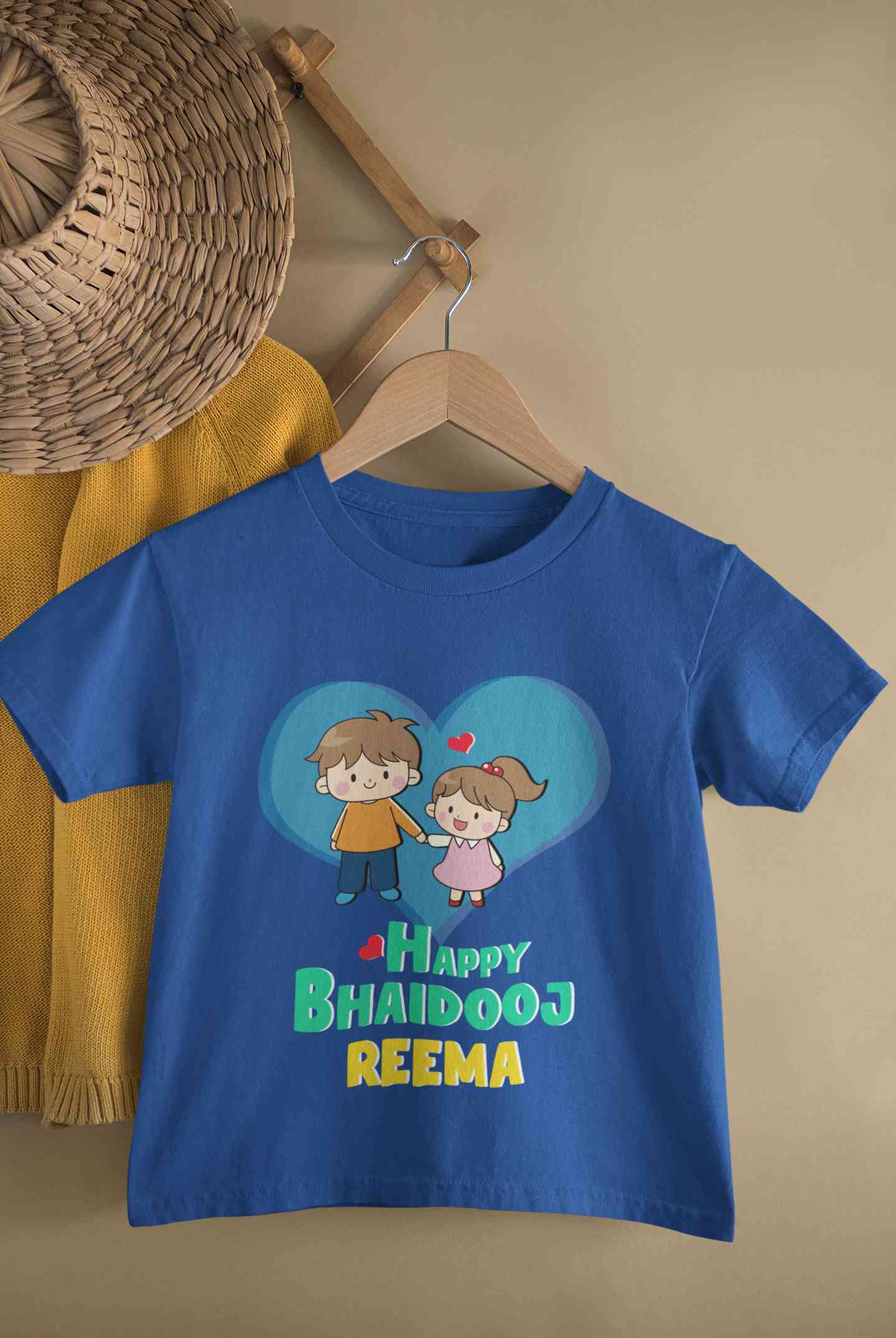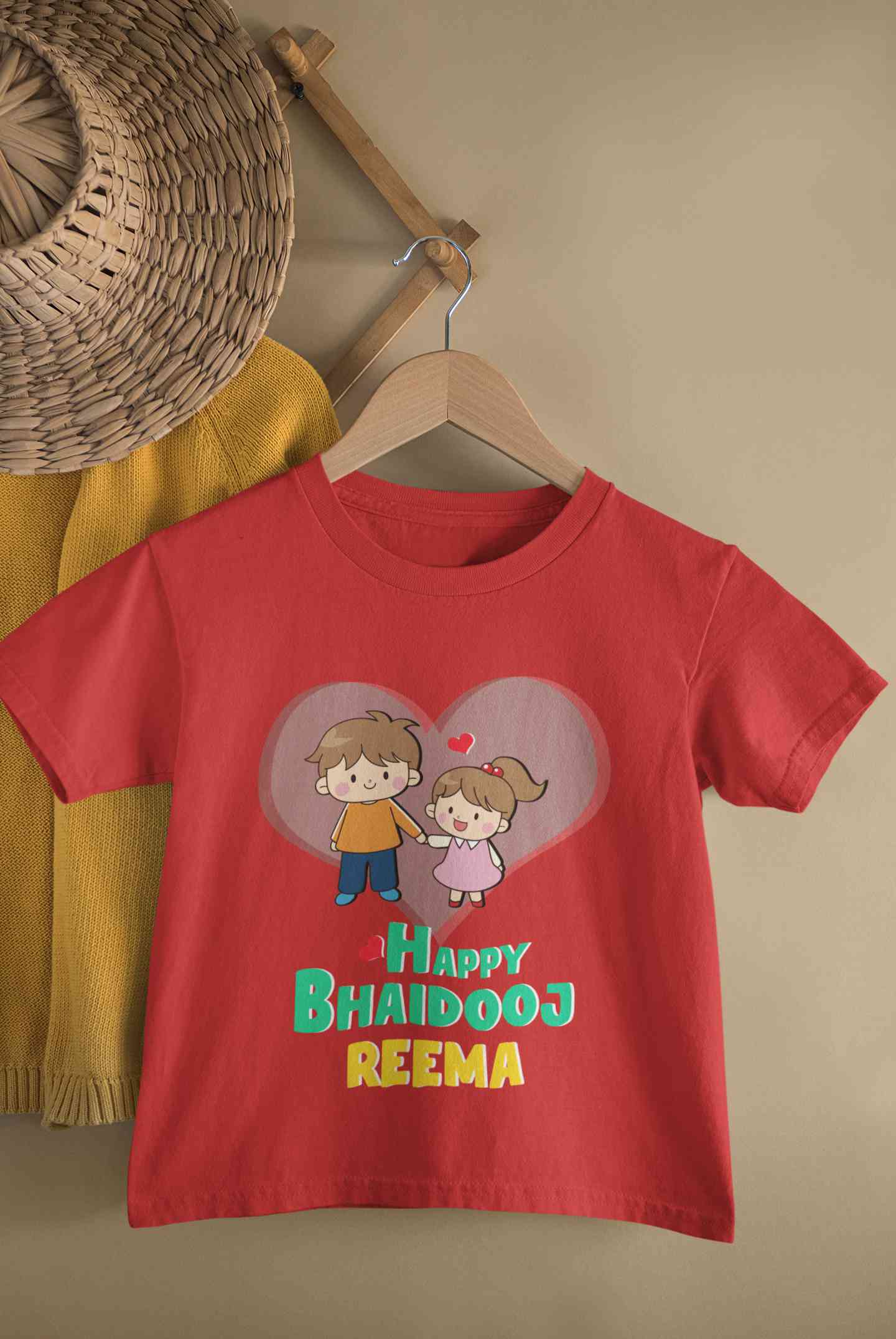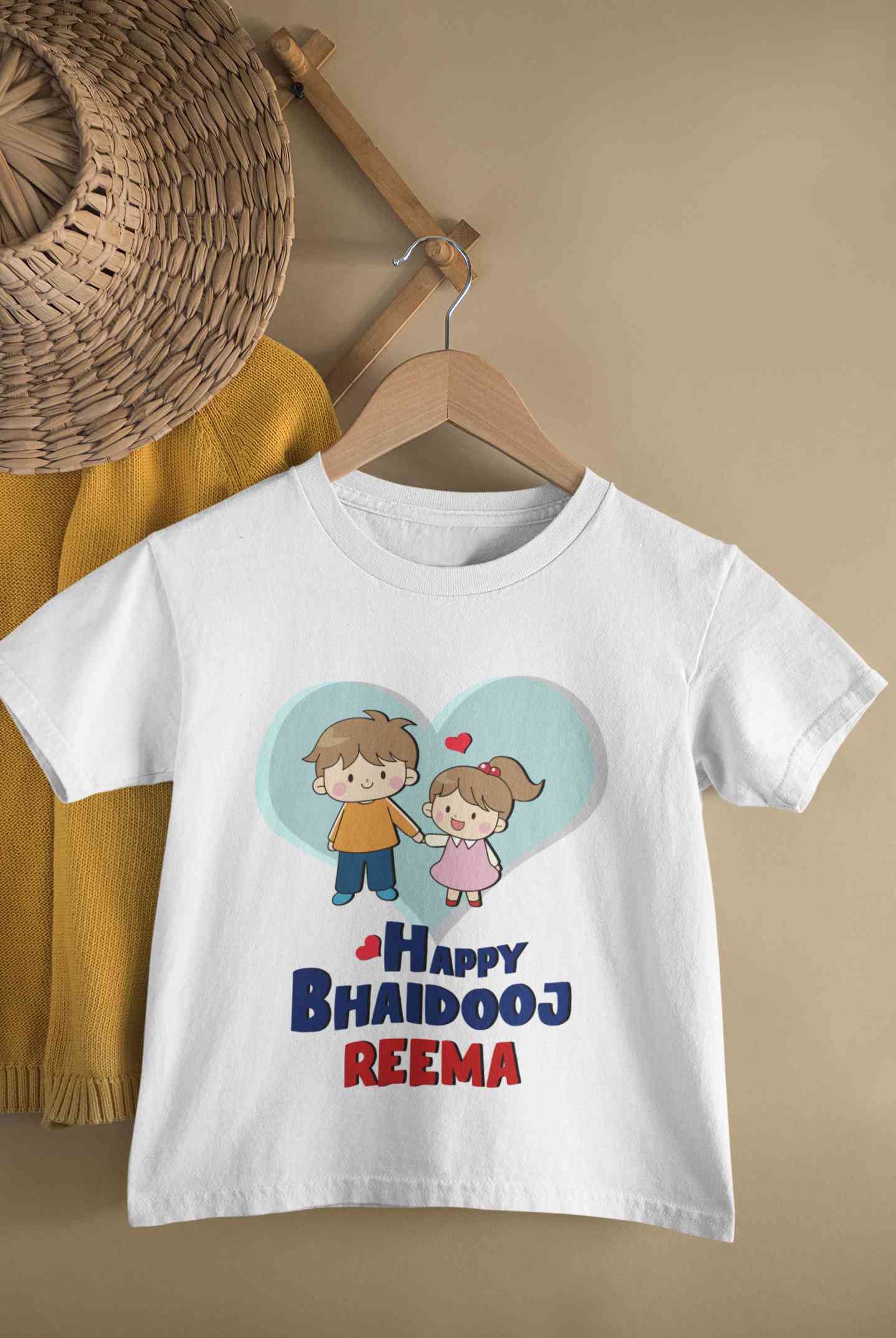 Custom Name Happy Bhai Dooj Half Sleeves T-Shirt For Girls -FashionRazor