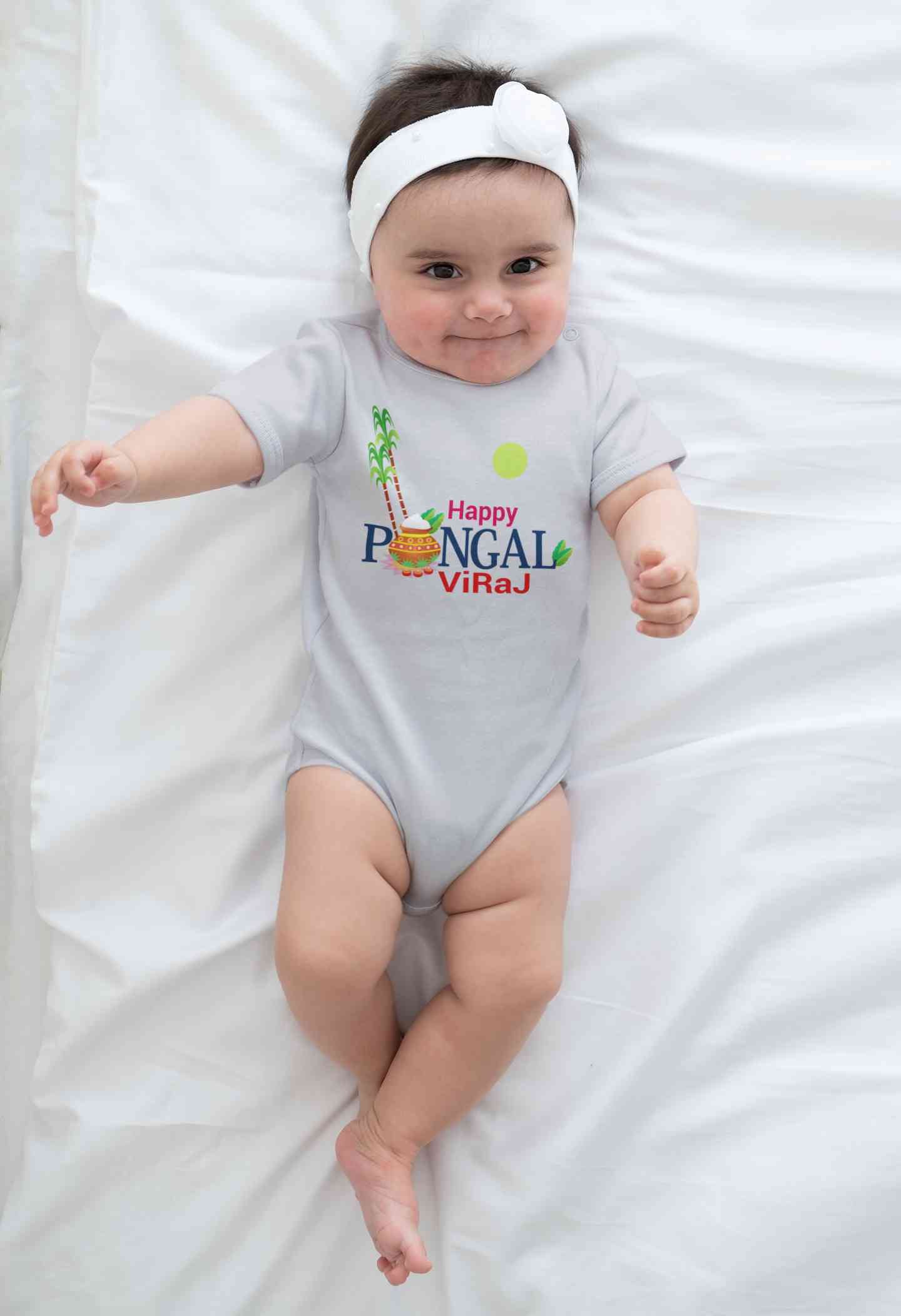 Custom Name Happy Pongal Rompers for Baby Girl- FashionRazor