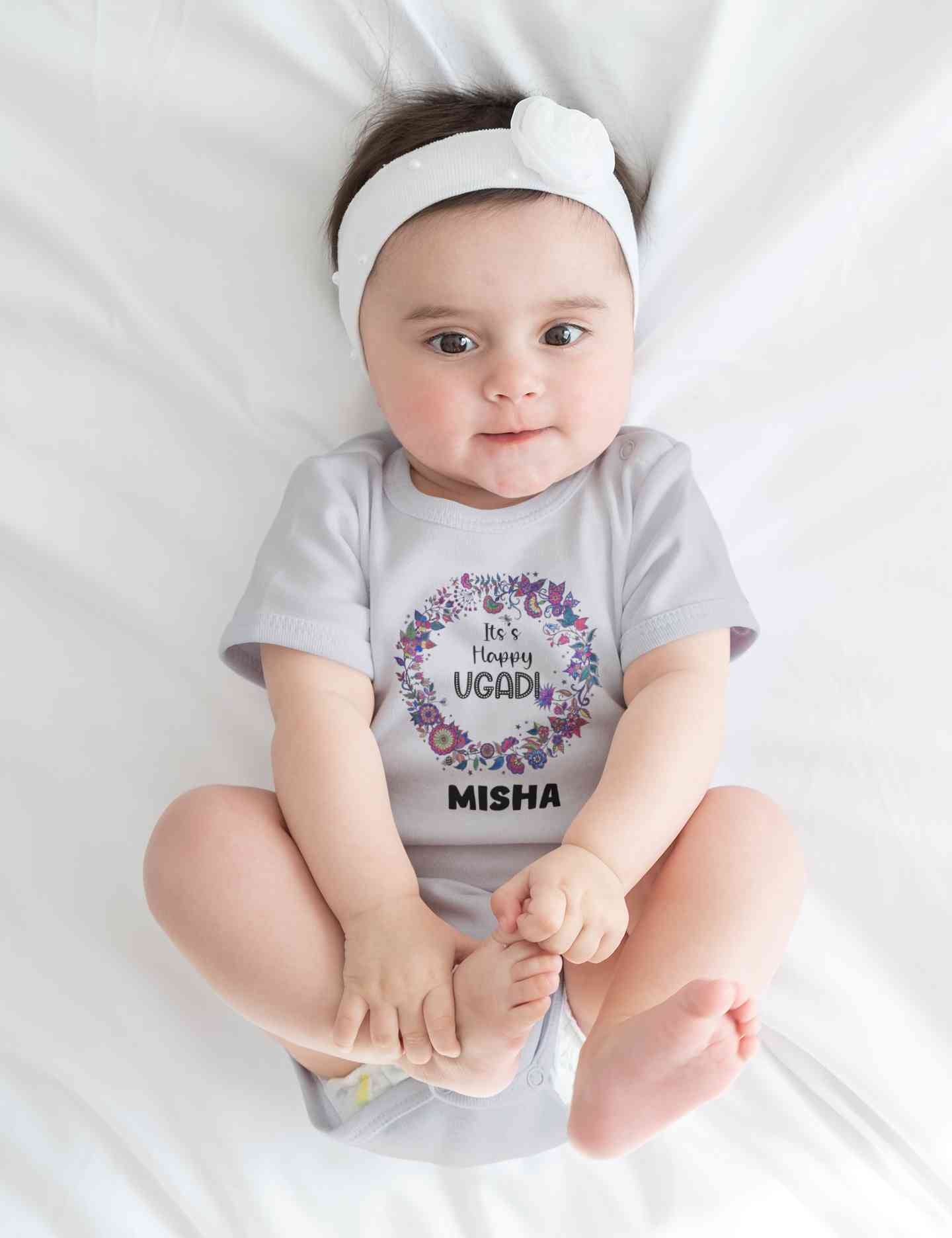 Custom Name Its Happy Ugadi Rompers for Baby Girl- FashionRazor