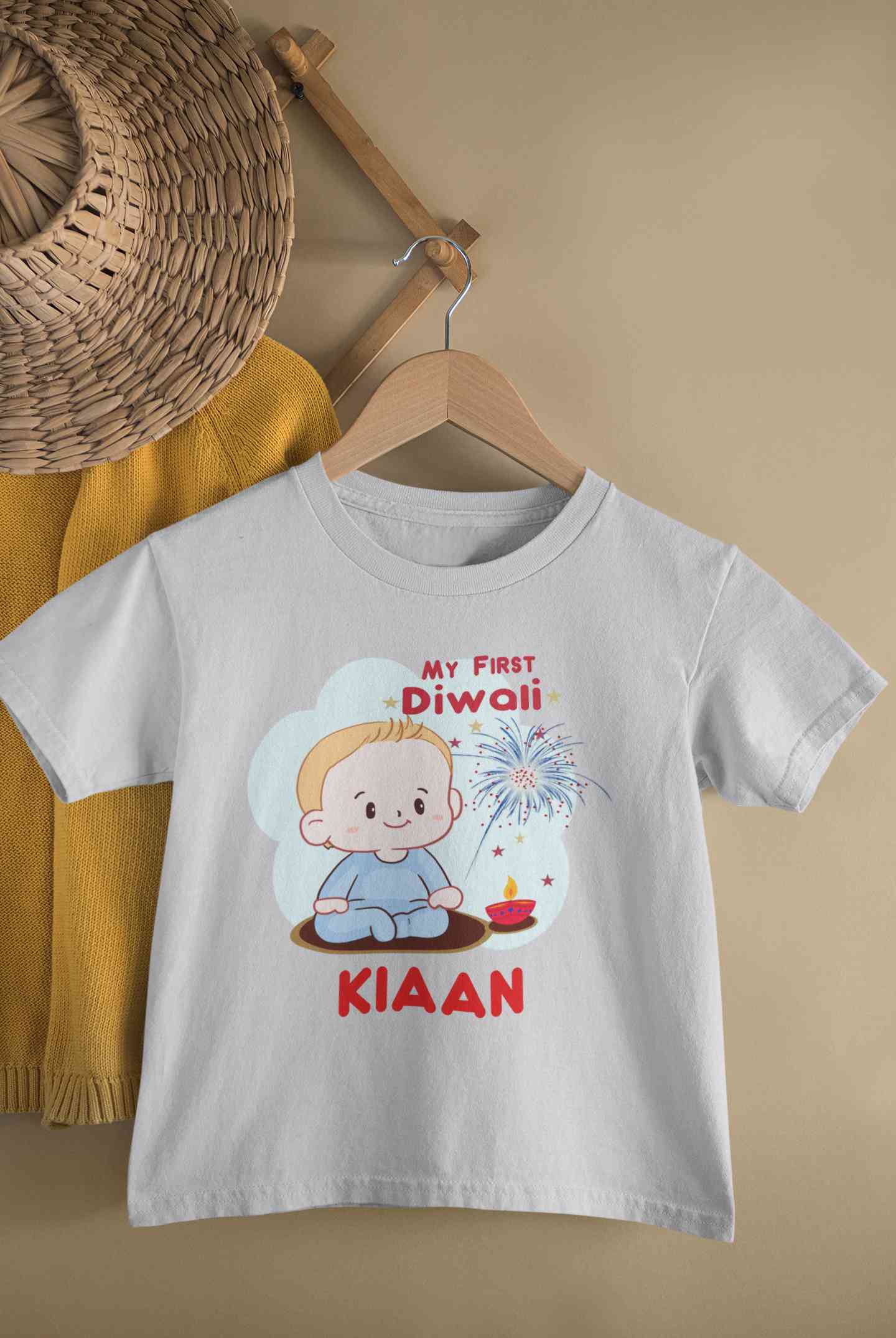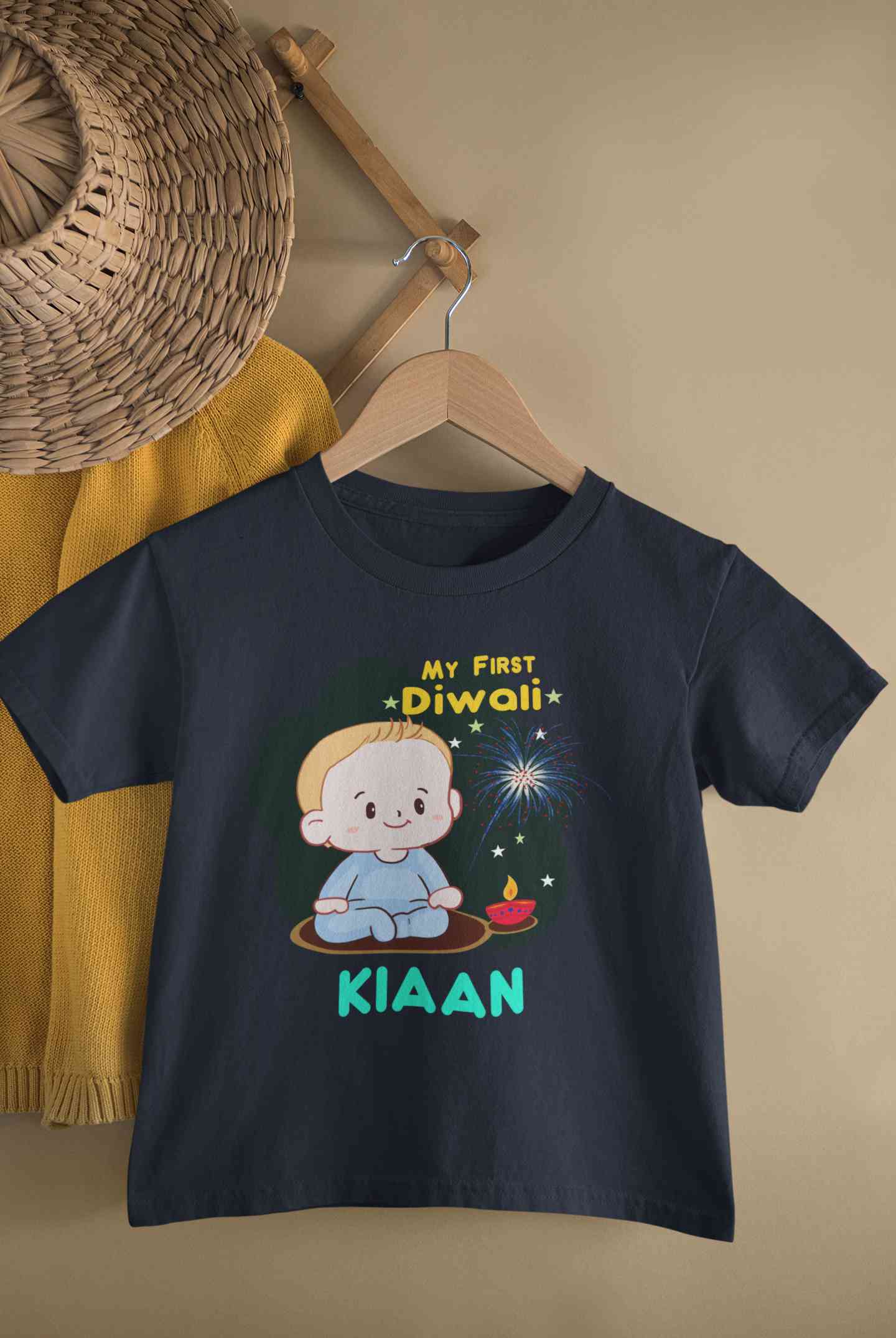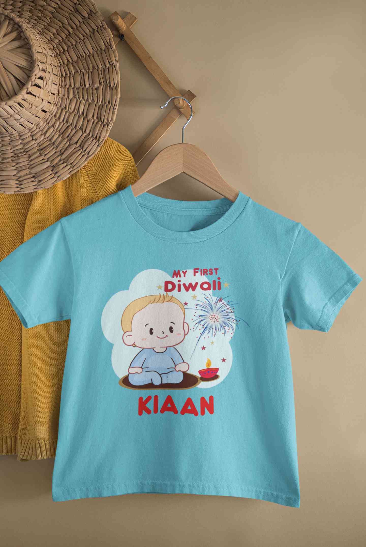 Buy Custom Name My First Diwali Half Sleeves T-Shirt for Boy-FashionRazor