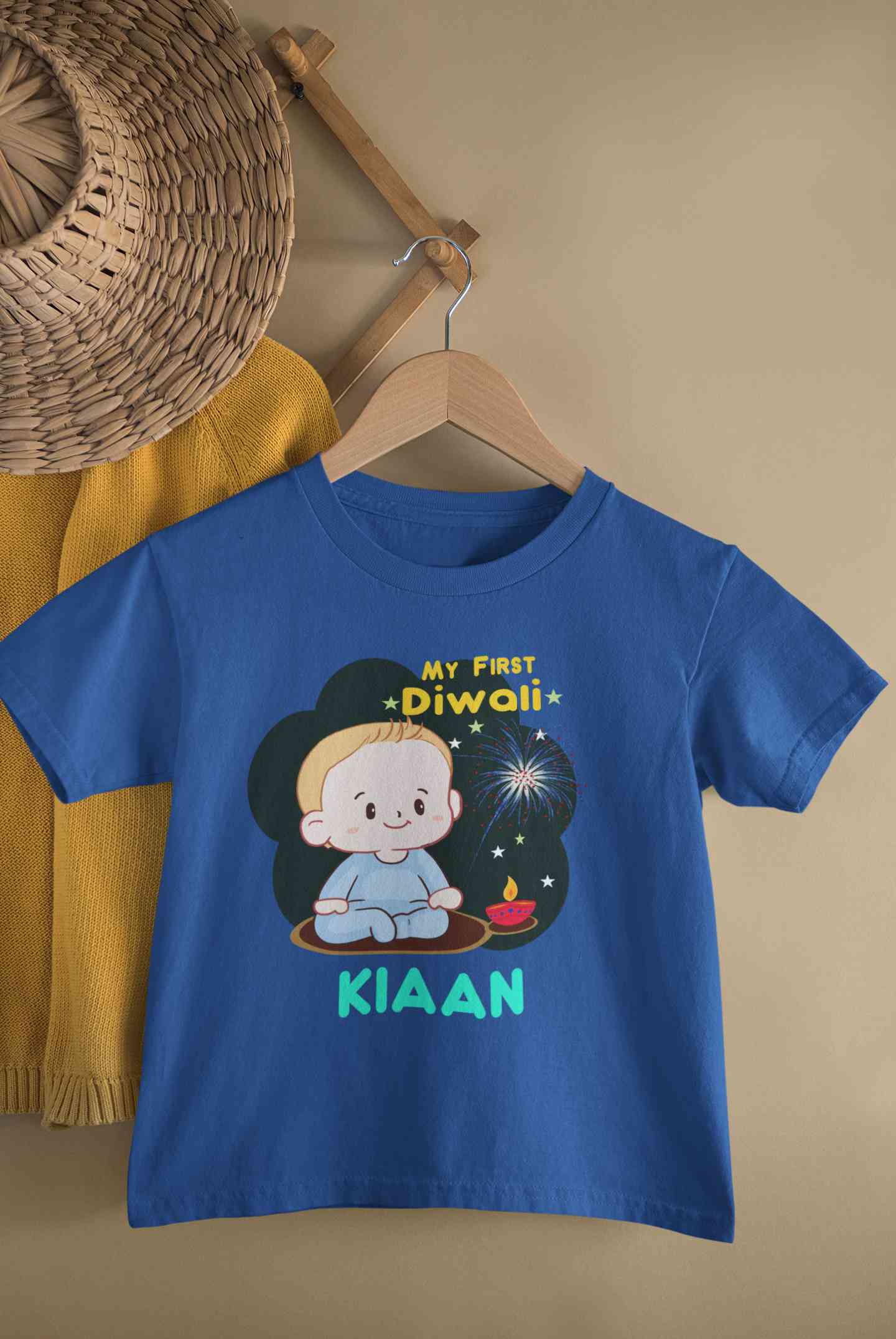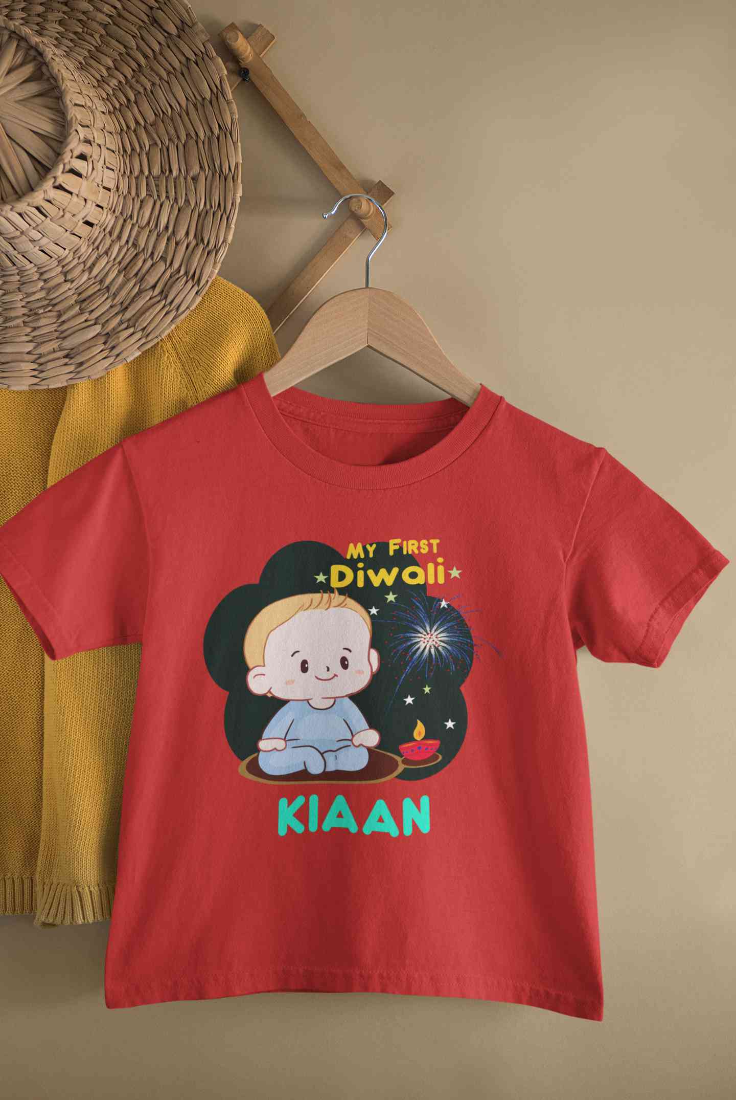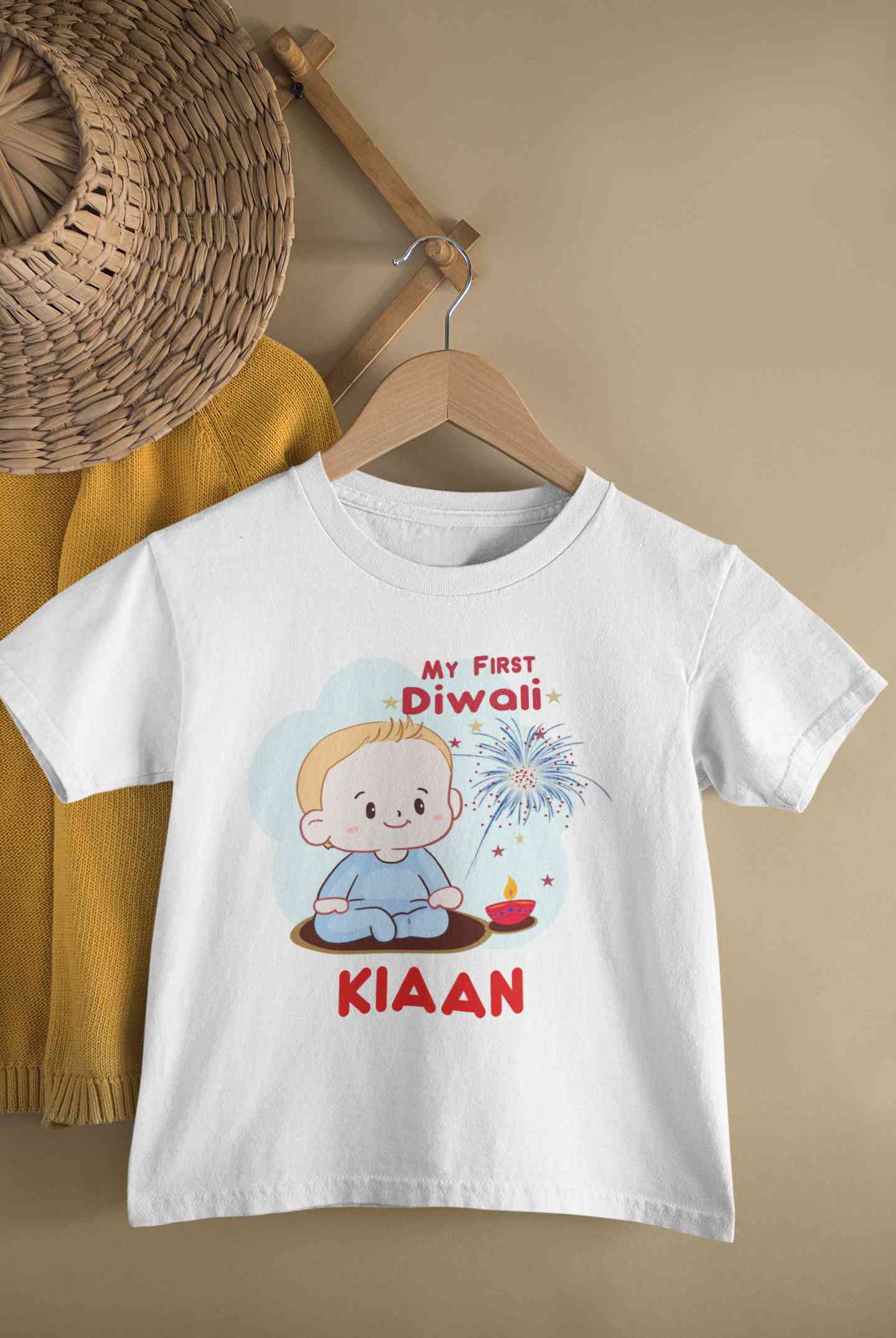 Buy Custom Name My First Diwali Half Sleeves T-Shirt for Boy-FashionRazor