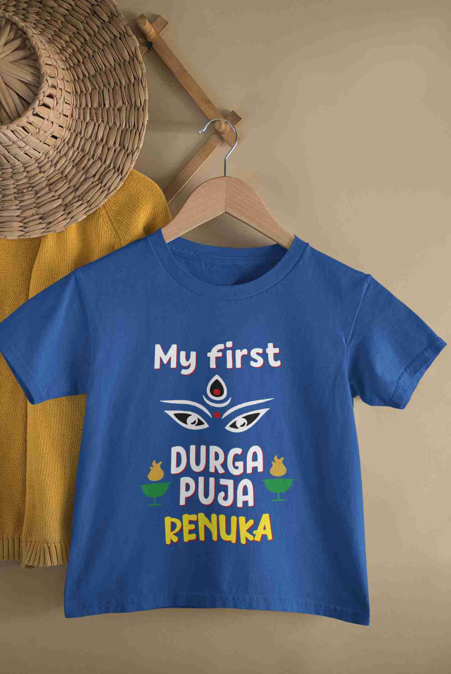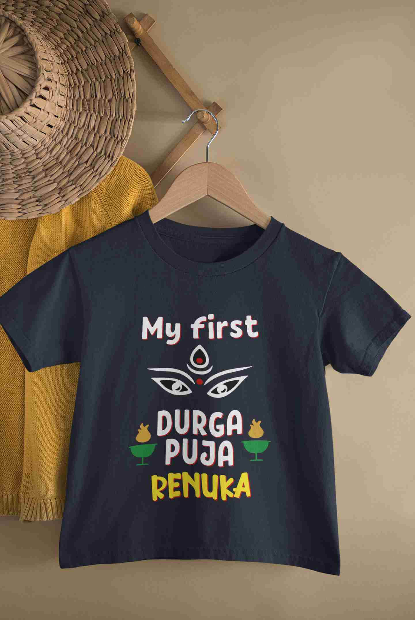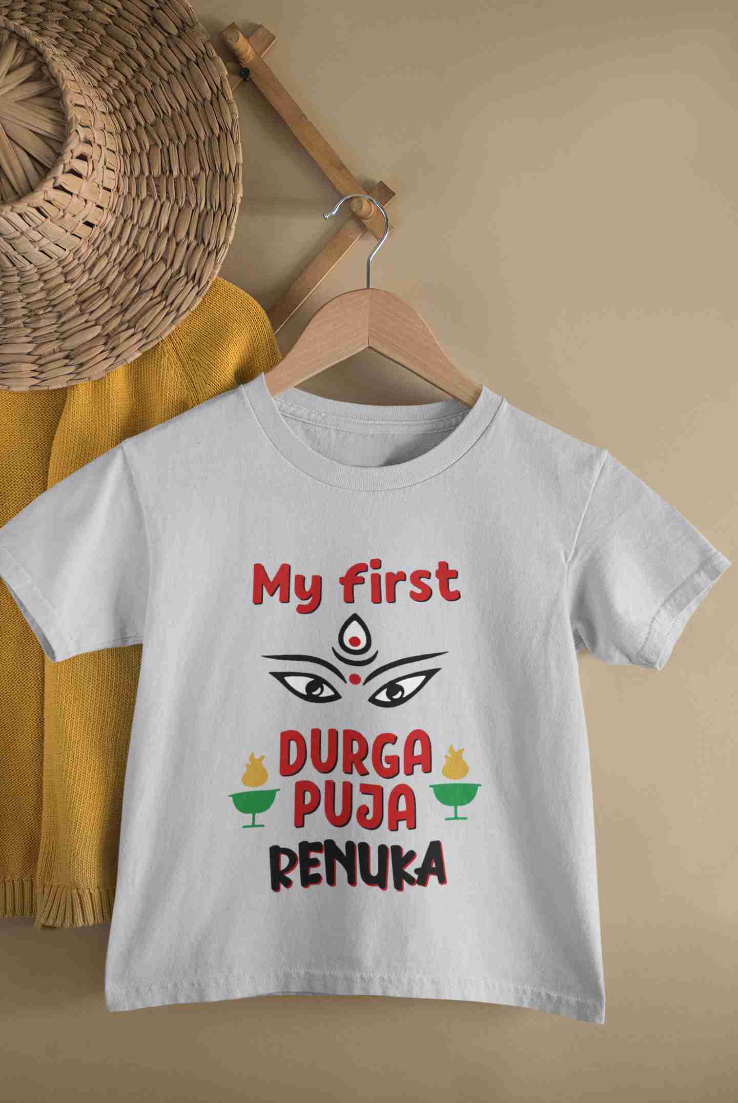 Custom Name My First Durga Pooja Half Sleeves T-Shirt For Girls -FashionRazor
