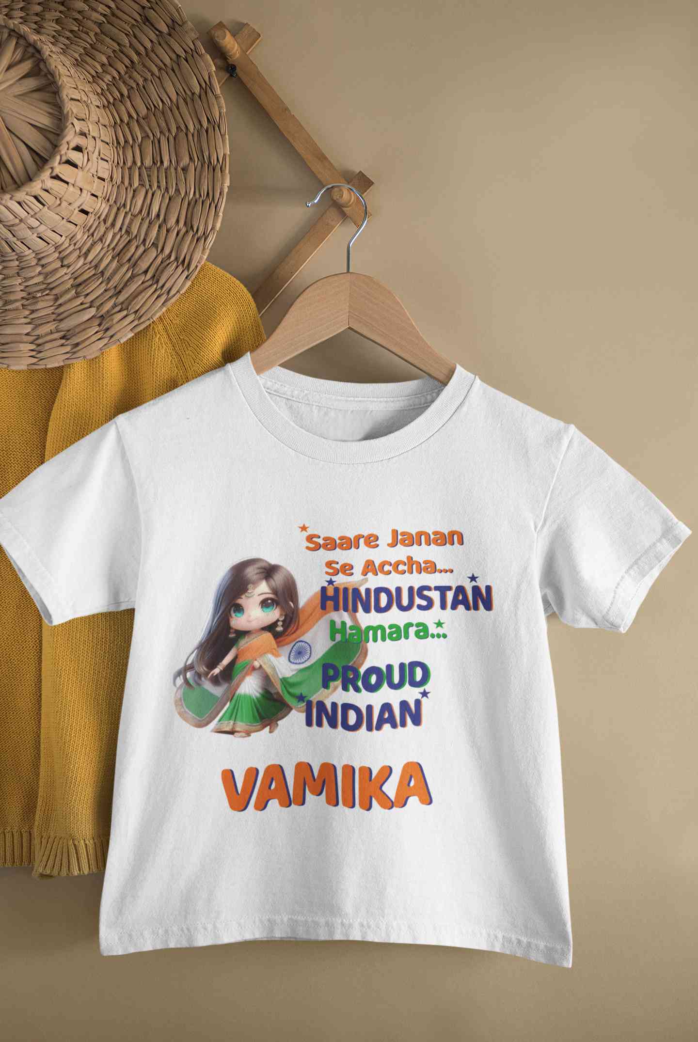 Custom Name Saare Jahan Se Accha Hindustan Humara Independence Day Half Sleeves T-Shirt For Girls -FashionRazor
