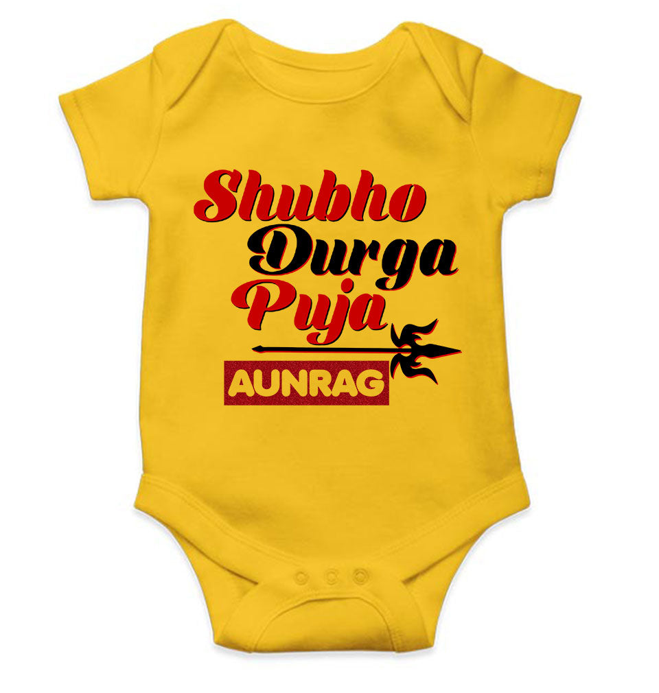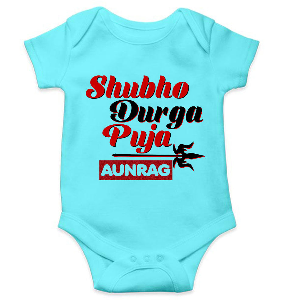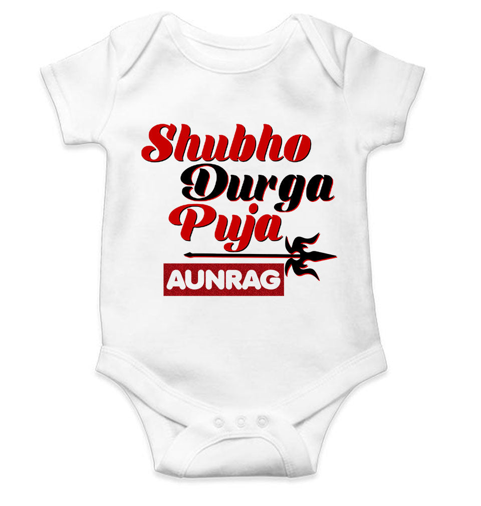 Custom Name Shubo Durga Puja Rompers for Baby Boy- FashionRazor