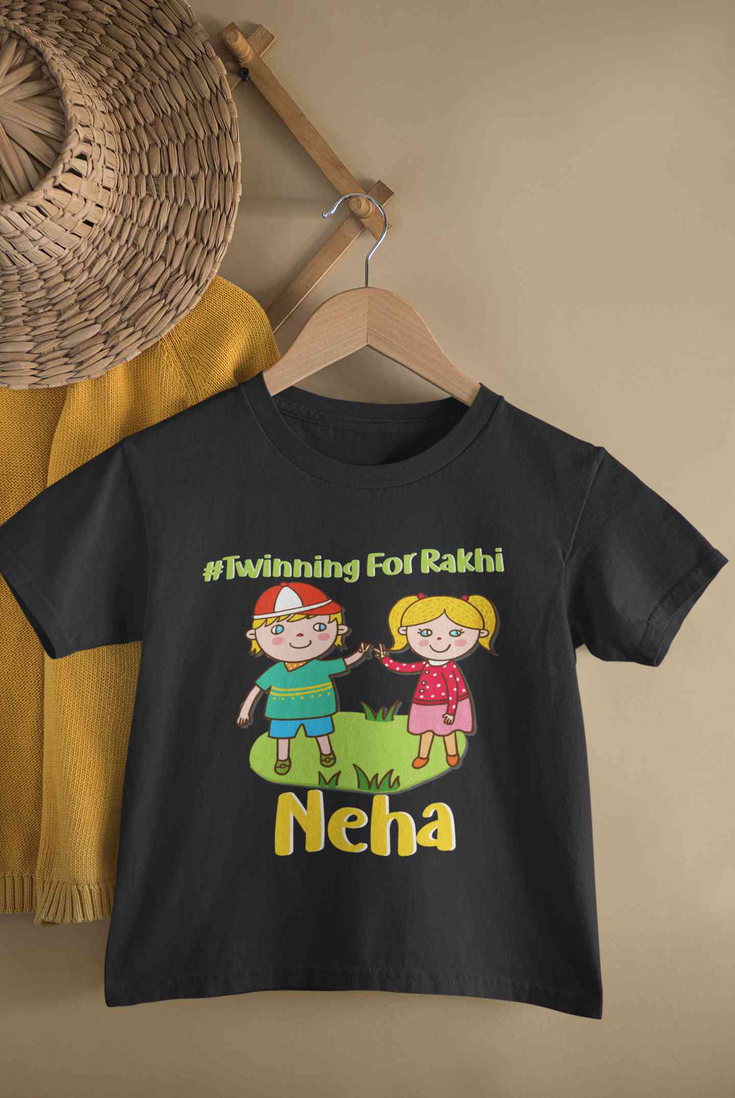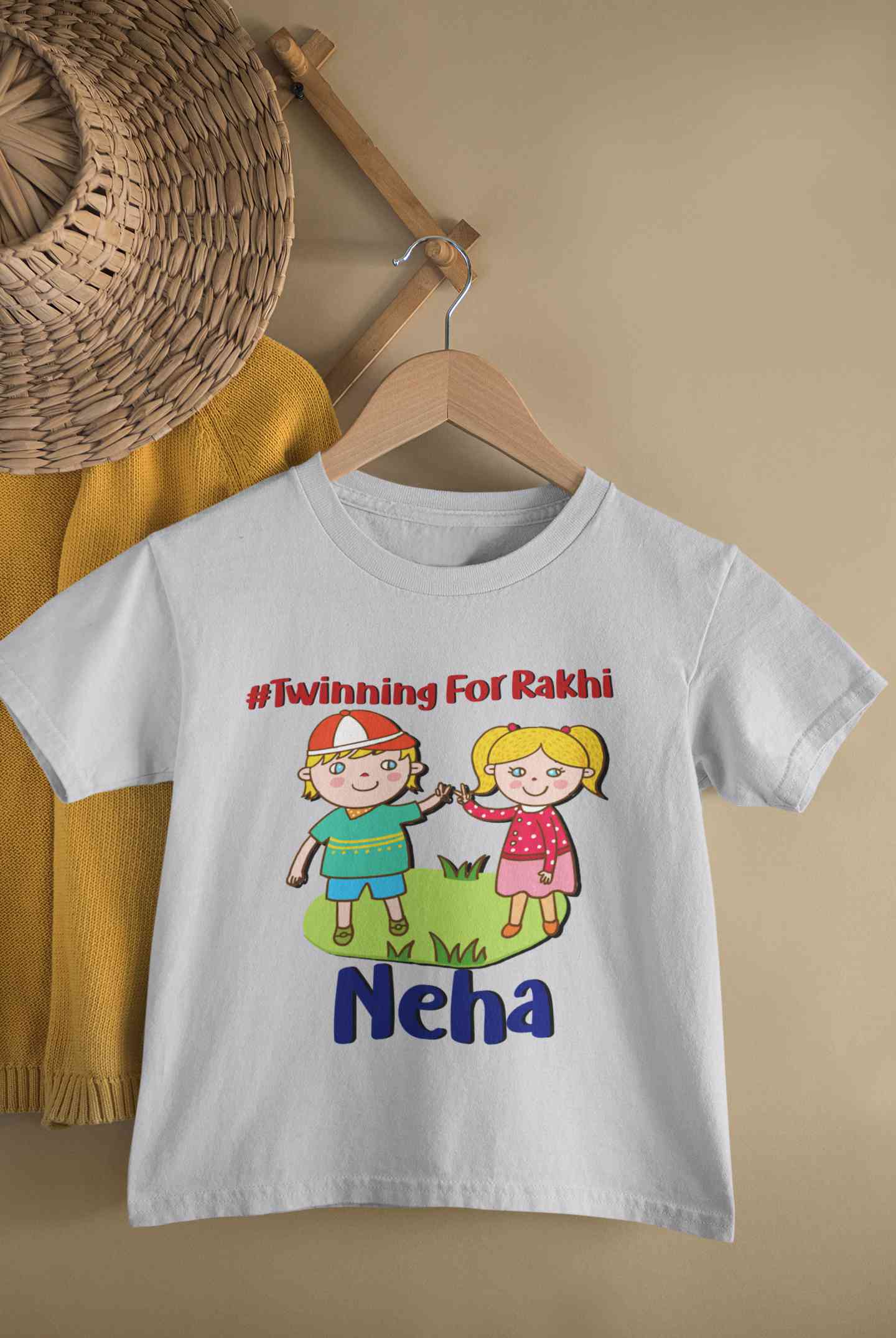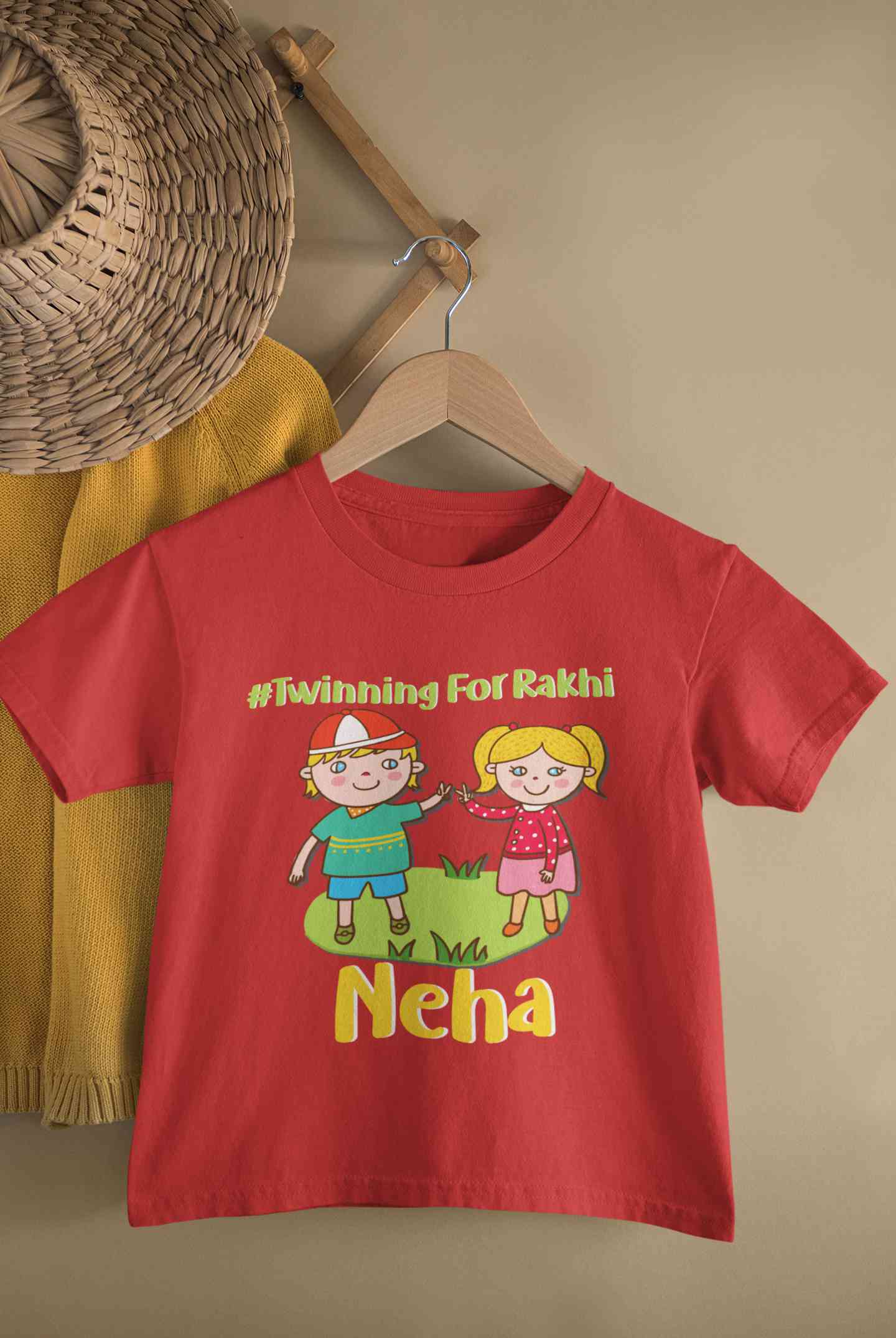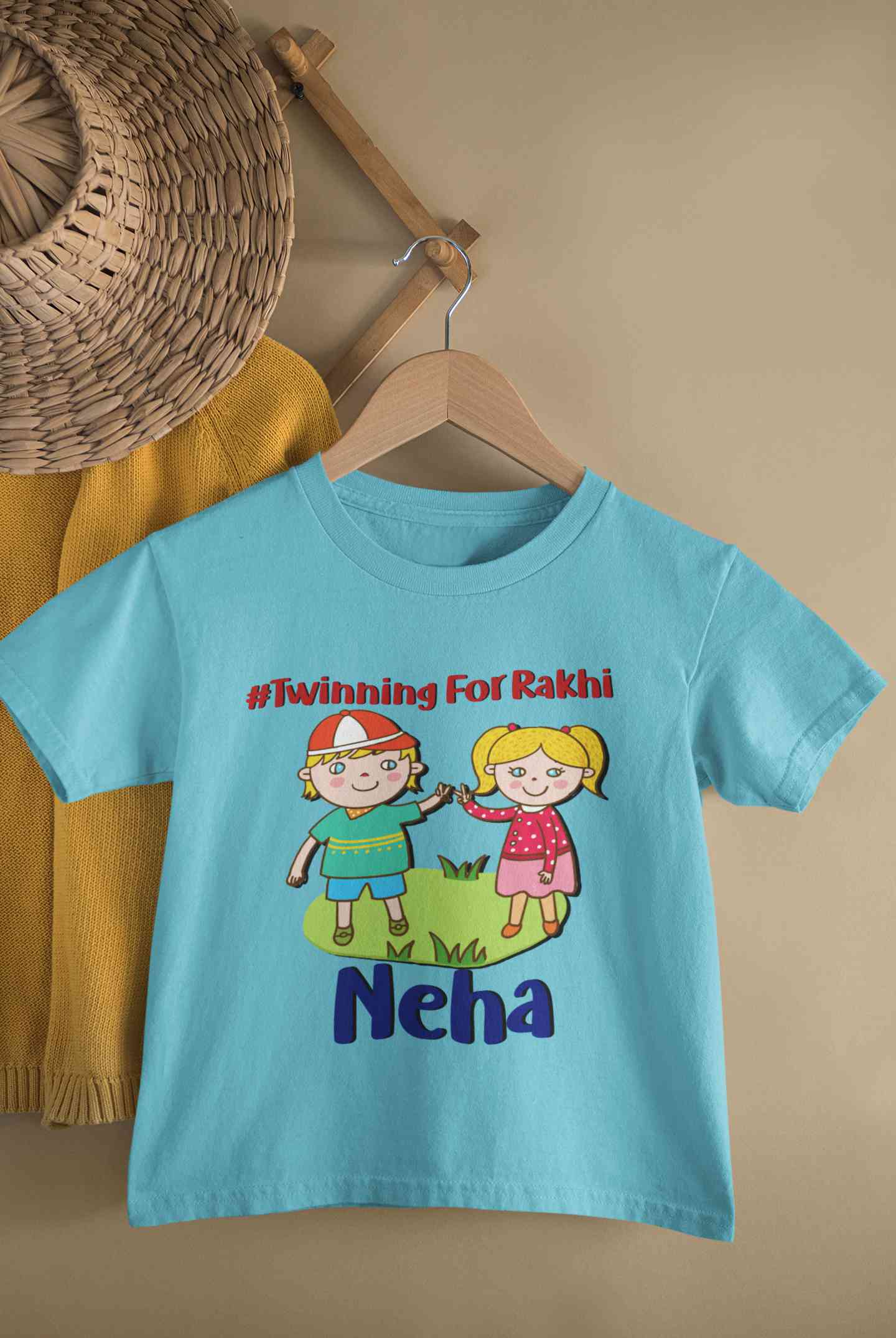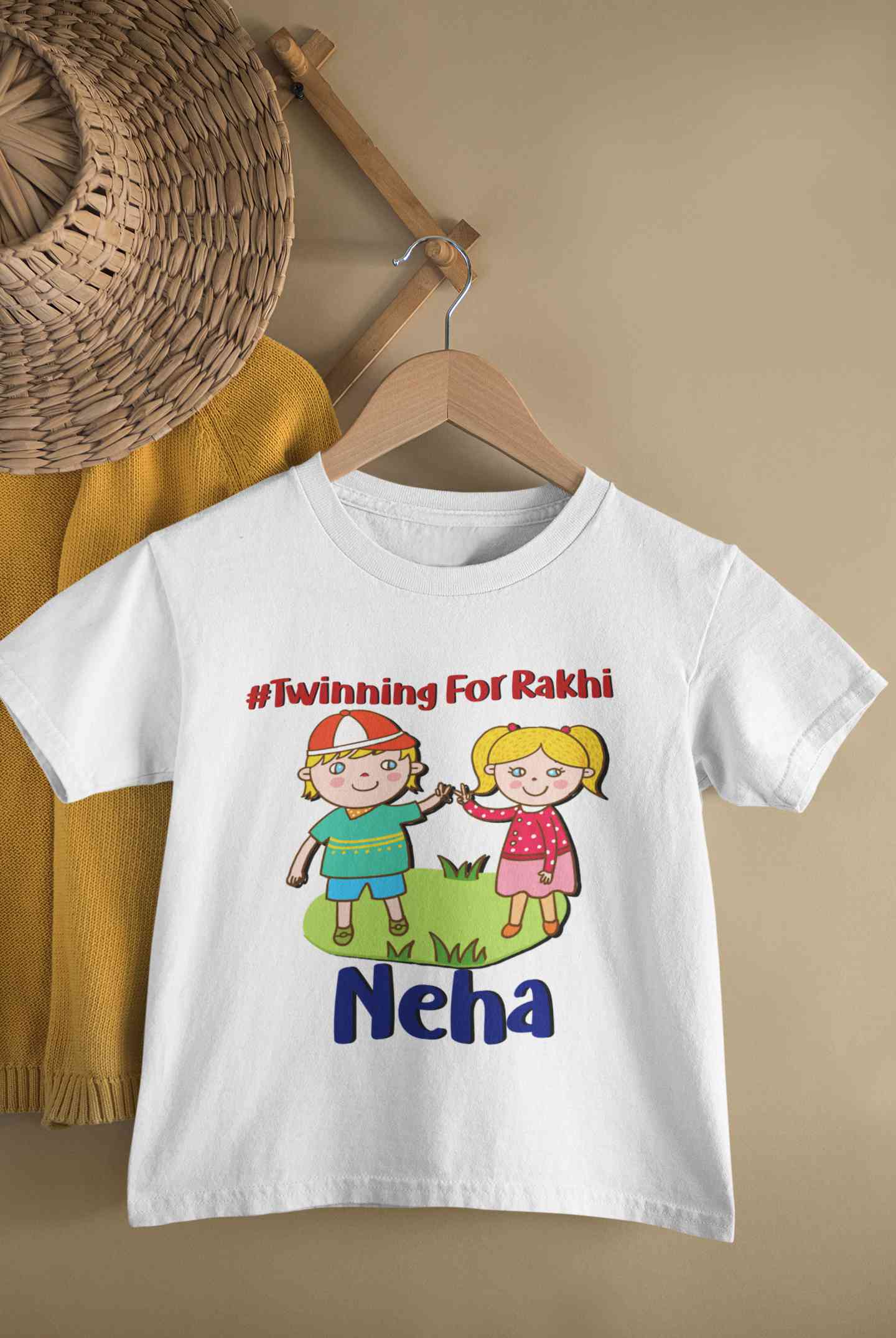 Custom Name Twinning For Rakhi Raksha Bandhan Half Sleeves T-Shirt For Girls -FashionRazor