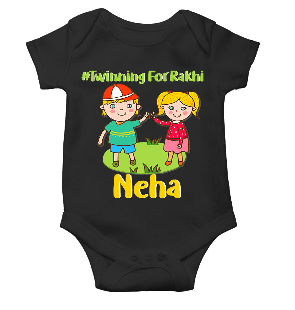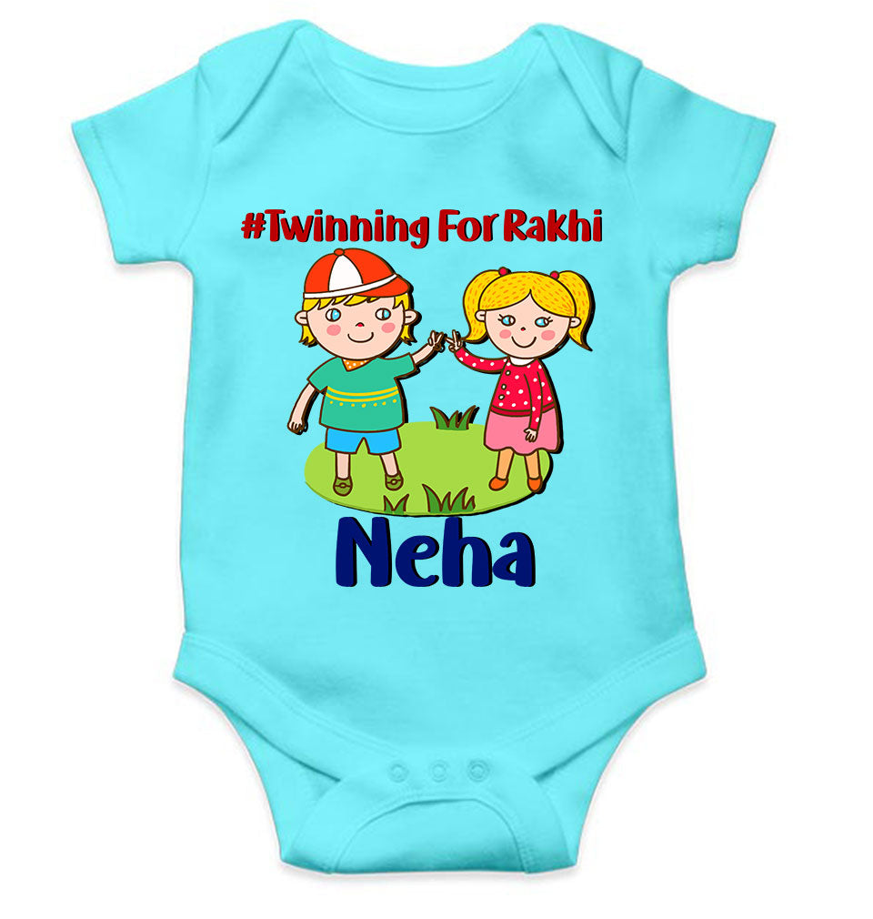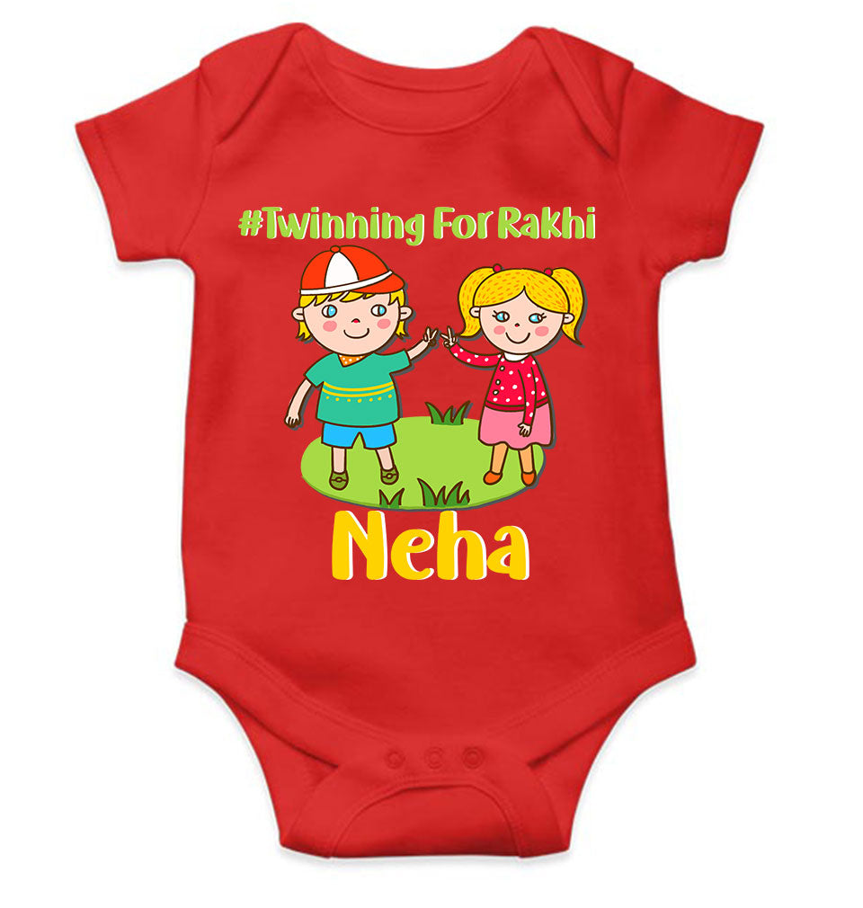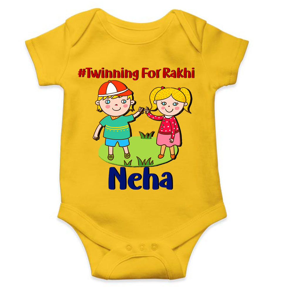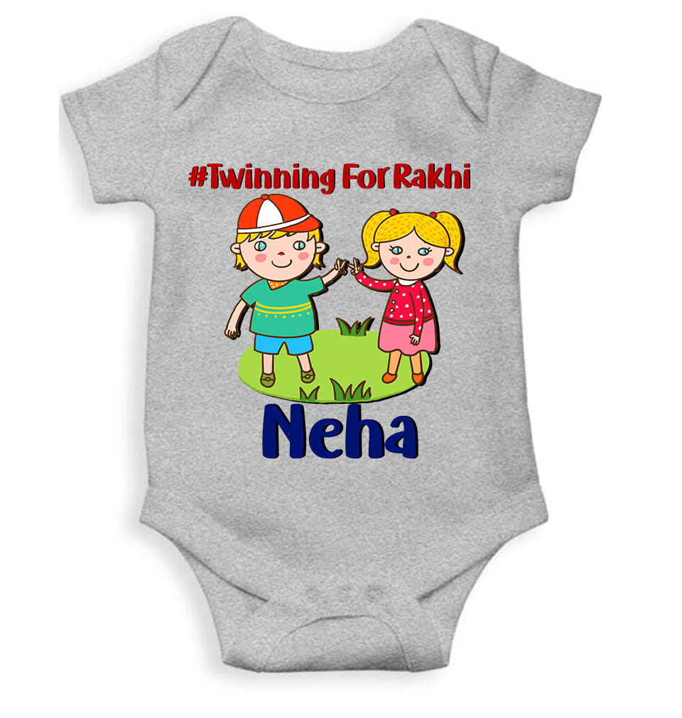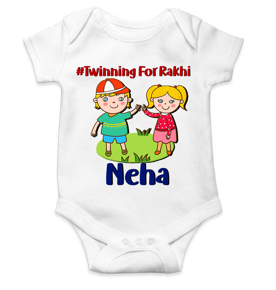 Custom Name Twinning For Rakhi Raksha Bandhan Rompers for Baby Girl- FashionRazor