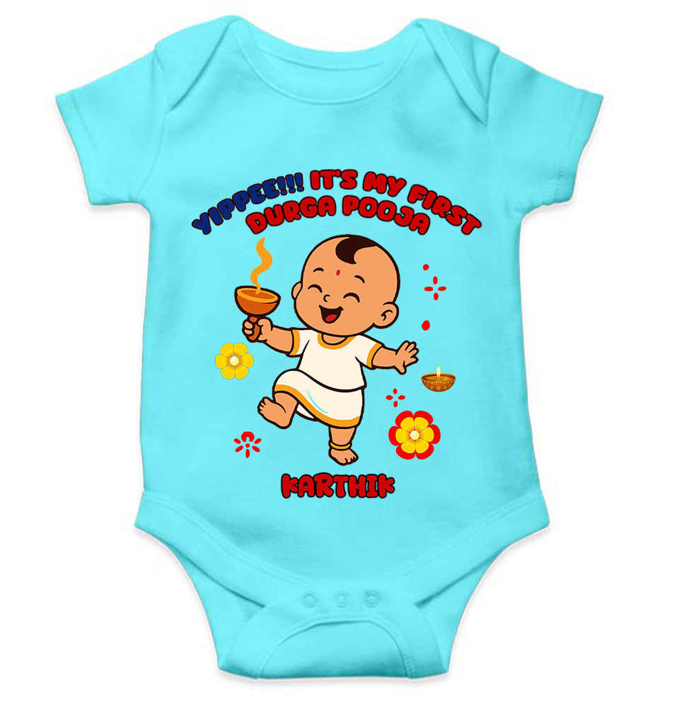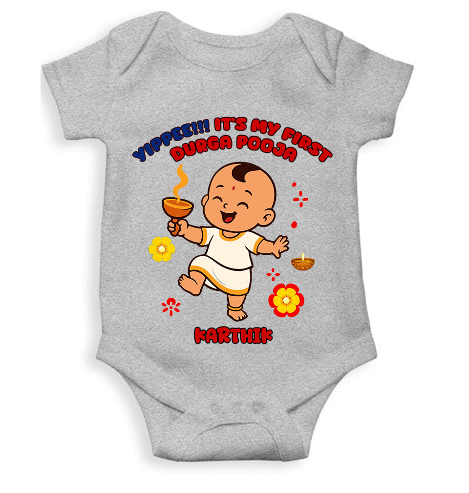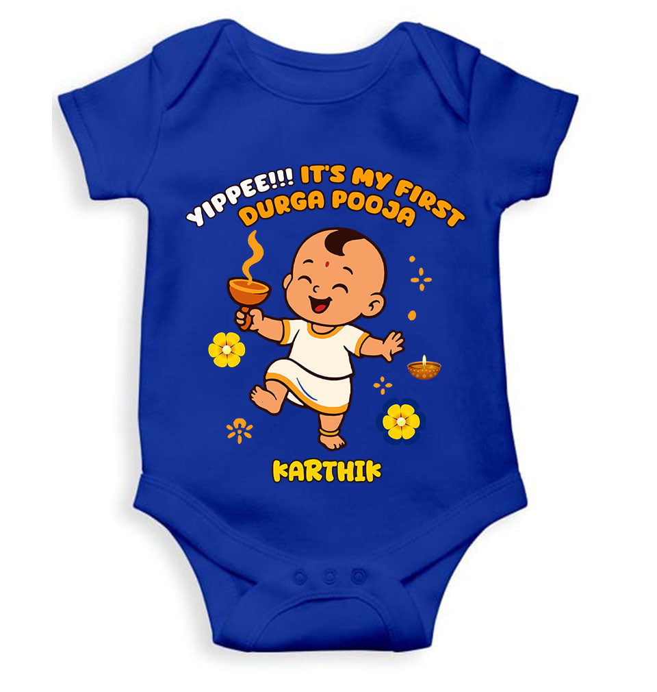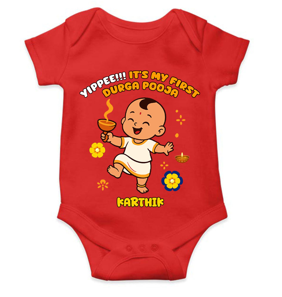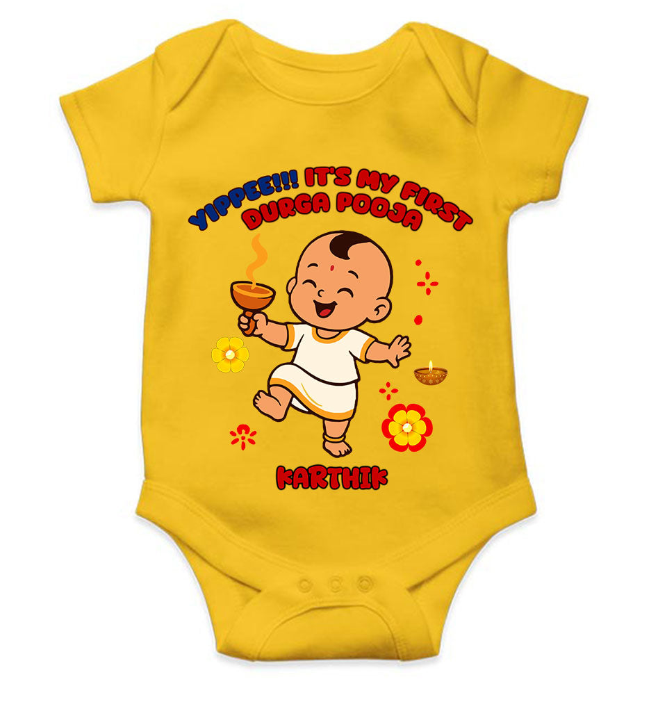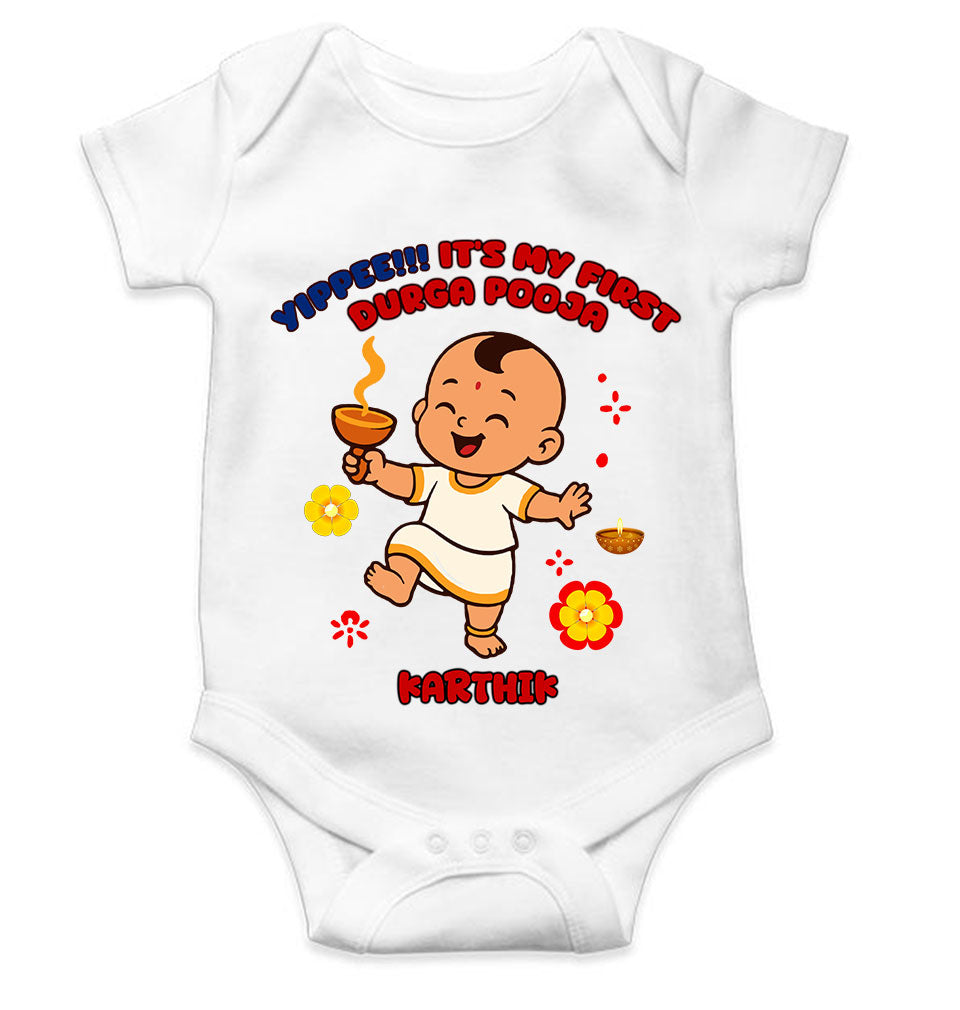Custom Name Yippee It Is My First Durga Pooja Rompers for Baby Boy- FashionRazor