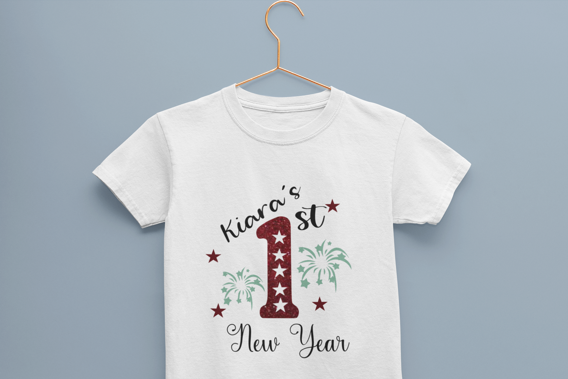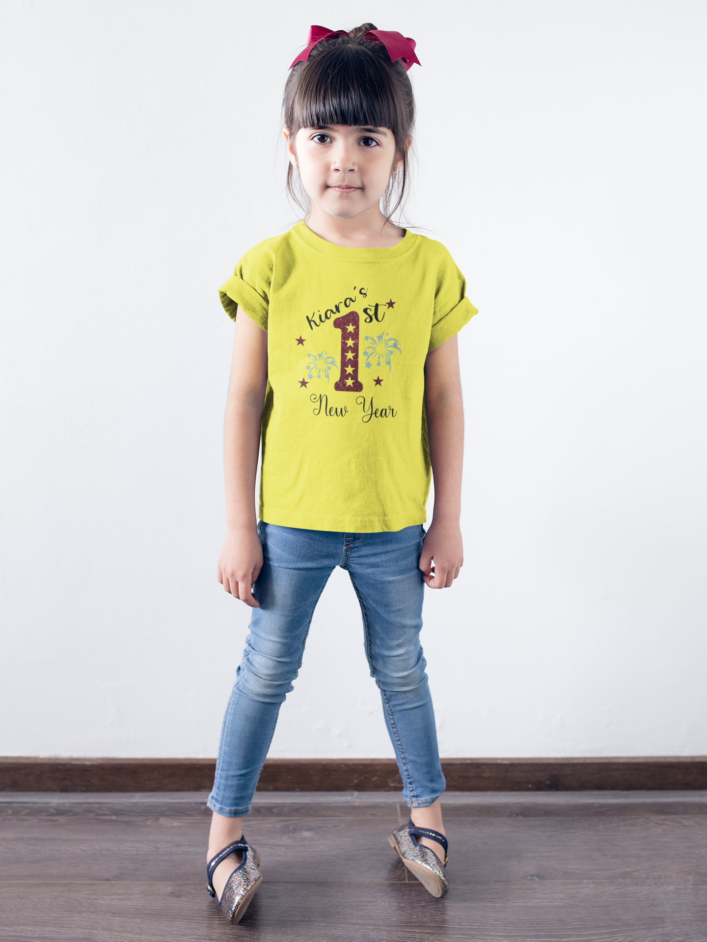 Customized Name New Year Half Sleeves T-Shirt For Girls -FashionRazor