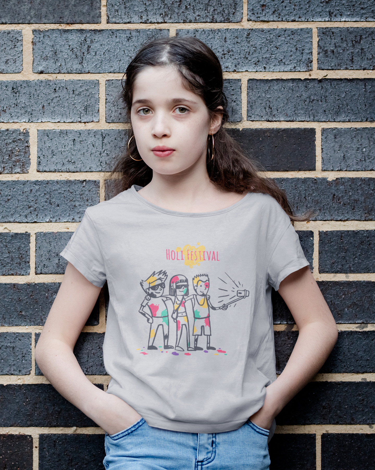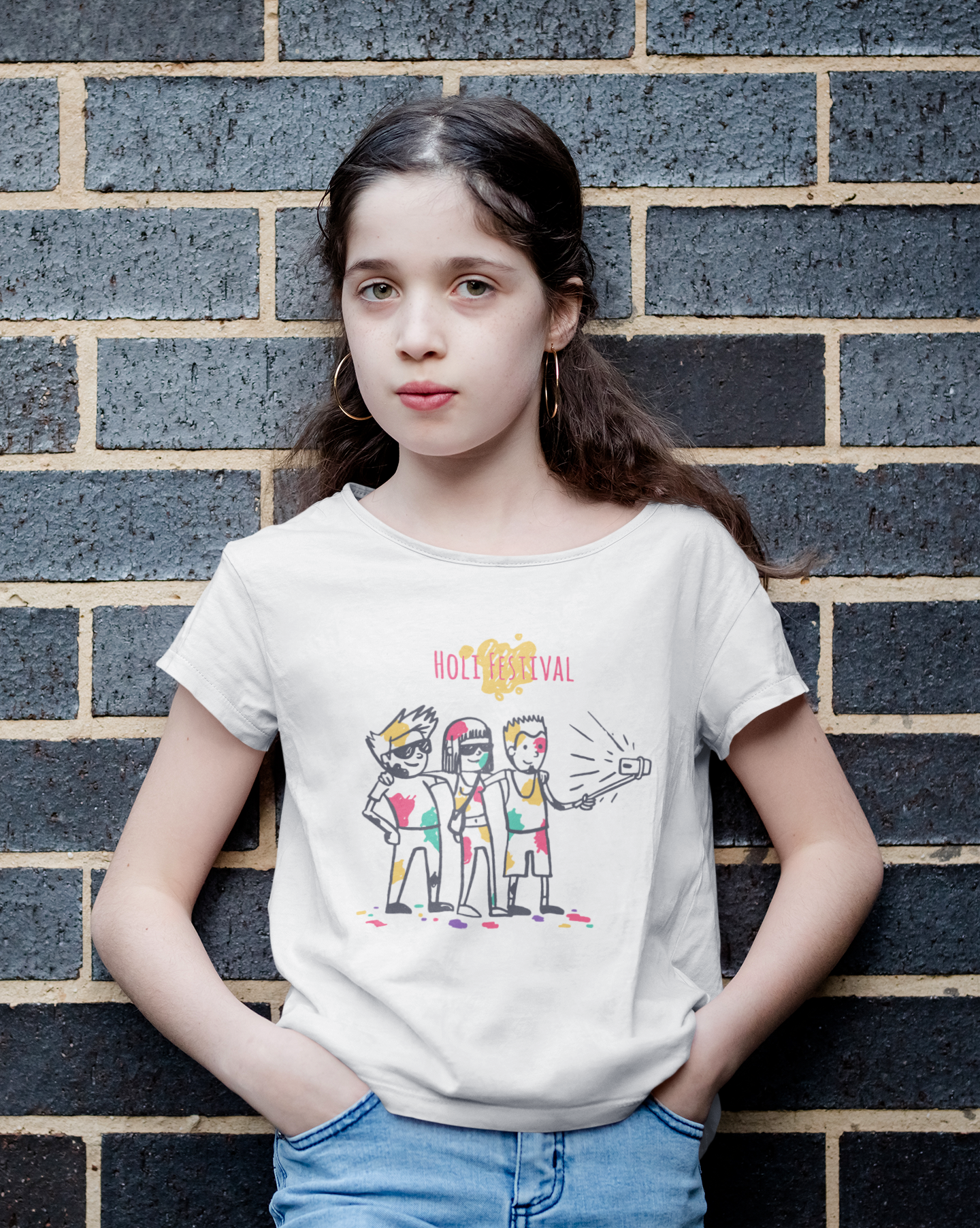 Friends Selfie Holi Half Sleeves T-Shirt For Girls -FashionRazor