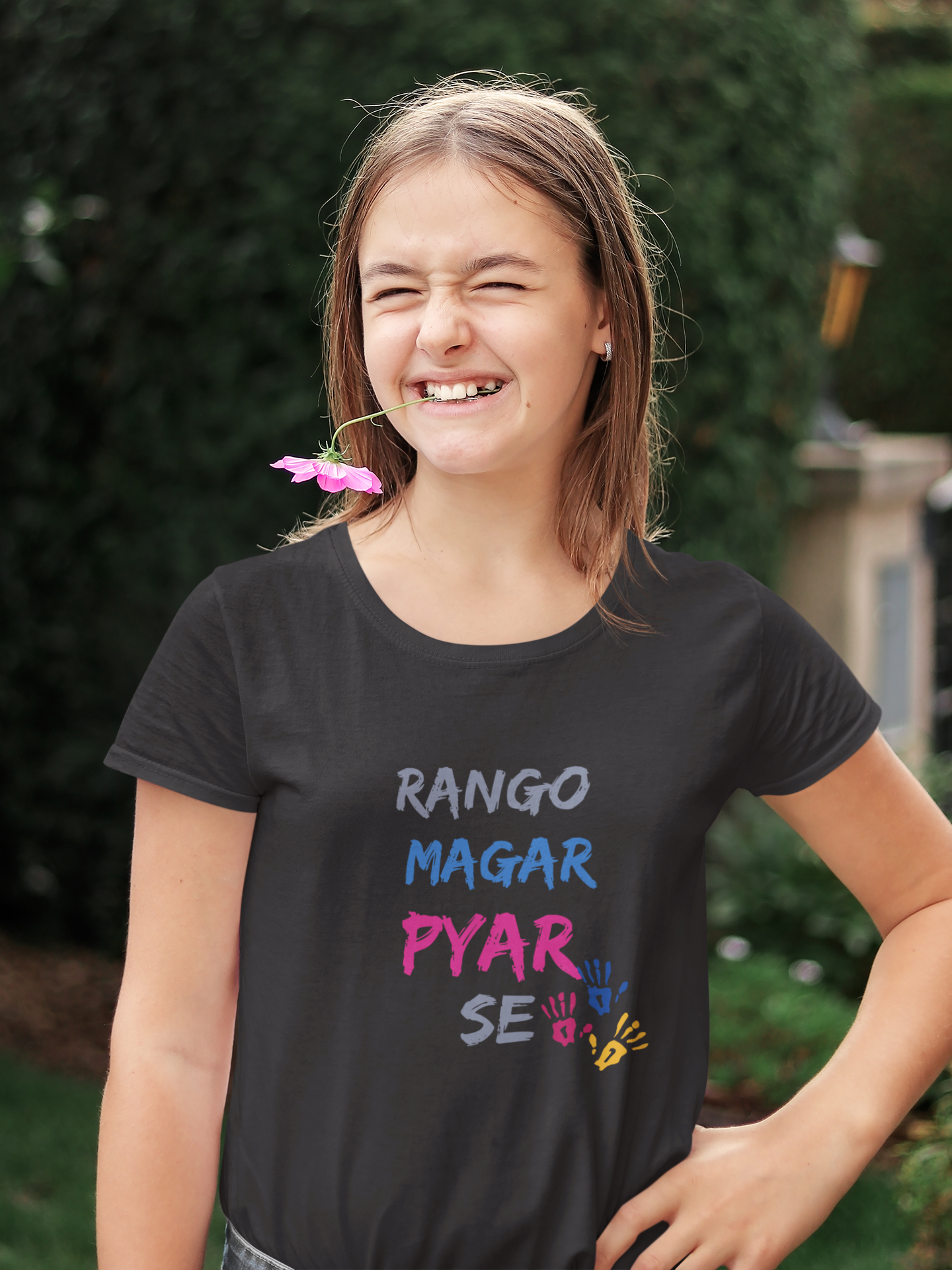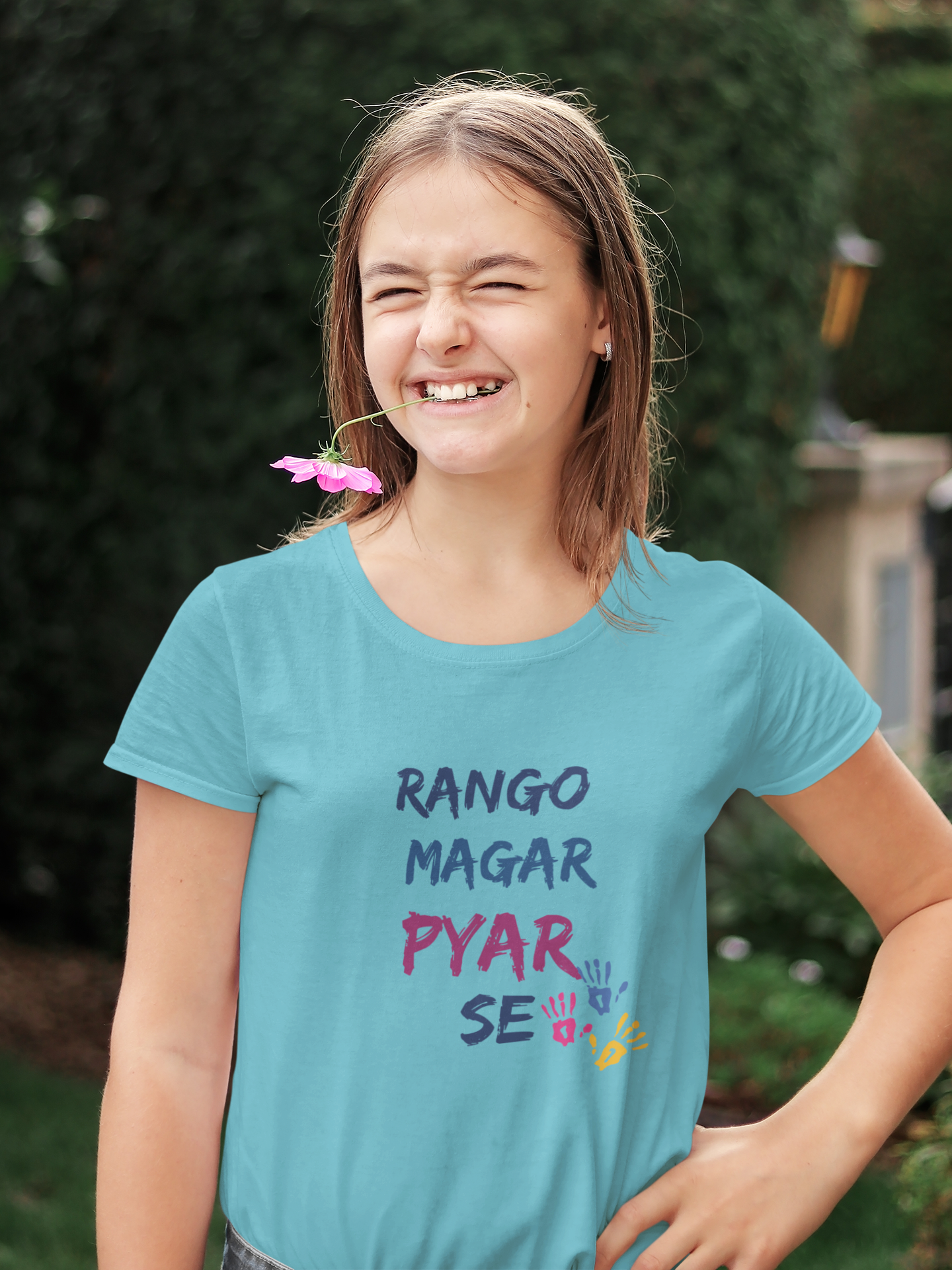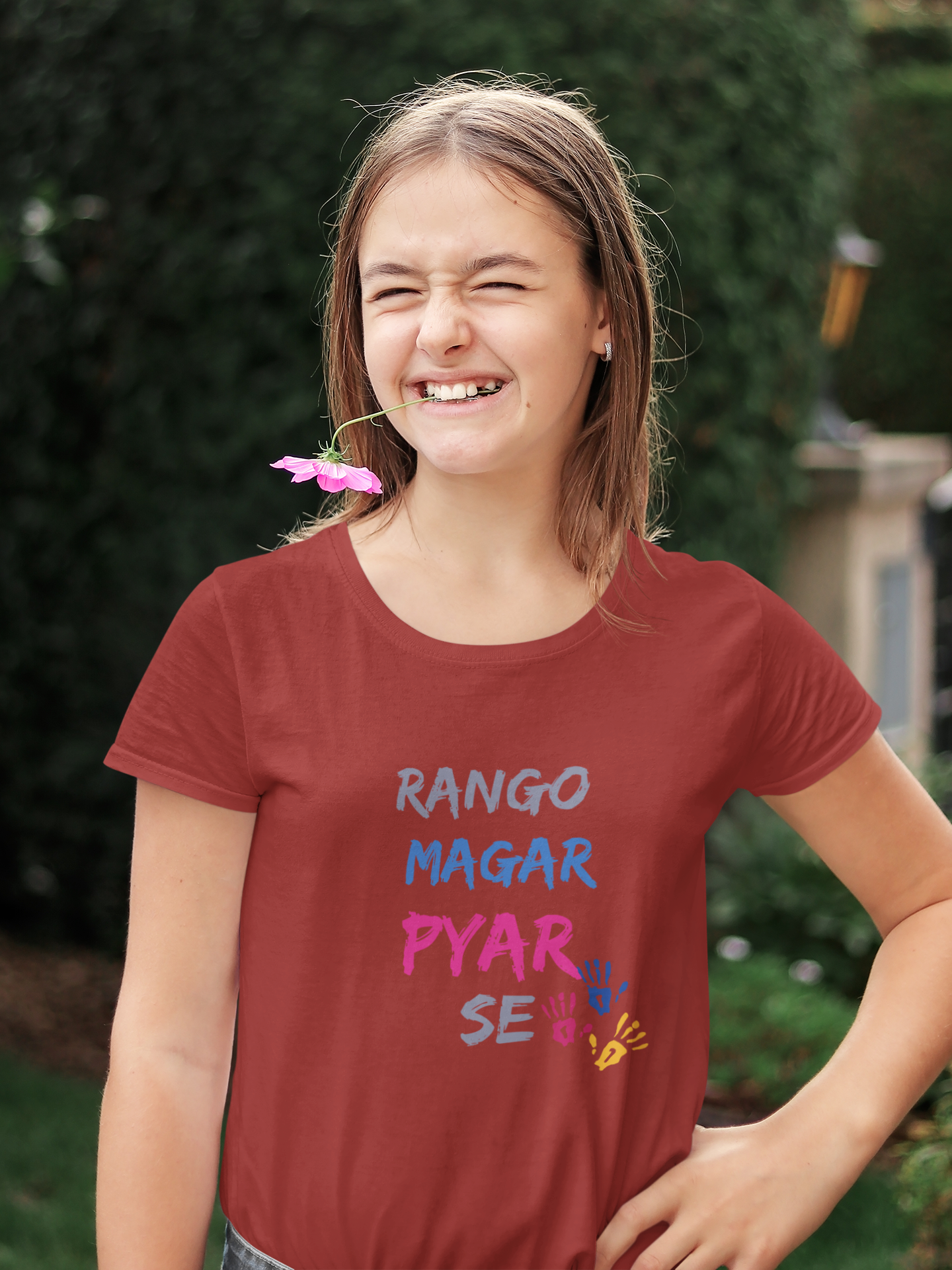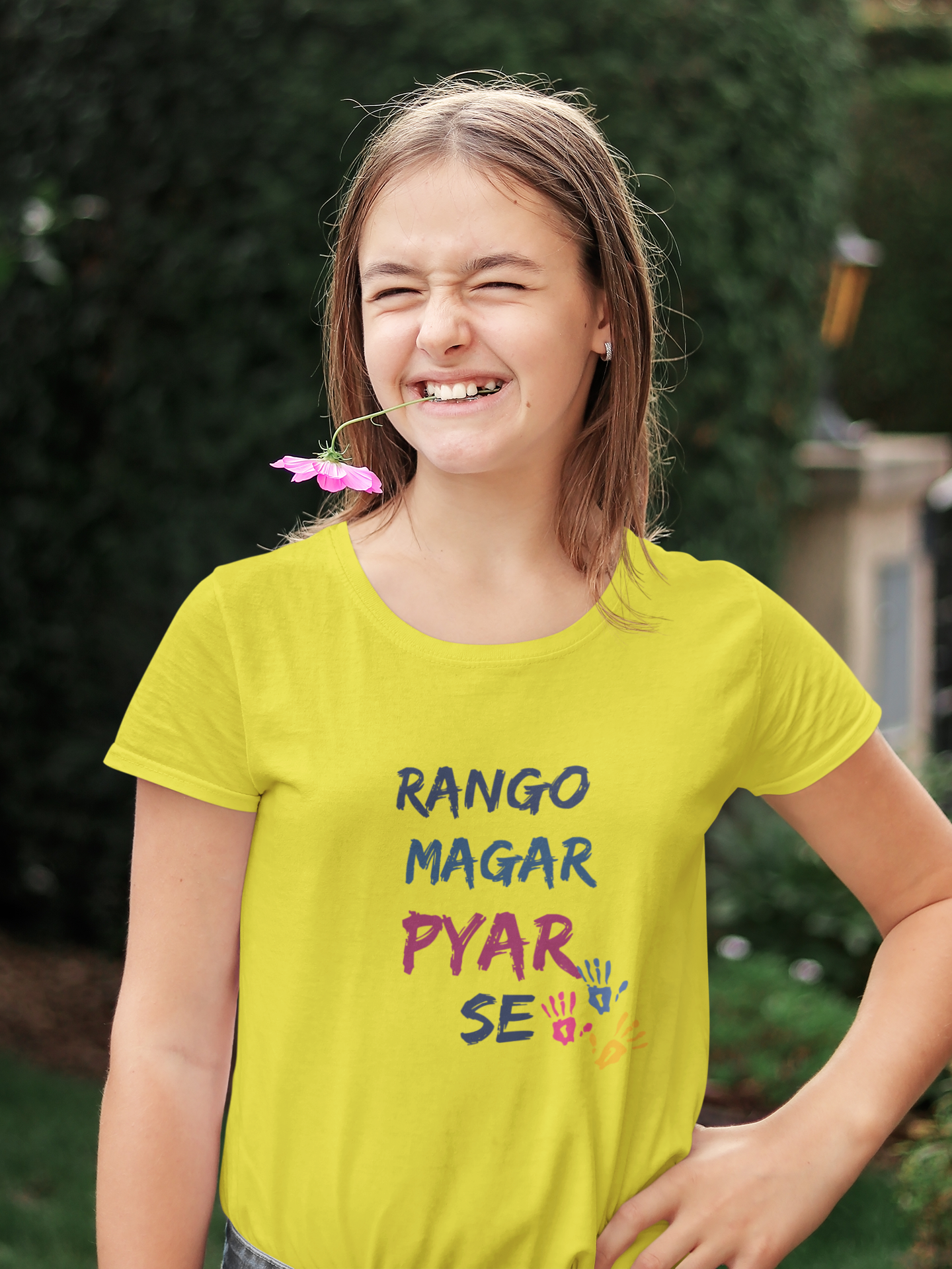 Rango Magar Pyar Se Holi Half Sleeves T-Shirt For Girls -FashionRazor
