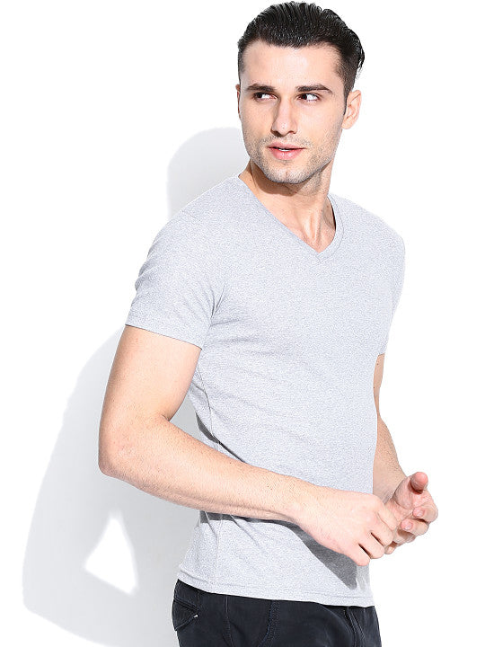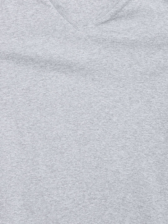 Plain Grey Melange V Neck T-Shirt-FashionRazor
