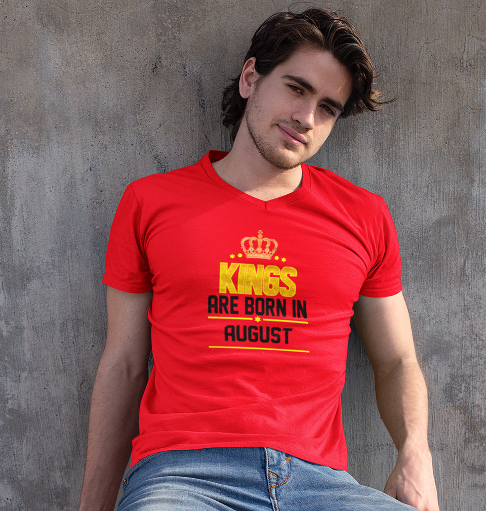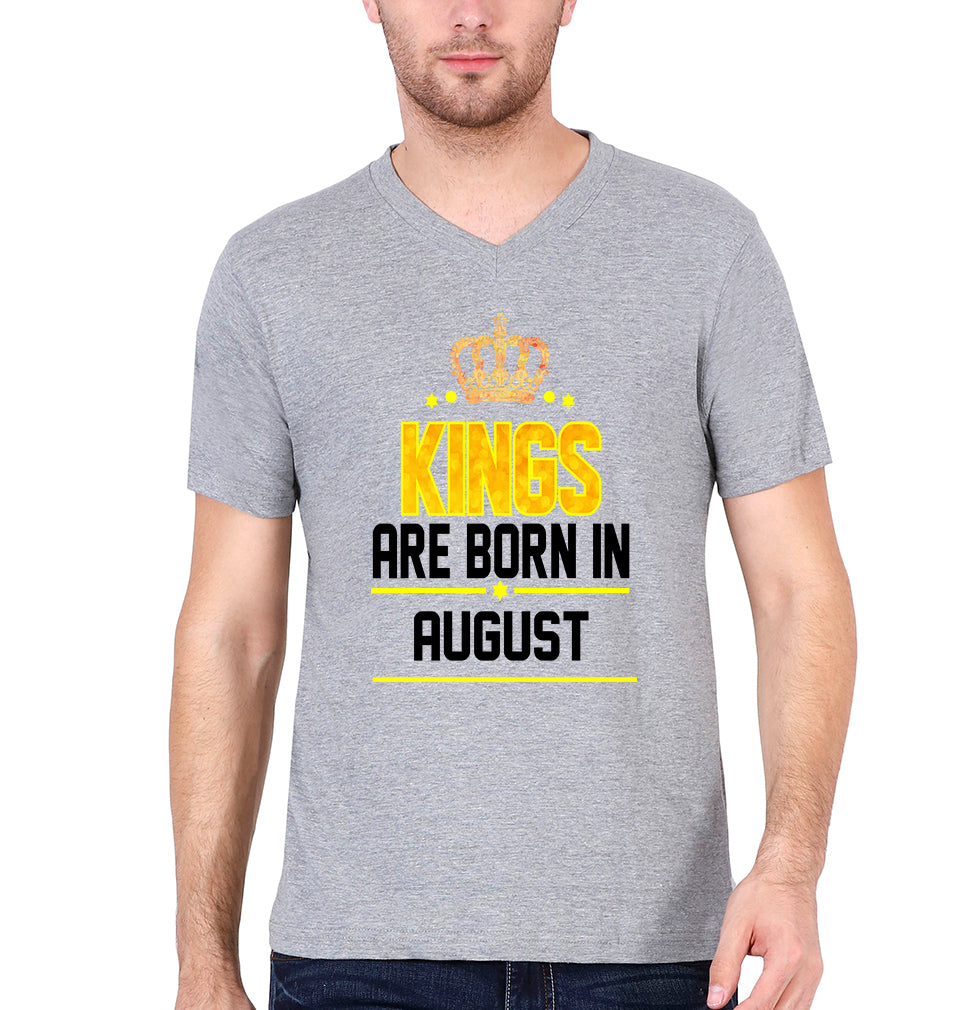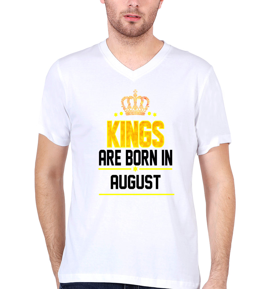 Kings Are Born In August Men V Neck Half Sleeves T-Shirts-FashionRazor